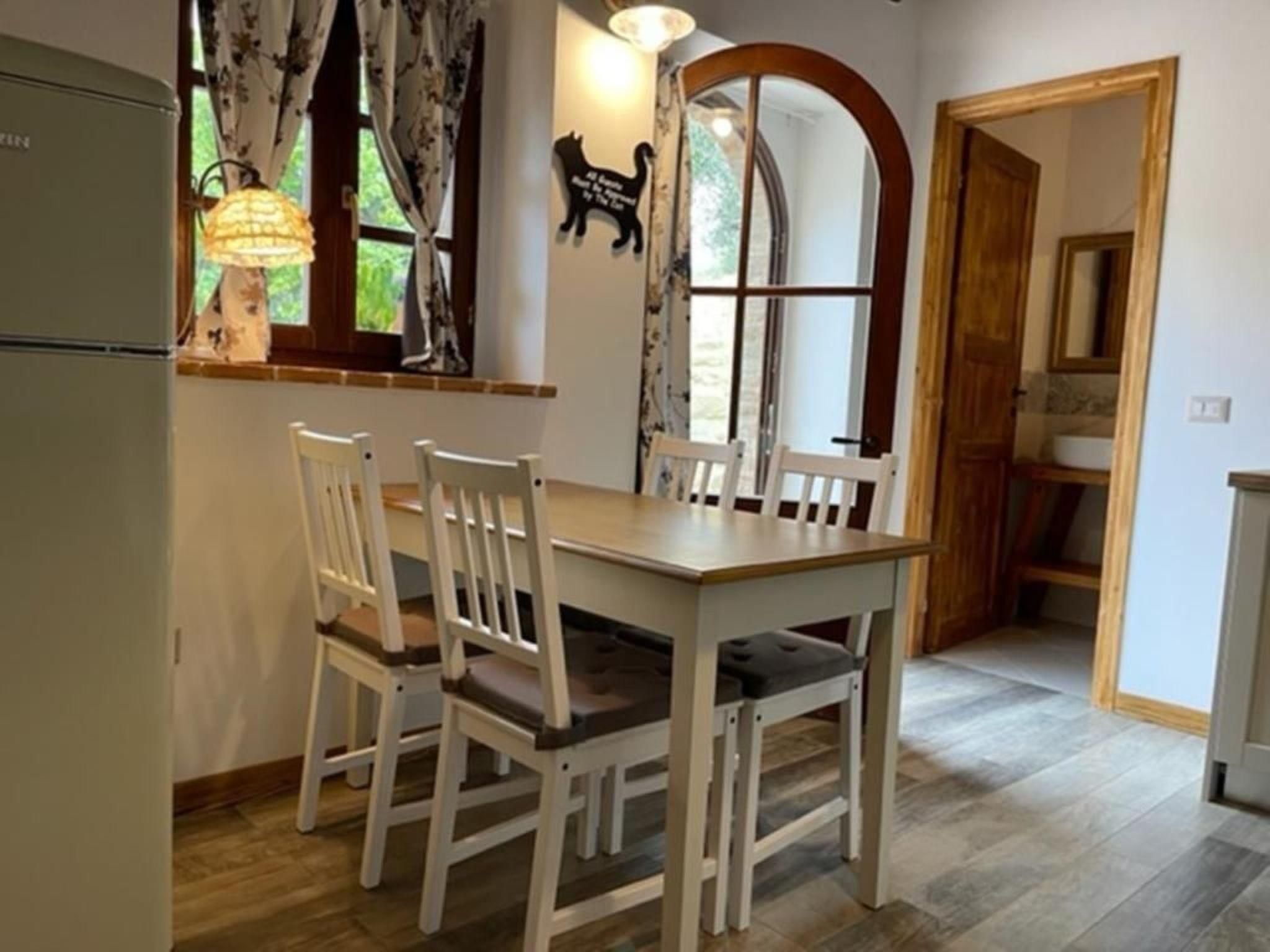 Outside, Poggio Cantarello exceeds expectations with a charming garden overlooking an outdoor saltwater pool. The area is perfect for spending days under the Tuscan sun, lying on a sun lounger or enjoying a refreshing dip. For an alternative evening or a special occasion, guests have access to a barbecue and wood-fired pizza oven, adding a touch of conviviality and authenticity to the experience of a stay.