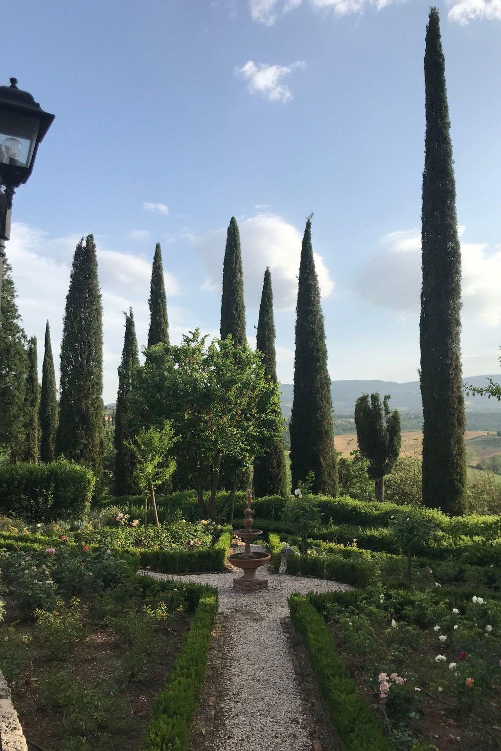 Macciangrosso is an ancient sixteenth-century residence built by Carlo Lo-dovico de' Piccolomini. The skilful restoration of the structure has preserved the charm and appeal of a past rich in memories. Located on the natural bastion that closes the Valdichiana to the south, Macciangrosso is immersed in the tranquility of a centuries-old park: between severe cypresses and tall cedars a labyrinth of box hedges unra-vels, which together with an enchanted ancient rose garden make up the traditional Italian garden