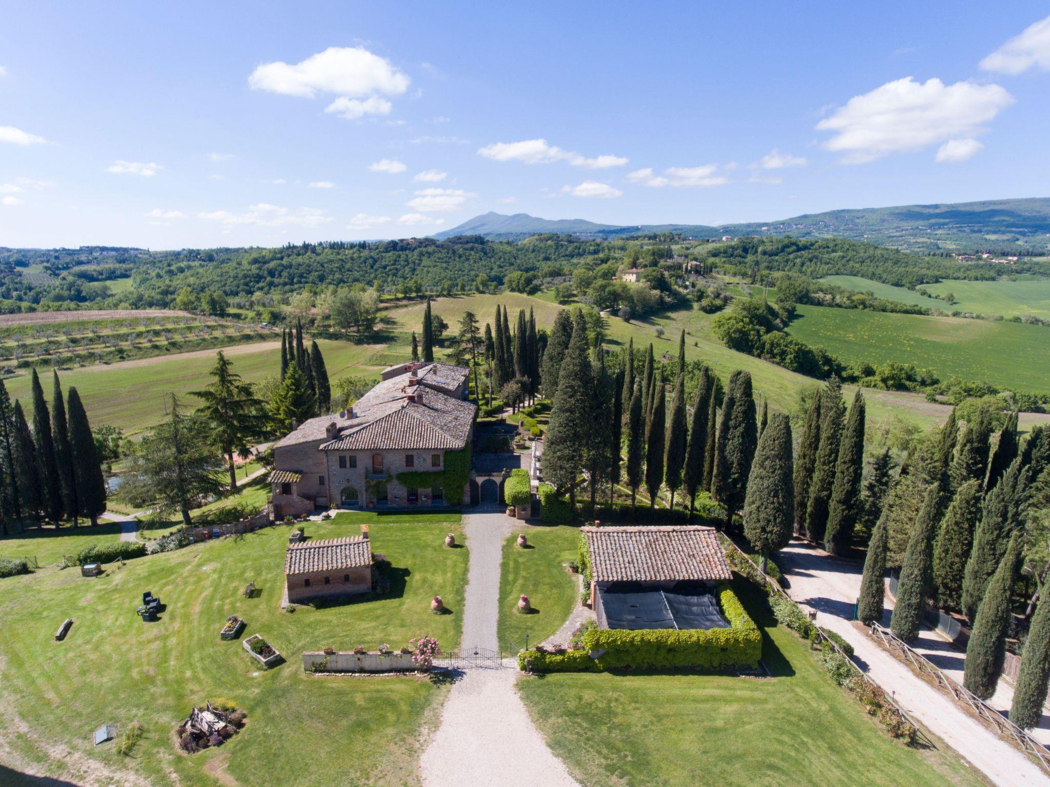 Location Macciano. In the midst of the splendid "Val di Chiana", situated on the first floor of a splendid 16th century farmhouse that has been completely renovated, the flat enjoys a wonderful view over the surrounding valley thanks to a living room created from an ancient window loggia.Vali Apartment situated on the first floor overlooking the villa's beautiful rose garden. Comprising living-dining room, double bedroom small room for third bed, kitchenette and bathroom with shower. Outdoor area equipped with sun umbrella, table and chairs.