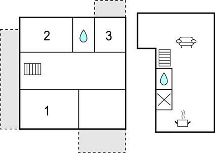 Soveværelse (nr. 1) - 1 Soveplads. (Enkeltseng(e)). 2 Sovepladser. (Dobbeltseng(e)).