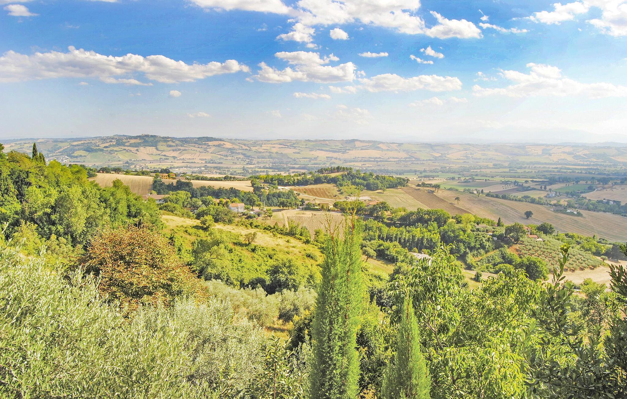 Lige uden for Cingoli ligger dette charmerende feriehus, som er omgivet af det maleriske Marche-landskab. Måske får I lyst til at hoppe i den rummelige pool lige fra morgenstunden? Poolen er omgivet af velholdte grønne områder og skyggefulde træer. I kan nyde morgenmaden på den overdækkede terrasse, som er udstyret med et stort spisebord. Her kan I nyde den friske luft og naturens ro. Stuen er udstyret med bjælkelofter og komfortable møbler, hvilket skaber en hyggelig atmosfære.