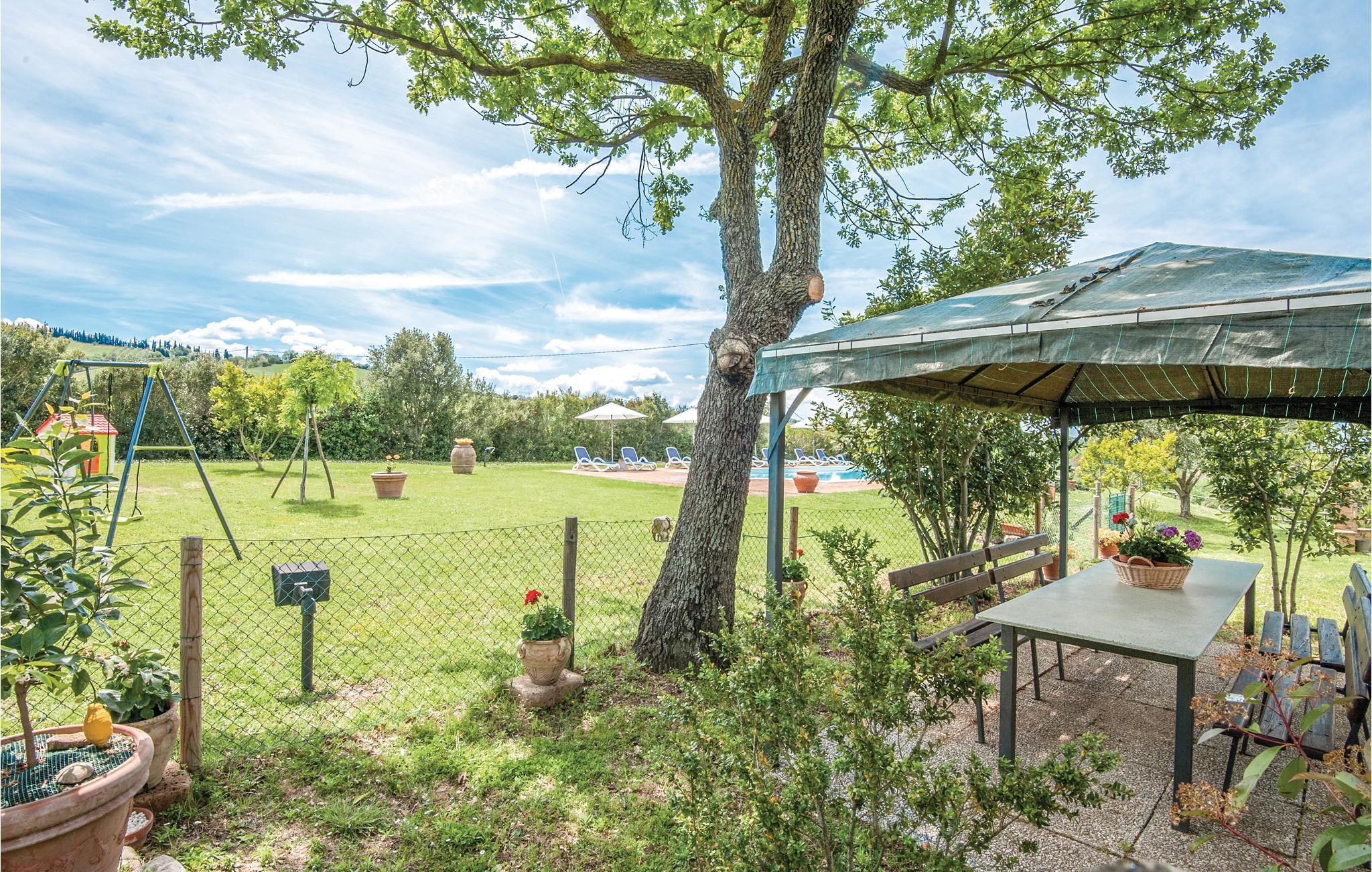 Hyggeligt bondehus med fire enkelt indrettede ferielejligheder i den kendte vinregion med prædikatet D.O.C. Montecucco. Herfra er der smuk udsigt ud over bakkerne rundt om dalen og floden Ombrone, et skøn roligt område. Huset er omgivet af plæner hvori ligger en pool, en terrasse der indbyder til solbade og en grill. Fælles vaskemaskine. Ferielejlighederne med separate indgange er rustikt indrettet. Til lejlighederne er der adgang via en stor udendørs trappe, i lejlighederne er der køkken/spisestue, udgang til lille balkon, to soveværelser med dobbeltsenge, et med enkeltseng, badeværelse med brusebad. Afstande: Cinigiano med alle slags forretninger 11 km, Paganico 20 km, Grosseto med rideskole 28 km, naturparken i Maremma og middelalderbyen Montalcino, berømt for sine vine 40 km, 50 km fra Siena og de skønne sandstrande i Parco dell'Uccellina. Balkonen 2,5 x 2,5 m. Tilkørsel via en 300 m lang ikke asfalteret gade. Sovesofa 1,60 cm bred. Se ITG439, ITG440, ITG425.