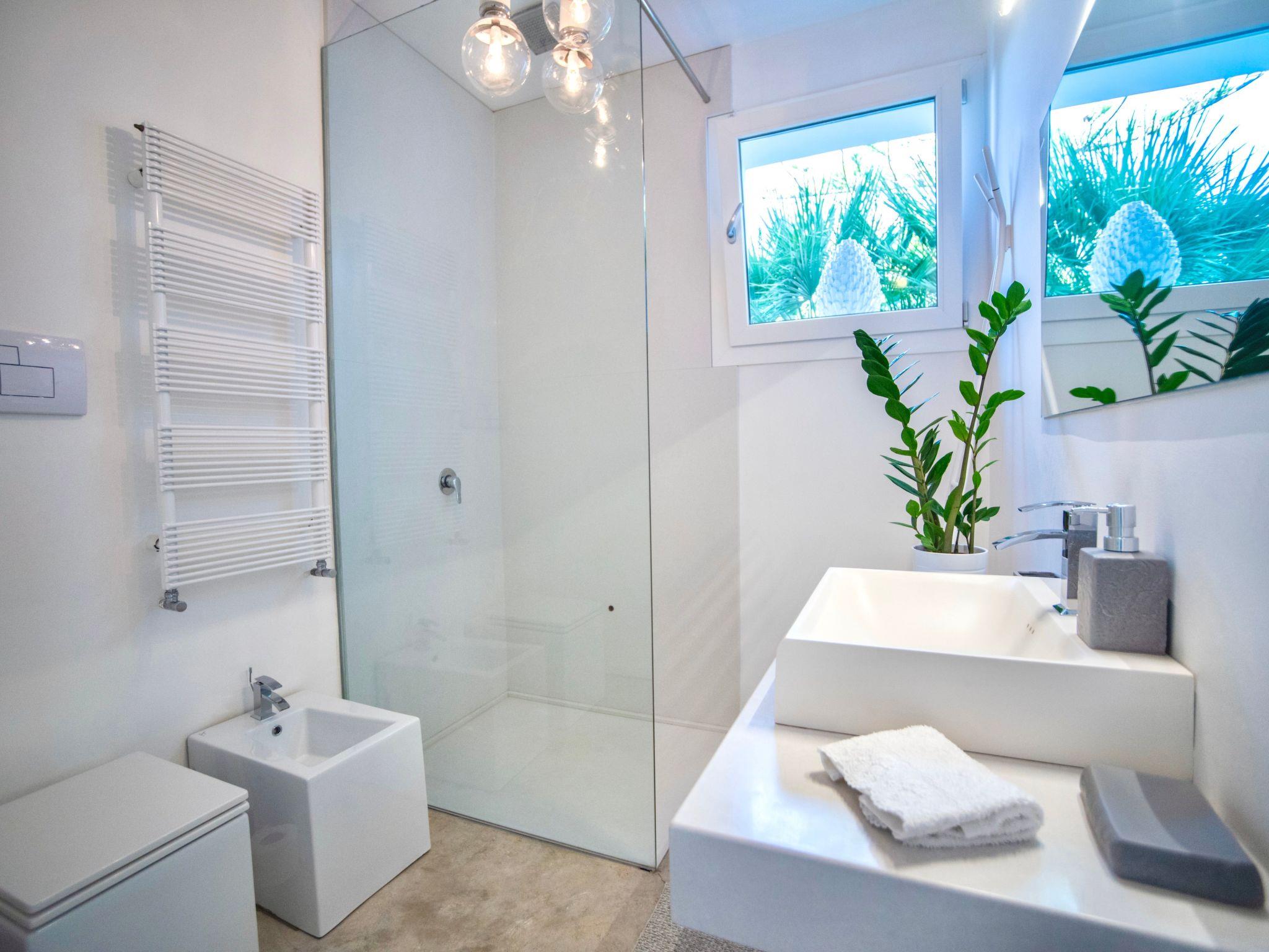 An elegant style is also evident in details, art pieces carefully arranged to emphasize the decorative impact and design furniture. The villa has two double bedrooms and two bathrooms. The master bedroom with en-suite recalls the essential and refined style that distinguishes every room. The bathroom has a particular shower/bath tub, always made with natural cement and it gives the place an exotic and elegant note at the same time.