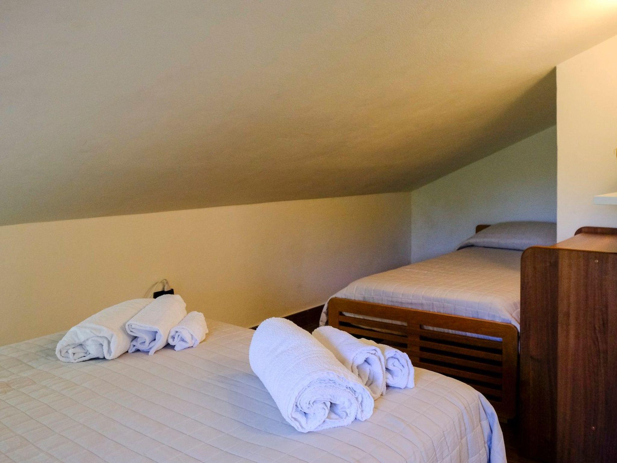 The villa is on two levels. You may access it from a spacious and bright living room, with its stylish look ensured by the furniture and the materials. The living room has a corner with fireplace and an elegant, well-kept cooking area, fully equipped. There is the possibility of a couch bed in the living room. A small hallway leads to a double bedroom. The main bathroom has a shower with hydro-massage. From the living room a spiral staircase leads to the attic on the first floor, where there are two bedrooms, both of them with a French bed. Here you can find a further bathroom with shower.