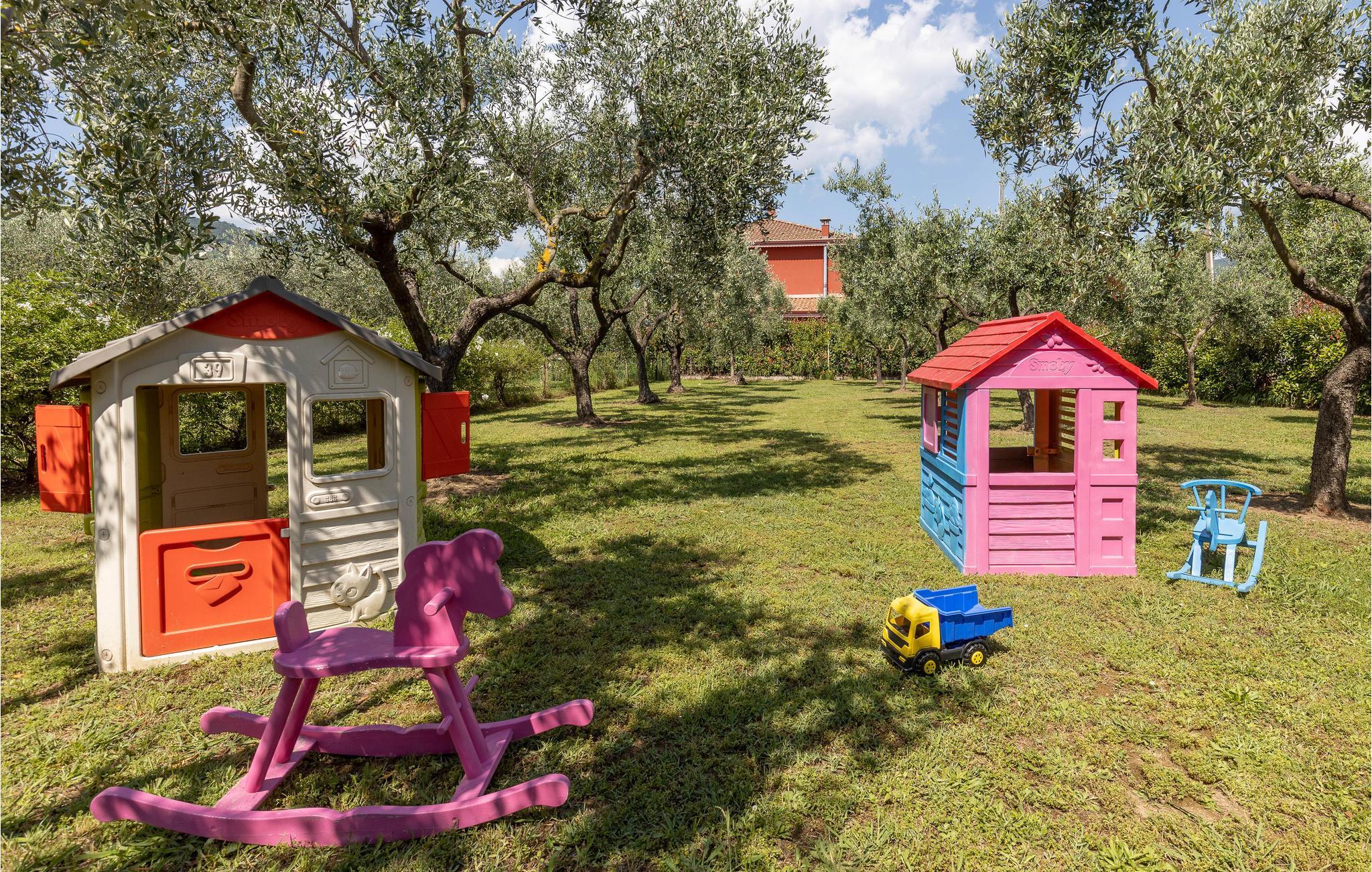 Kun 13 km fra havet, i Santo Stefano di Magra, venter denne ferielejlighed i et tofamiliershus fra det sene 19. århundrede. Huset ligger på grænsen til de berømte Cinque Terre og mondæne Versilia. Lejligheden ligger på anden sal med elevator i et landbrug midt blandt oliventræer. Ejeren producerer vin og olie på den anden side af huset, hvor der også er marker og et lager. Det eksklusive område i det fri er delvist indhegnet og udstyret til måltider i det fri, med fælles legehjørne. Beliggenheden er oplagt til at opdage de nært beliggende strande som Bocca di Magra (16 km), Ameglia (18 km) og Marinella di Sarzana (12 km). Fra landsbyen kan I tage tog til Cinque Terre. Uundværligt er Portovenere (26 km), Liguriens perle. Regionalparken Montemarcello (20 km) må I heller ikke gå glip af, hvis I holder af trekking, og der venter en overvældende udsigt, ligeledes parken af de Apuanske Alper med Colonnata (34 km), berømt for skinken Lardo di Colonnata. Hvis I holder af byer er der 12 km til den gamle havneby La Spezia. Til Lucca med sin imponerende, bevarede bymur er der 69 km. På stedet kan I købe den gode liguriske olivenolie. De sidste 200 m tilkørsel er ikke asfalteret. Obs: Fra huset kan I høre lyde fra en motorvej, der ligger 150 m væk i fugleflugt og som er omgivet af vegetation. Se også ILL564. Gratis internet: 6 GB per uge.