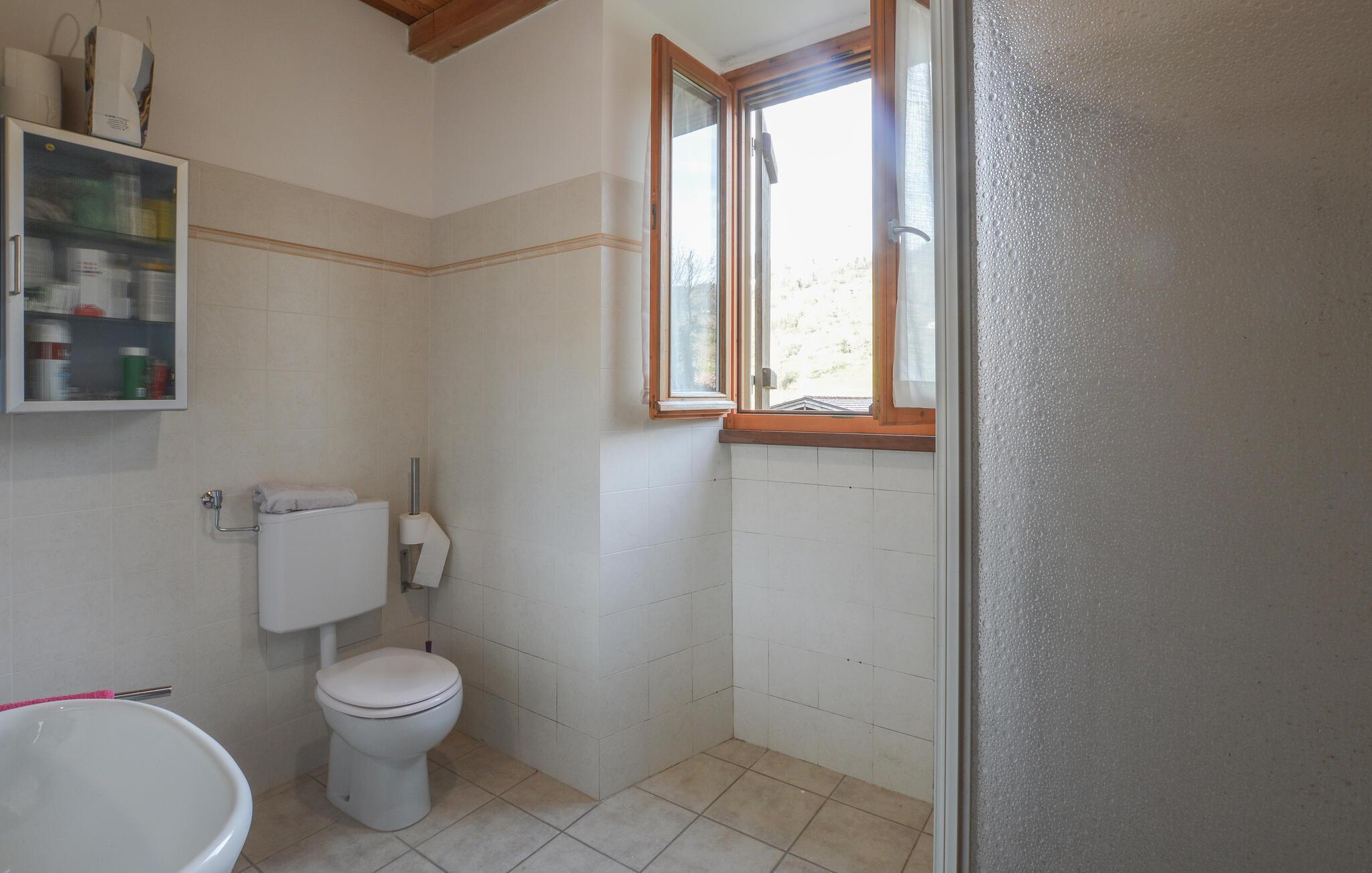 Dette lyse og kompakte feriehus i Varese Ligure tilbyder alt, hvad I behøver for et afslappende ophold. På to etager finder I praktisk indrettede rum, hvor en brændeovn skaber en varm og hyggelig atmosfære. Tilbered måltider sammen i det veludstyrede køkken, og nyd dem på den overdækkede terrasse. Efter en forfriskende dukkert i den opstillede pool kan I slappe af og lade dagen ebbe ud i fred og ro.
