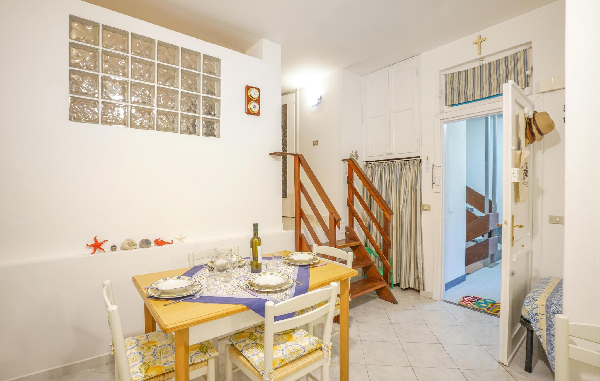 Denne praktiske ferielejlighed i stueetagen i en lejlighedsbygning er det ideelle udgangspunkt for jeres opdagelsesture langs den liguriske kyst. Lejligheden byder på en hyggelig atmosfære med en gennemtænkt indretning. Efter en begivenhedsrig udflugt kan I slappe af her og reflektere over jeres indtryk fra dagen i rolige omgivelser.
