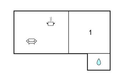 Opholdsstue/køkken - 2 Sovepladser. (Enkeltseng(e)).