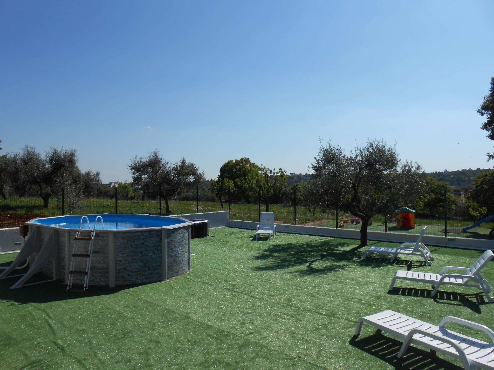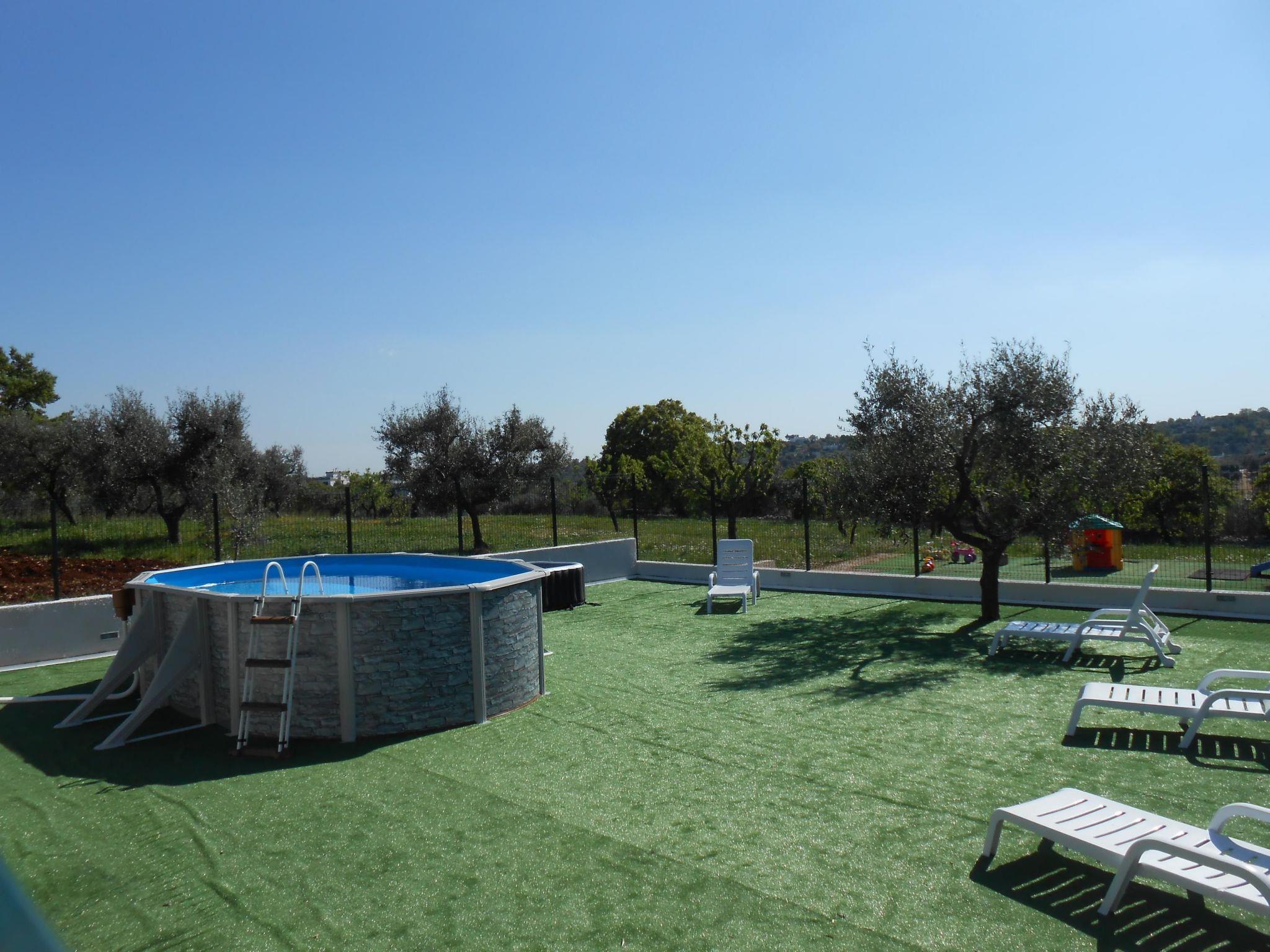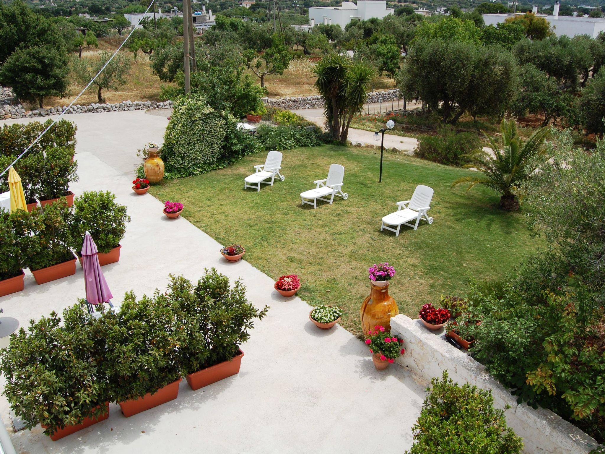 The construction is surrounded by typical olive trees, majestic oaks and graceful fruit trees that preserve and recall the genuine charm of the peasant culture. The Masseria consists of a suite and six differently arranged mini-apartments,apartments that preserve and protect the architectural style that the Masters "trullari" have left us as legacy. The objects and furnishings in all apartments combine the comfort and the needs of the today’s life with the naturalness of rustic life. It is the simplicity and authenticity of stone so widely used in this southern corner of “MURGIA APULIA” (for example Trulli, dry stone-walls and so on) that characterizes the entire panorama and the beautiful. Therefore, during the stays, one shouldn’t miss excursions to Alberobello known as the capital of the Trulli, to Ostuni “La Città Bianca” with its entirely white old centre, to Polignano a Mare with its old town perched on a cliff, to Martina Franca its baroque art and finally to the karst caves of Castellana Grotte. For visitors who plan to stay some more days, not far away there are Castel del Monte, Matera with its famous Sassi, Lecce the capital of baroque,Trani and Bari respectively known especially for the Romanesque Cathedral and the Basilica Pontificia of San Nicola. The resort "La Piccola Masseria" consists of a suite and six mini-apartments (one is adjusted for the disabled); they have bathroom with shower, fully equipped kitchen, air conditioners and heaters, tv lcd, wireless internet connection, washing machine, bedclothes, strongbox. Each apartment has an equipped and independent entrance with a lovely and pretty garden opposite adorned with wildflowers with table, chairs and umbrella.