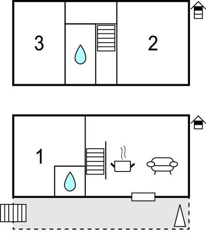 Soveværelse (nr. 2) - 1 Soveplads. (Enkeltseng(e)). 2 Sovepladser. (Dobbeltseng(e)).