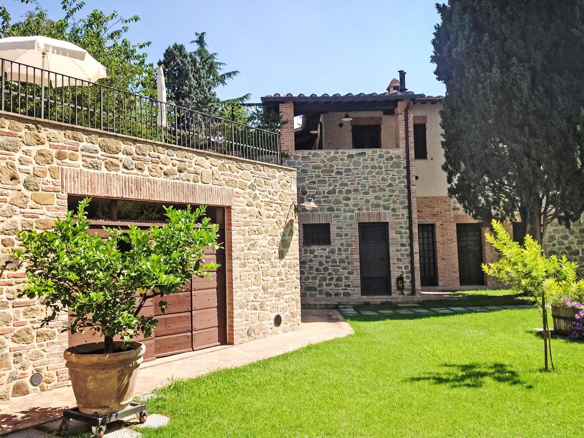 Country house "Casa Graziani". 3 houses in the residence. 9 apartments in the residence. In the hamlet Schiacciato 13 km from the centre of Città della Pieve, 16 km from the centre of Cetona, 46 km from the centre of Perugia, 10 km from the lake, in the countryside. For shared use: property 4'000 m2 (fenced), well-kept garden with lawn and trees, swimming pool (16 x 8 m, depth 120 - 180 cm, seasonal availability: 01.May. - 30.Sep.). Table tennis, fireplace, children's playground. In the house: sauna (extra). Fitness room, table football, bicycles available. Parking on the premises. Supermarket 3 km, bus stop 400 m, railway station "Chiusi Scalo" 7 km.