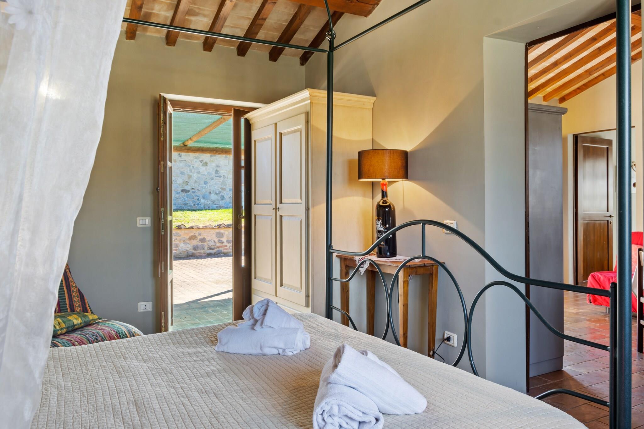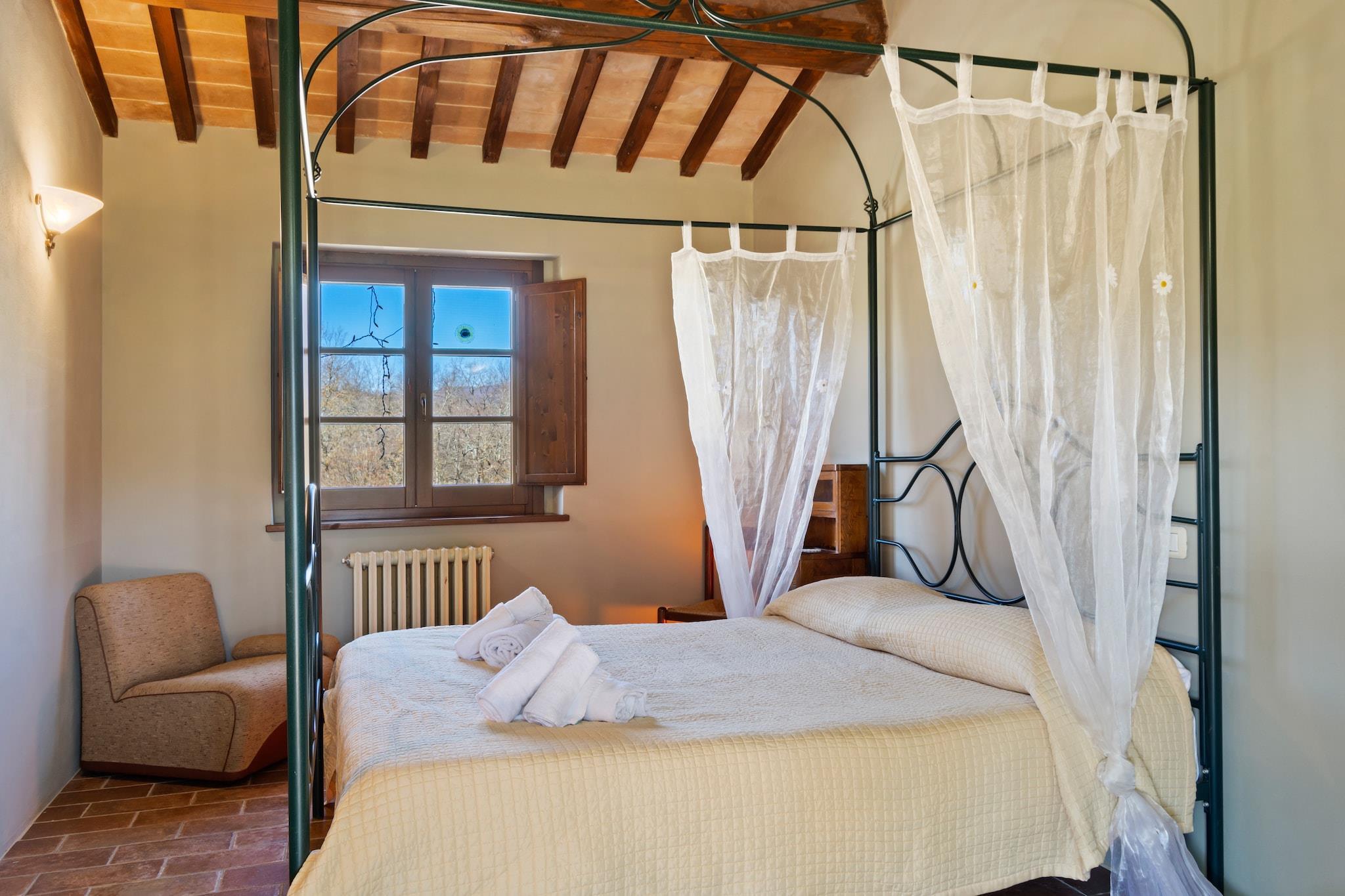 Beliggende i den smukke bakkeby Città della Pieve byder dette dejlige sommerhus velkommen til op til fire gæster, der søger afslapning i hjertet af Umbrien. Beliggende kun 40 km fra Bolsenasøens glitrende vand, inviterer området dig til at nyde svømning, sejlads og rolige øjeblikke ved søen. Kulturentusiaster kan opdage den surrealistiske arkitektur i La Scarzuola eller dykke ned i oldtidshistorien på Museo della Cattedrale i Chiusi. Centro Storico di Chiusdino, med sin middelalderlige atmosfære, tilføjer et unikt kulturelt præg til din rejse. Hjemmet har en komfortabel stueetage med en lys opholdsstue, møbleret med en dobbelt sovesofa og et tv til hyggelige aftener. Tekøkkenet er udstyret med fornødenheder som kogeplader, ovn og køleskab med fryser, ideelt til at tilberede hjemmelavede måltider. Det største soveværelse har en afslappende dobbeltseng, mens badeværelset er udstyret med bruser for nemheds skyld. Udendørs kan gæsterne slappe af på den skyggefulde veranda eller ligge i den fælles have. Den sæsonåbne swimmingpool tilbyder en forfriskende måde at slappe af under den umbriske sol. Omgivet af fantastiske landskaber og autentisk italiensk charme, forstærkes dette ophold af lokale spisefavoritter som Taverna del Perugino og Ristorante Silvana. Fra at udforske tidløse landsbyer til at nyde regionale retter, er dette feriehus en perfekt base for at opdage essensen af Umbrien.