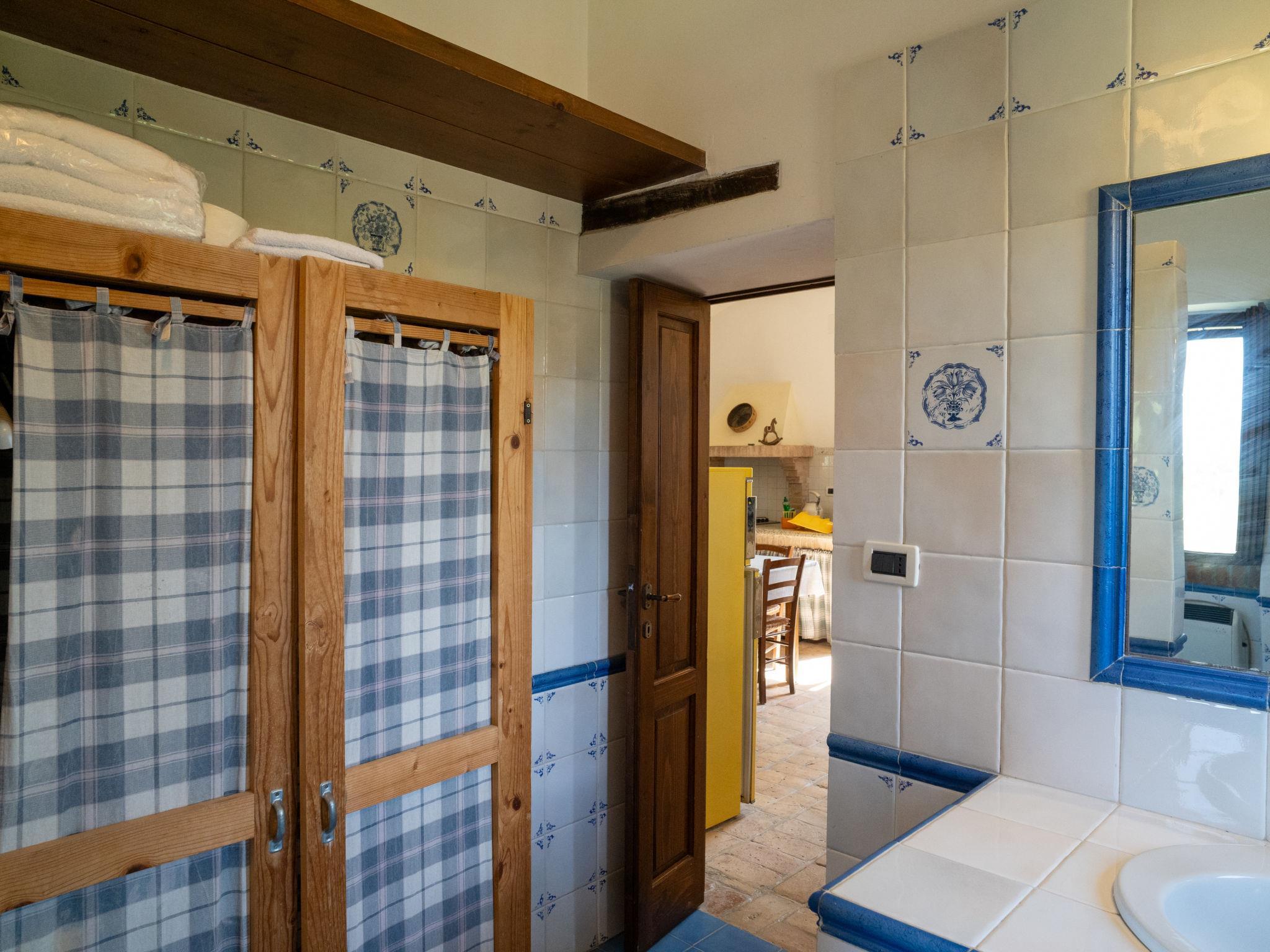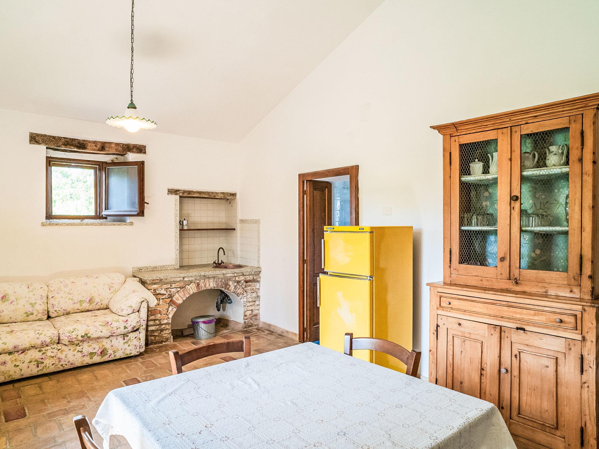 "Torretta", 3-room apartment 52 m2, on the mezzanine. Very antique and cosy furnishings: living/dining room with 1 double sofabed, open-hearth fireplace and TV. Exit to the garden. 1 double bedroom. 1 room with 2 beds. Open kitchen (Gas stove, 4 gas rings, toaster, kettle). Shower/bidet/WC. Heating. Beautiful view of the garden and the countryside. Facilities: washing machine. Internet (WiFi). Maximum 1 pet/ dog allowed. IT068012B5A834OJJZ