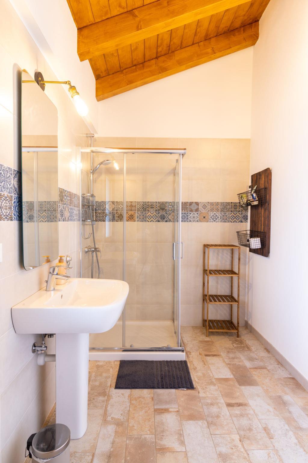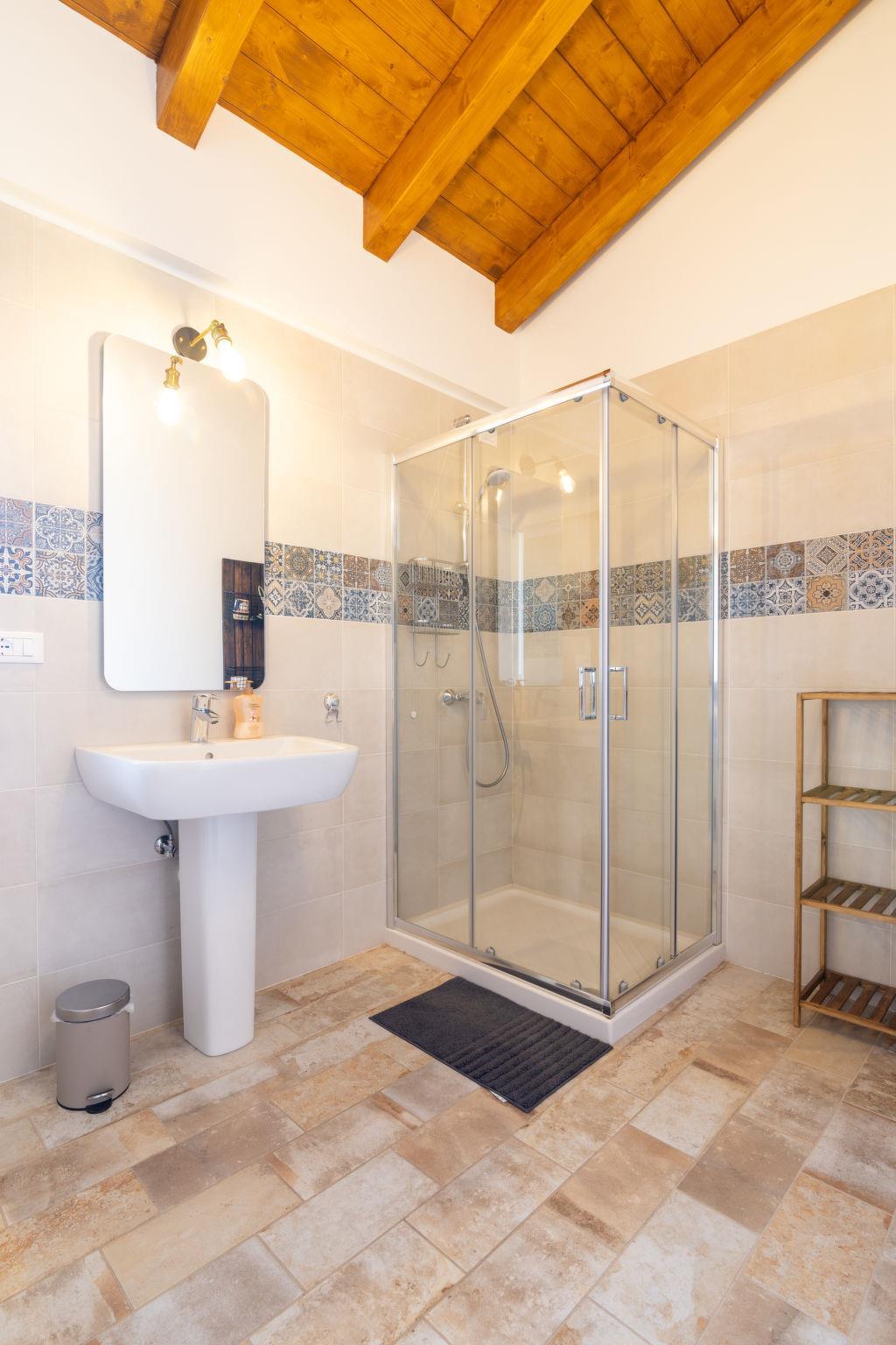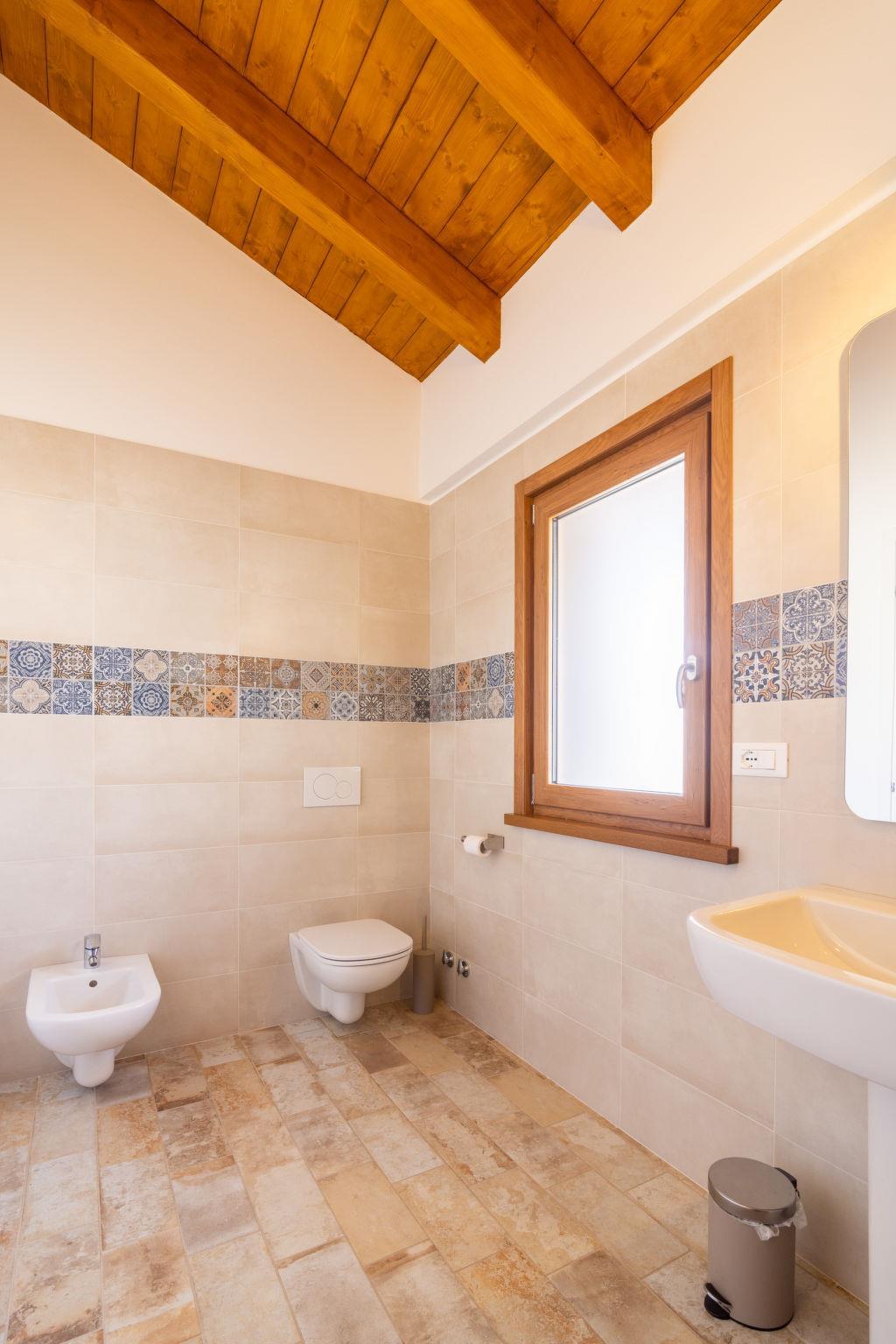 "Casa di Nonno", 3-room house 120 m2. Spacious, stylish furnishings: living/sleeping room with 1 double sofabed and satellite TV. Exit to the garden. Large kitchen (oven, dishwasher, 4 induction hot plates, freezer, electric coffee machine) with dining table. Shower/WC. Upper floor: 1 double bedroom. 1 room with 2 beds. Shower/WC. Air-conditioning, underfloor heating. Balcony. Deck chairs (2). Facilities: washing machine, mosquito net, children's high chair, baby cot for up to 2 year olds, hair dryer. Internet (WiFi). Parking. Please note: non-smoking house. IT030026C2SP3GY5YP