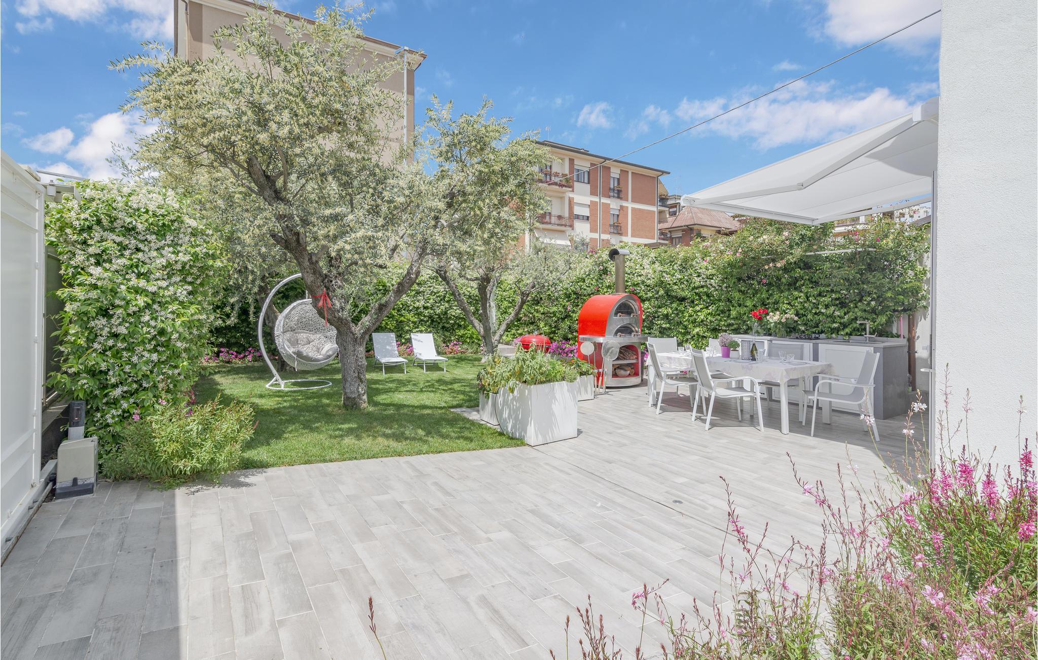 Velkommen til dette drømmeferiehus i Civitanova Marche, kun en kort gåtur fra den adriaterhavske sandstrand. Dette stilfulde, moderne hjem er en del af et tofamiliehus og tilbyder alt, hvad I behøver for en perfekt italiensk ferie. I stueetagen finder I en lys stue, et åbent køkken og en spiseplads, der er ideel til fælles måltider. Første sal har direkte adgang til en rummelig terrasse.