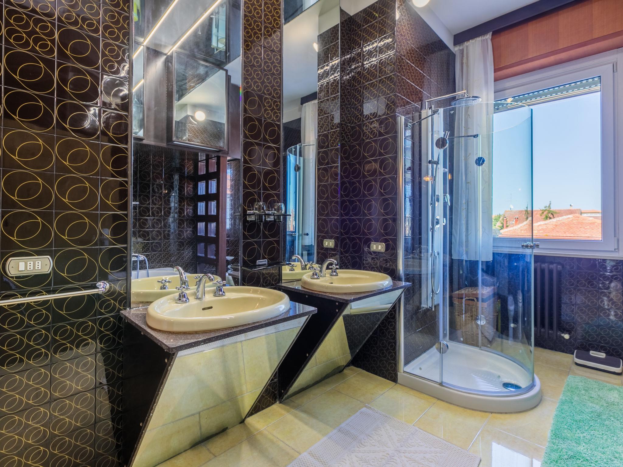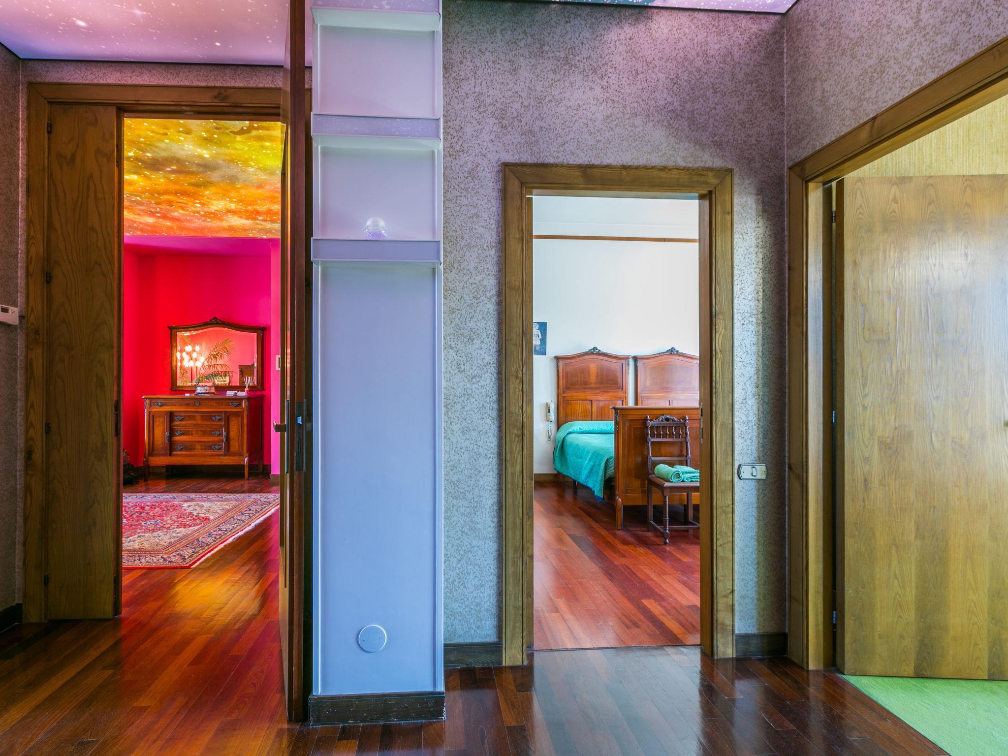 "Alpini", 6-room apartment 380 m2 on 2nd floor. Comfortable and antique furnishings: large entrance hall. Exit to the balcony. Large living/dining room with open-hearth fireplace (only for decoration), TV and air conditioning. Exit to the balcony. 1 double bedroom with air conditioning. Exit to the balcony. 1 room with 2 beds, bath/bidet/WC and air conditioning. 1 room with 2 beds and air conditioning. Exit to the balcony. 1 room with 1 bed and air conditioning. Large kitchen-/living room (oven, dishwasher, 5 gas rings, toaster, microwave) with air conditioning. Exit to the balcony. Shower/bidet/WC, sep. WC. Heating, air-conditioning. Facilities: washing machine, dryer, sauna. Internet (WiFi, free). Garage (1 car) at the house. Please note: non-smoking house. IT043013C2U8BW4AWP
