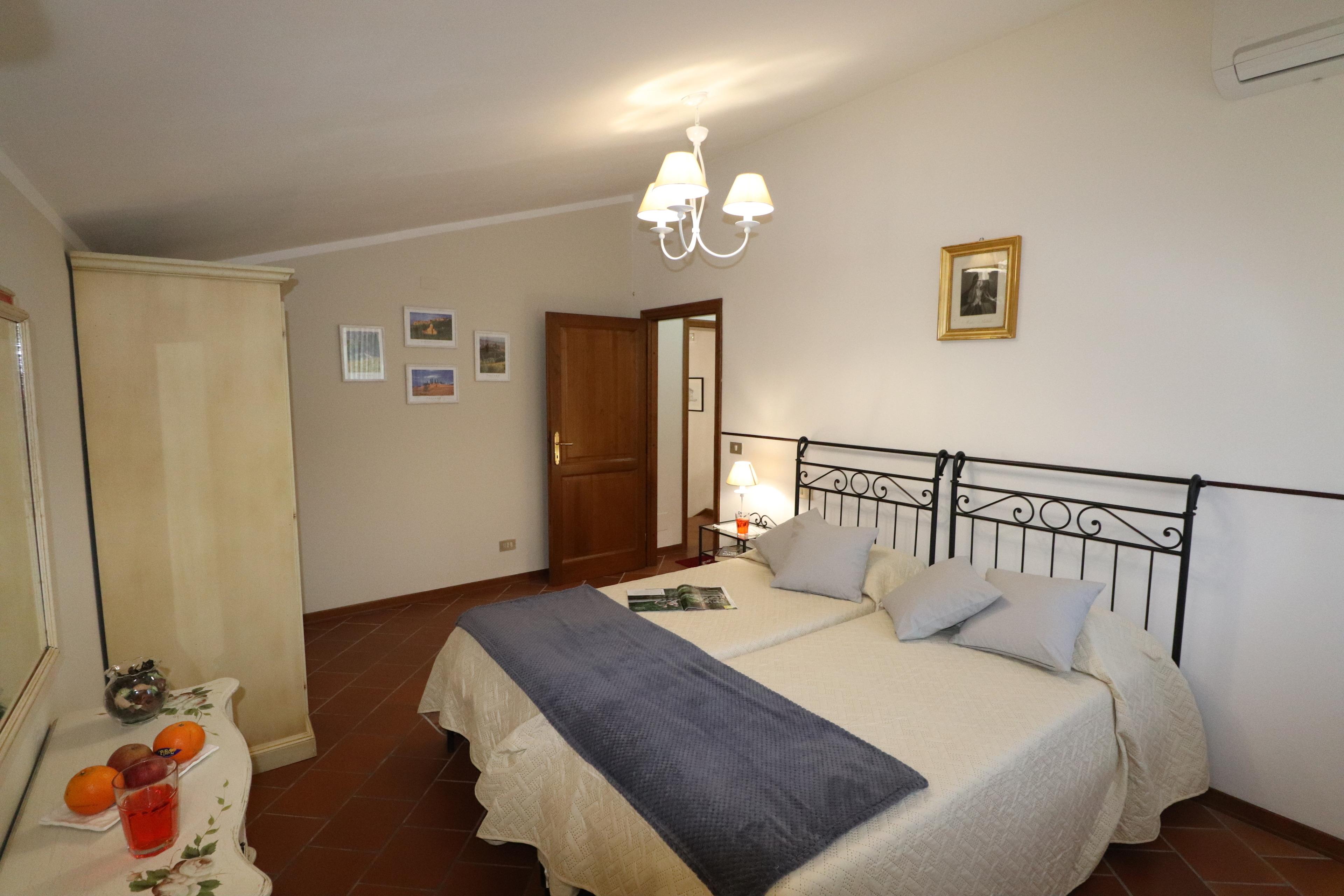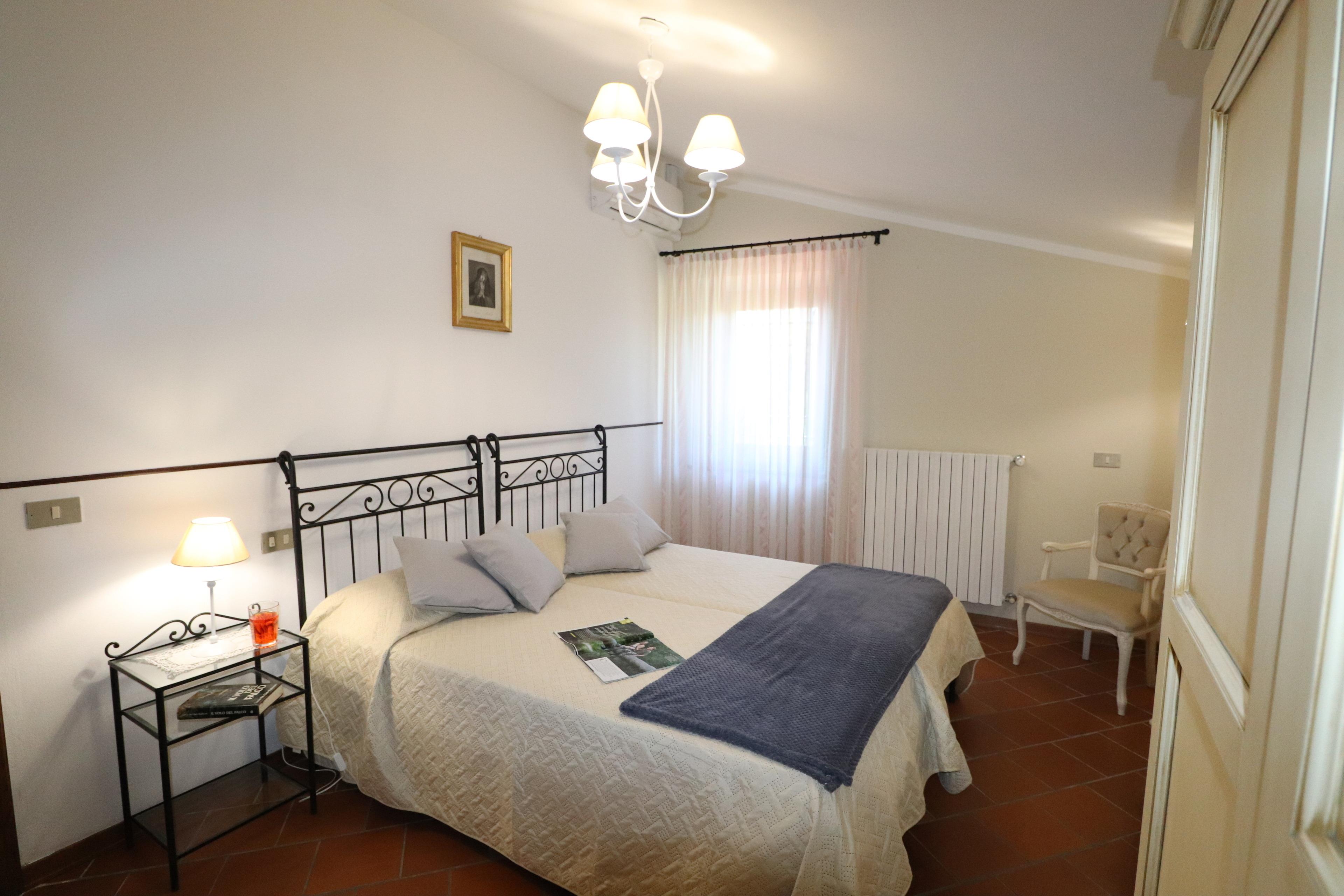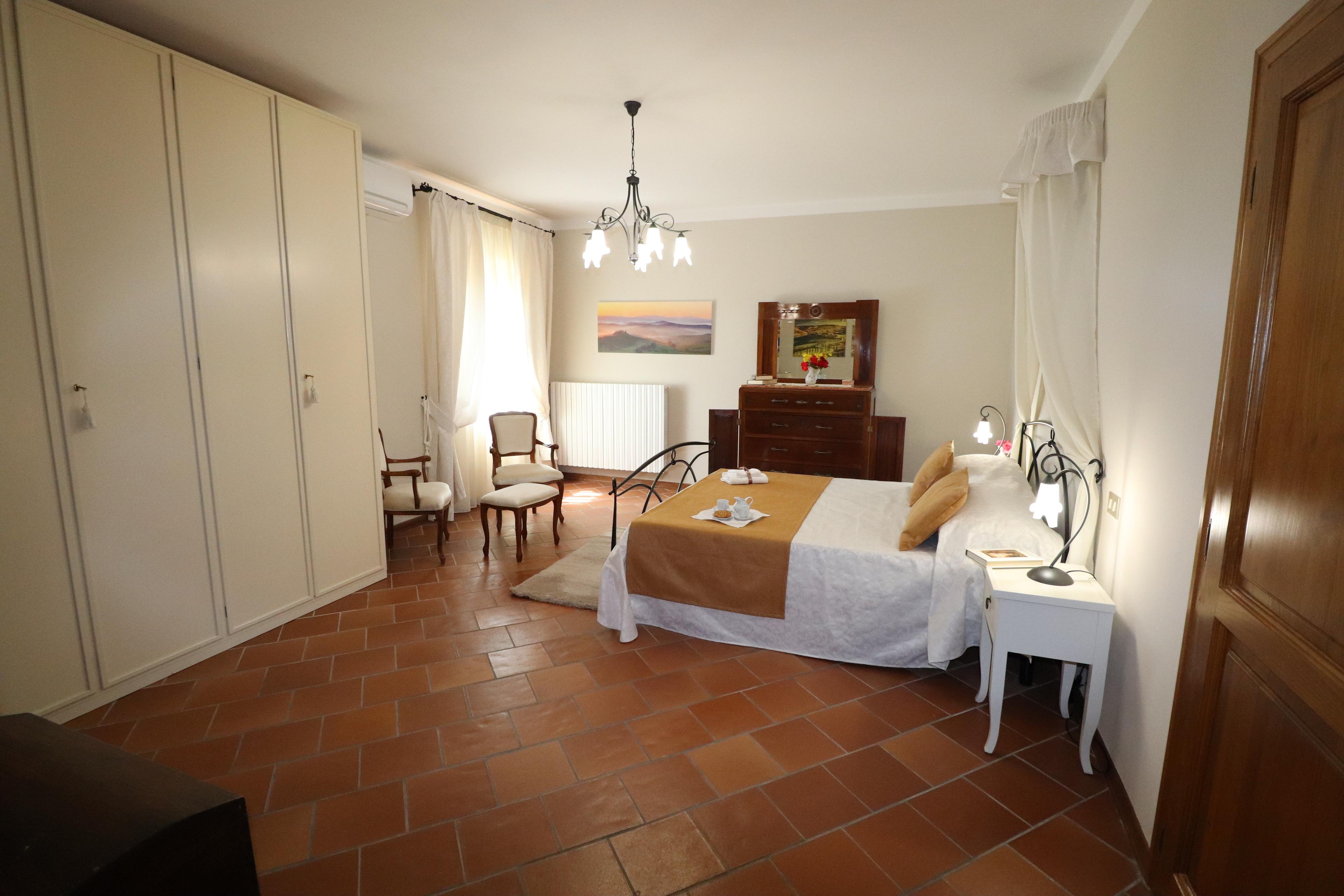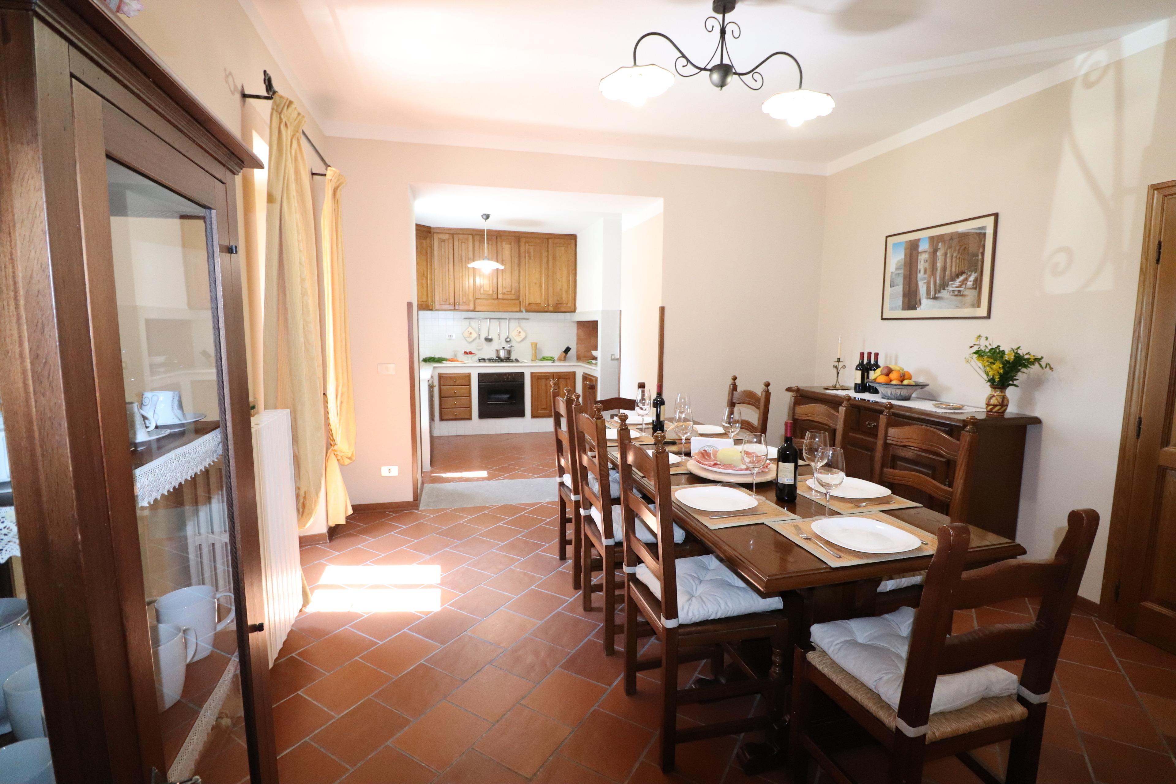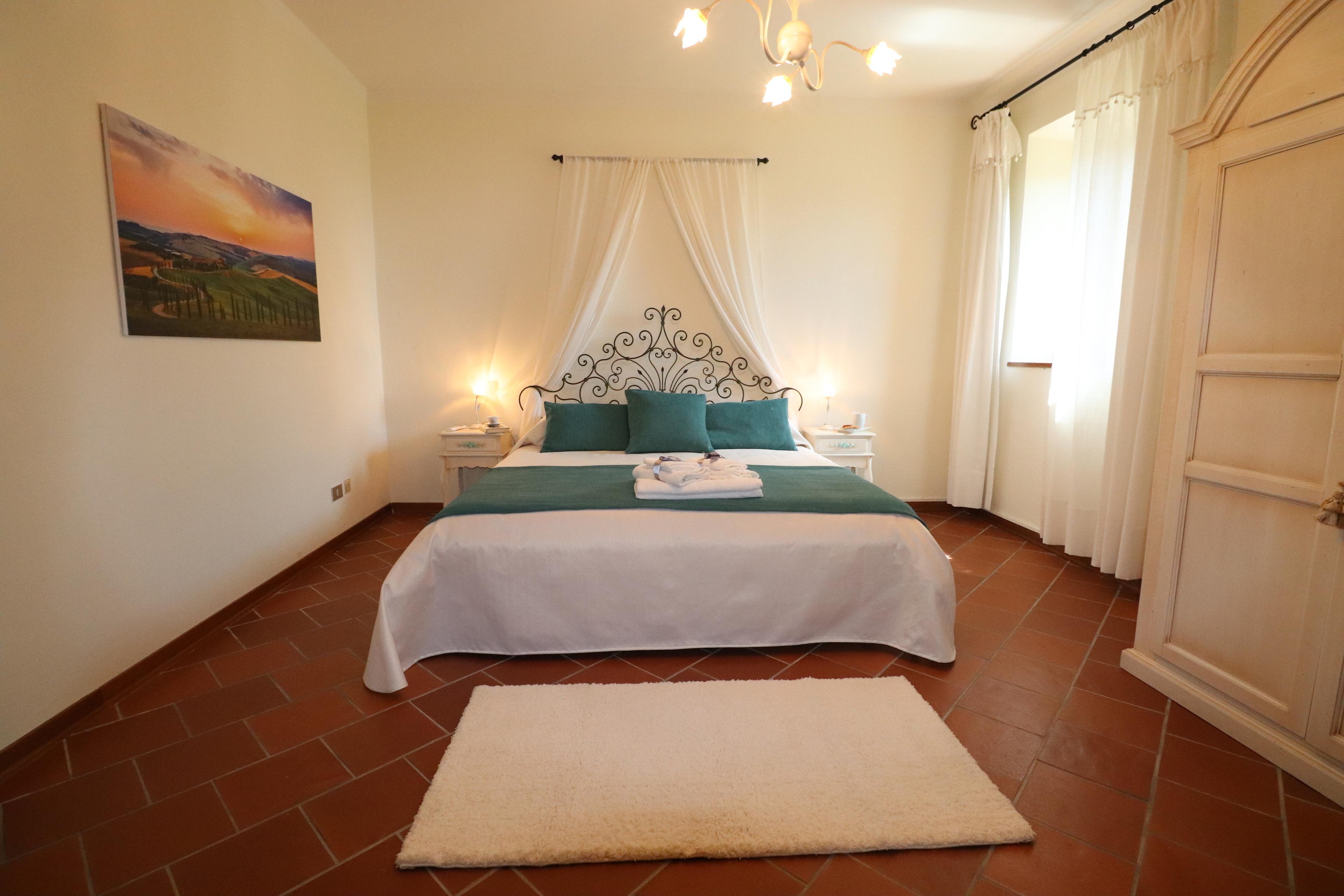 Die Innenräume der Villa Stefi sind geräumig (ca. 400m2) und hell und zeichnen sich durch Hallen mit Decken mit freiliegenden Holzbalken und Terrakotta-Böden im ganzen Haus aus, die an den weltberühmten rustikalen toskanischen Stil erinnern. Die Villa erstreckt sich über zwei Etagen, die sowohl intern als auch über eine Außentreppe aus Stein miteinander verbunden sind. Vom Erdgeschoss aus gelangt man in ein großes Wohnzimmer mit Sofas, Satellitenfernsehen und Kamin. Von dort aus gelangt man in den Essbereich mit Esstisch und angrenzender Küche, die mit allem ausgestattet ist, was man zum Kochen seiner Lieblingsgerichte braucht. Vervollständigen Sie das Erdgeschoss, Klettern 5 Stufen, ein großes Schlafzimmer mit Doppelbett und ein Badezimmer mit Dusche.