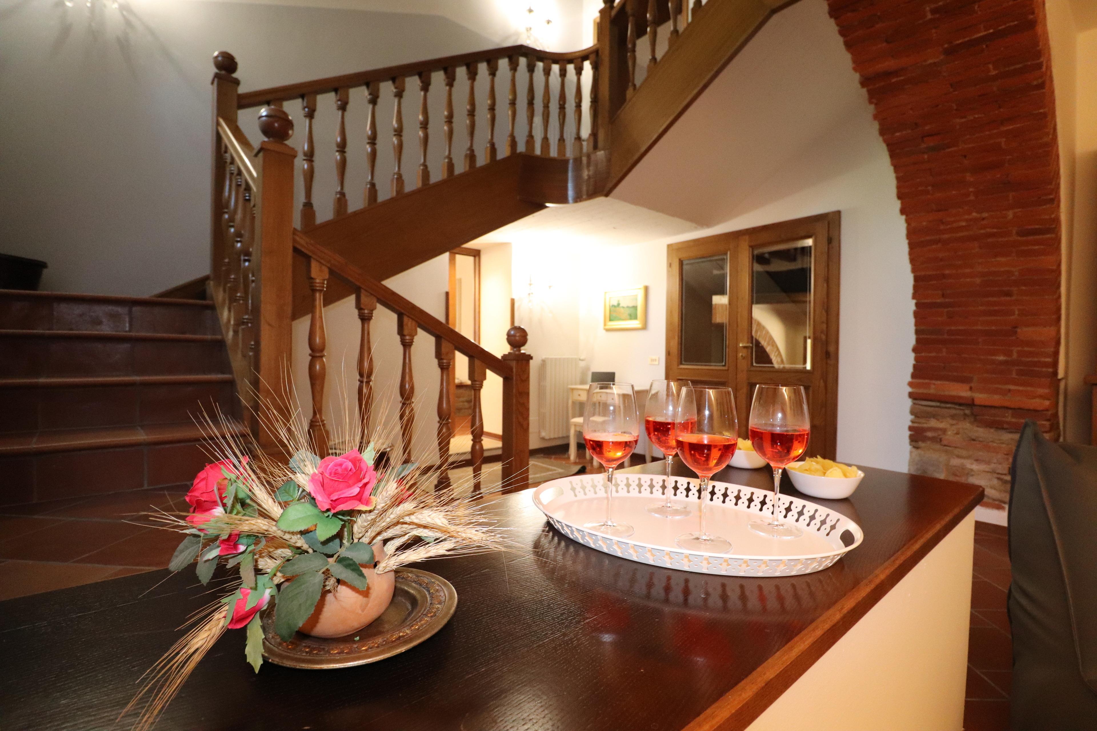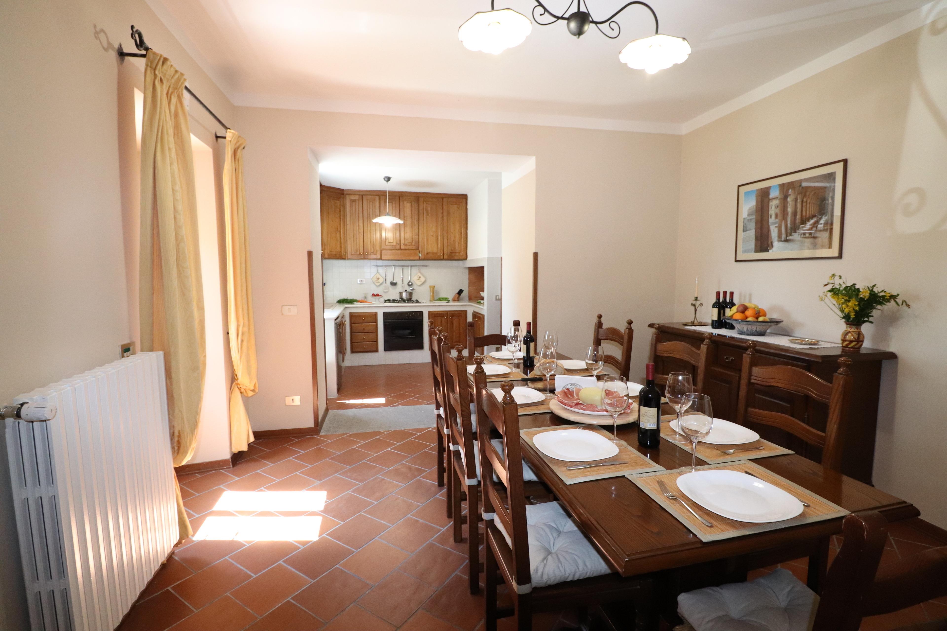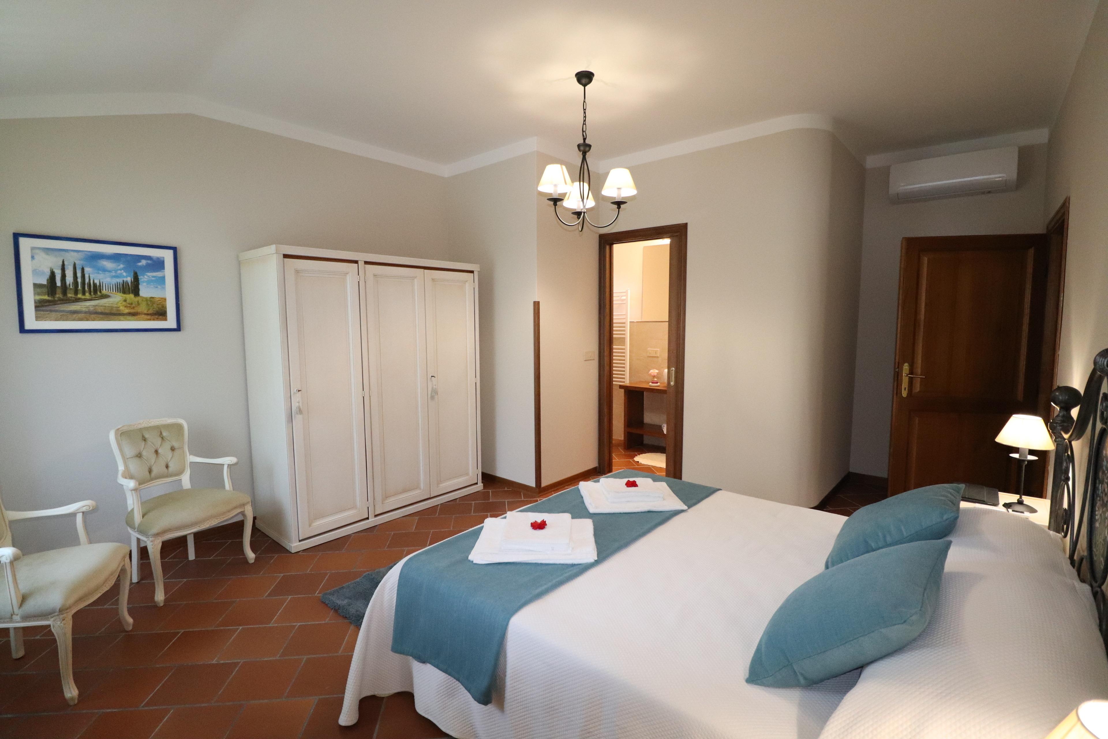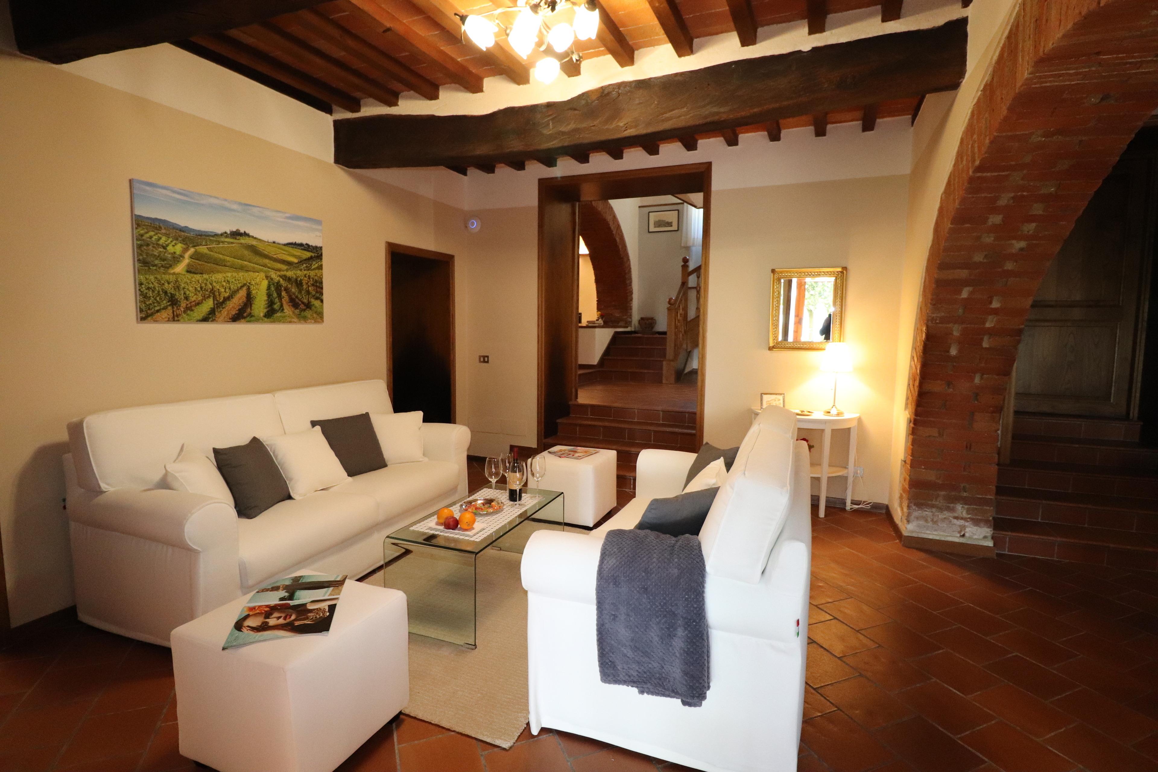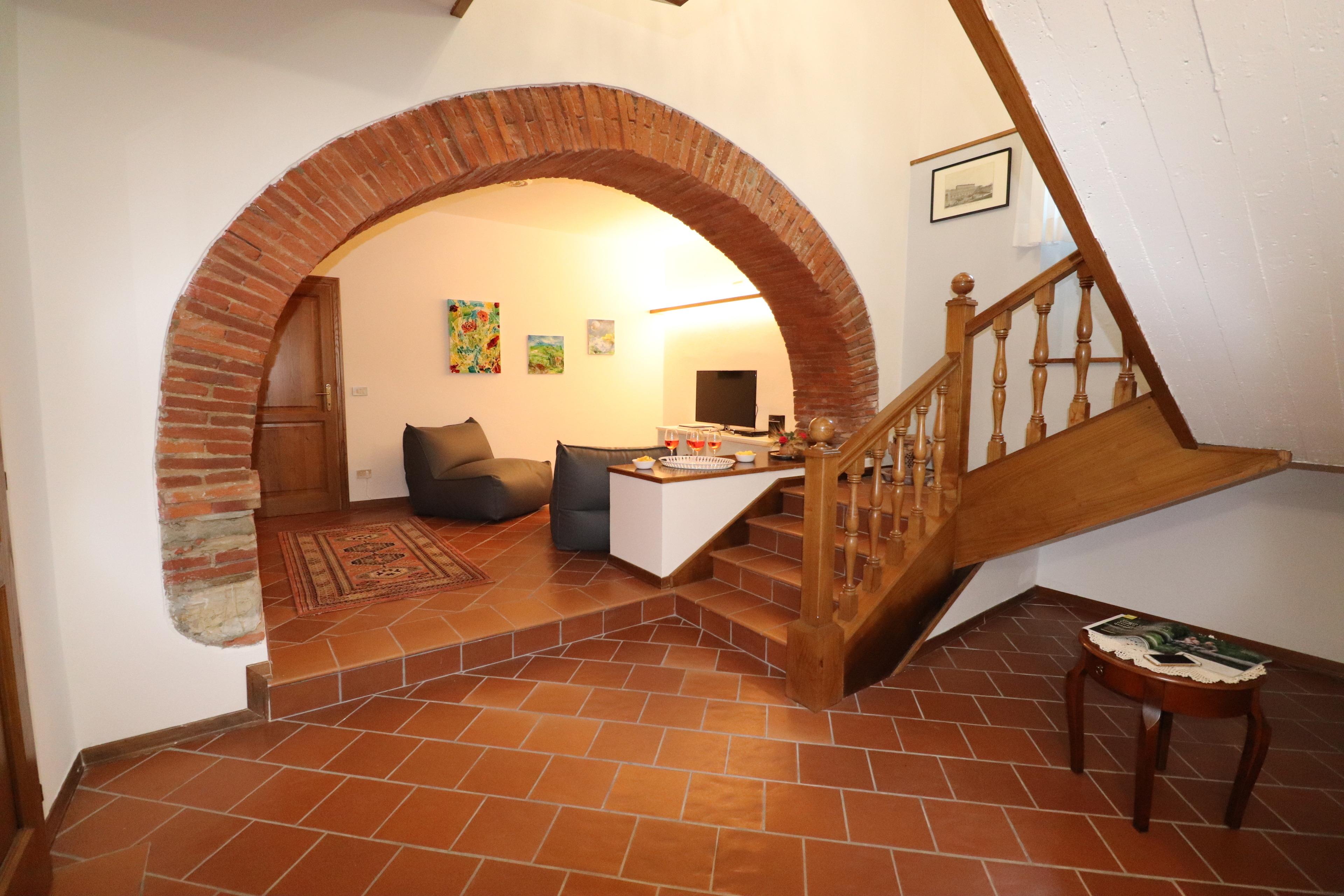 Die Innenräume der Villa Stefi sind geräumig (ca. 400m2) und hell und zeichnen sich durch Hallen mit Decken mit freiliegenden Holzbalken und Terrakotta-Böden im ganzen Haus aus, die an den weltberühmten rustikalen toskanischen Stil erinnern. Die Villa erstreckt sich über zwei Etagen, die sowohl intern als auch über eine Außentreppe aus Stein miteinander verbunden sind. Vom Erdgeschoss aus gelangt man in ein großes Wohnzimmer mit Sofas, Satellitenfernsehen und Kamin. Von dort aus gelangt man in den Essbereich mit Esstisch und angrenzender Küche, die mit allem ausgestattet ist, was man zum Kochen seiner Lieblingsgerichte braucht. Vervollständigen Sie das Erdgeschoss, Klettern 5 Stufen, ein großes Schlafzimmer mit Doppelbett und ein Badezimmer mit Dusche.