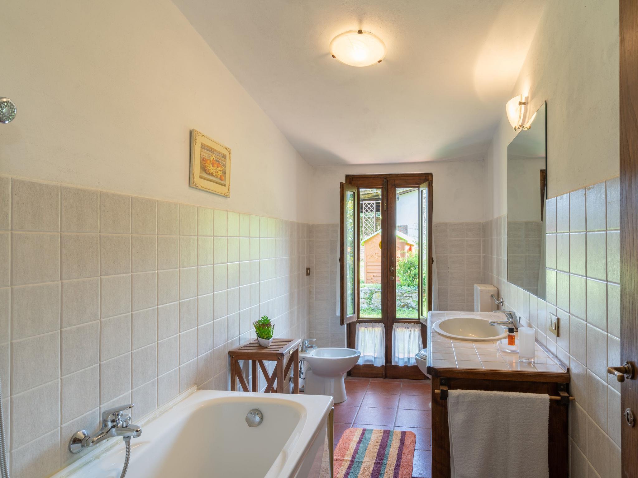 15-room house 330 m2 on 2 levels. Rustic furnishings: living room with open-hearth fireplace, satellite TV, hi-fi system and DVD. 1 room with 1 french bed (160 cm). Exit to the garden. 1 room with 1 double bed (160 cm). 1 room with 1 double bed (160 cm), shower/WC. 1 room with 3 beds (80 cm), shower/bidet/WC. Exit to the garden. 1 room with 1 double bed (160 cm), shower/bidet/WC. 1 room with 2 beds (80 cm). Open kitchen (mini-oven, oven, dishwasher, 5 gas rings, freezer, electric coffee machine) with dining table. Exit to the garden. 2 baths/bidet/WC, shower/bidet/WC. Gas heating. Upper floor: living/sleeping room with 1 double bed and open-hearth fireplace. Exit to the balcony. 1 room with 1 french bed (160 cm), shower/bidet/WC. 1 room with 1 double bed (160 cm). 2 rooms, each room with 2 beds (80 cm). 1 room with 1 double bed (160 cm), shower/bidet/WC. Kitchen (oven, dishwasher, 4 gas rings) with dining table and satellite TV. Bath/bidet/WC, shower/bidet/WC. Gas heating. Balcony, patio 70 m2, roofed. Terrace furniture, barbecue, deck chairs. Facilities: children's high chair, baby cot for up to 2 year olds. Internet (WiFi, free). Parking (5 cars) at the house. Please note: non-smoking house. Maximum 2 pets/ dogs allowed. No internal connecting door between the separated properties. When there are less than the maximum number of guests staying at the property, the annex will not be available for use. IT051016B45AOWPWR8