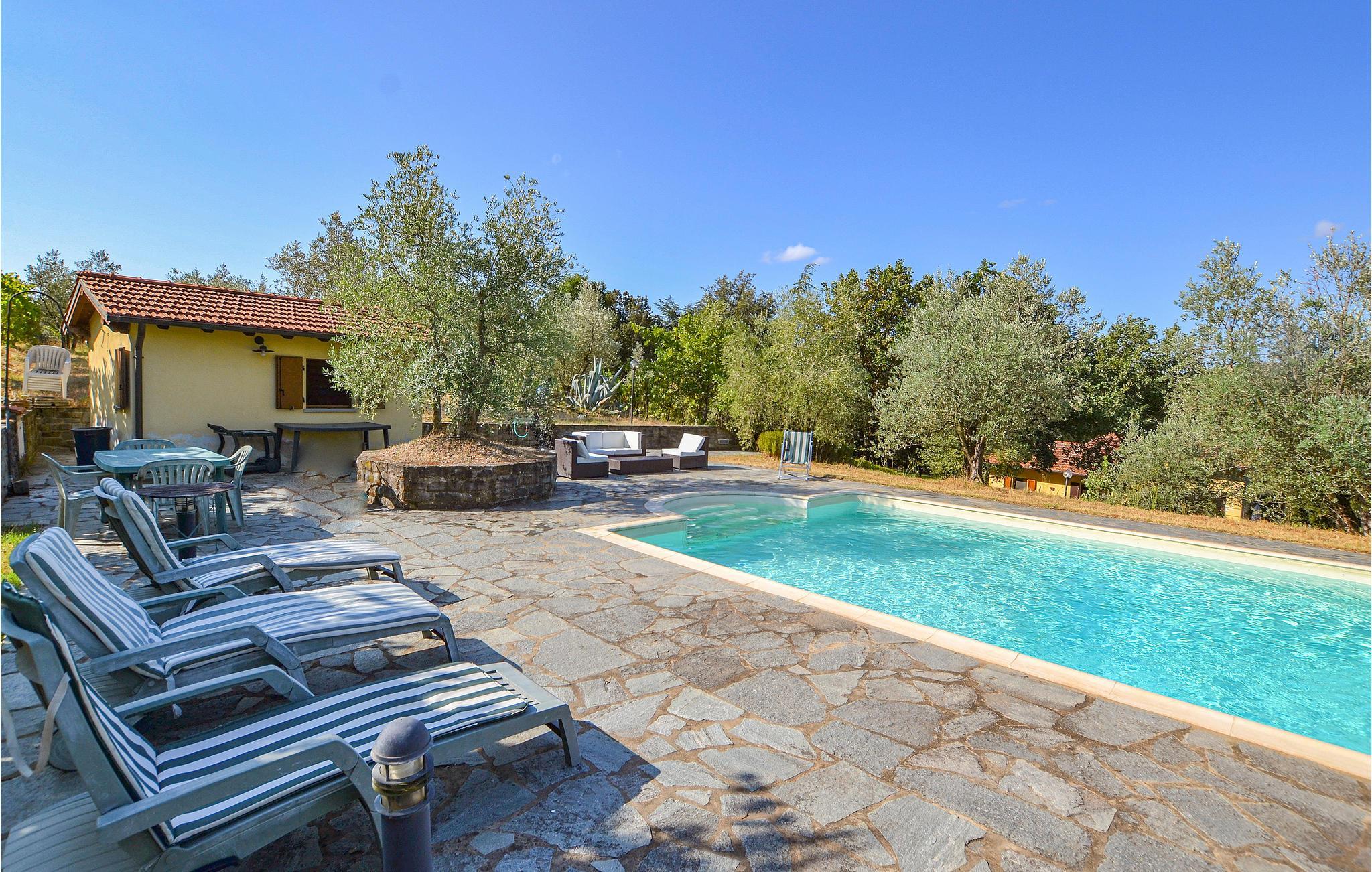 Dette charmerende sommerhus byder op til fem gæster velkommen med sine tre soveværelser, to badeværelser, en spisestue og stue. Den smukke, store have inviterer jer til at slappe af. Nyd det vidunderlige toscanske klima hele dagen ved den private pool. Spis morgenmad på terrassen og afslut dagen med et glas vin.