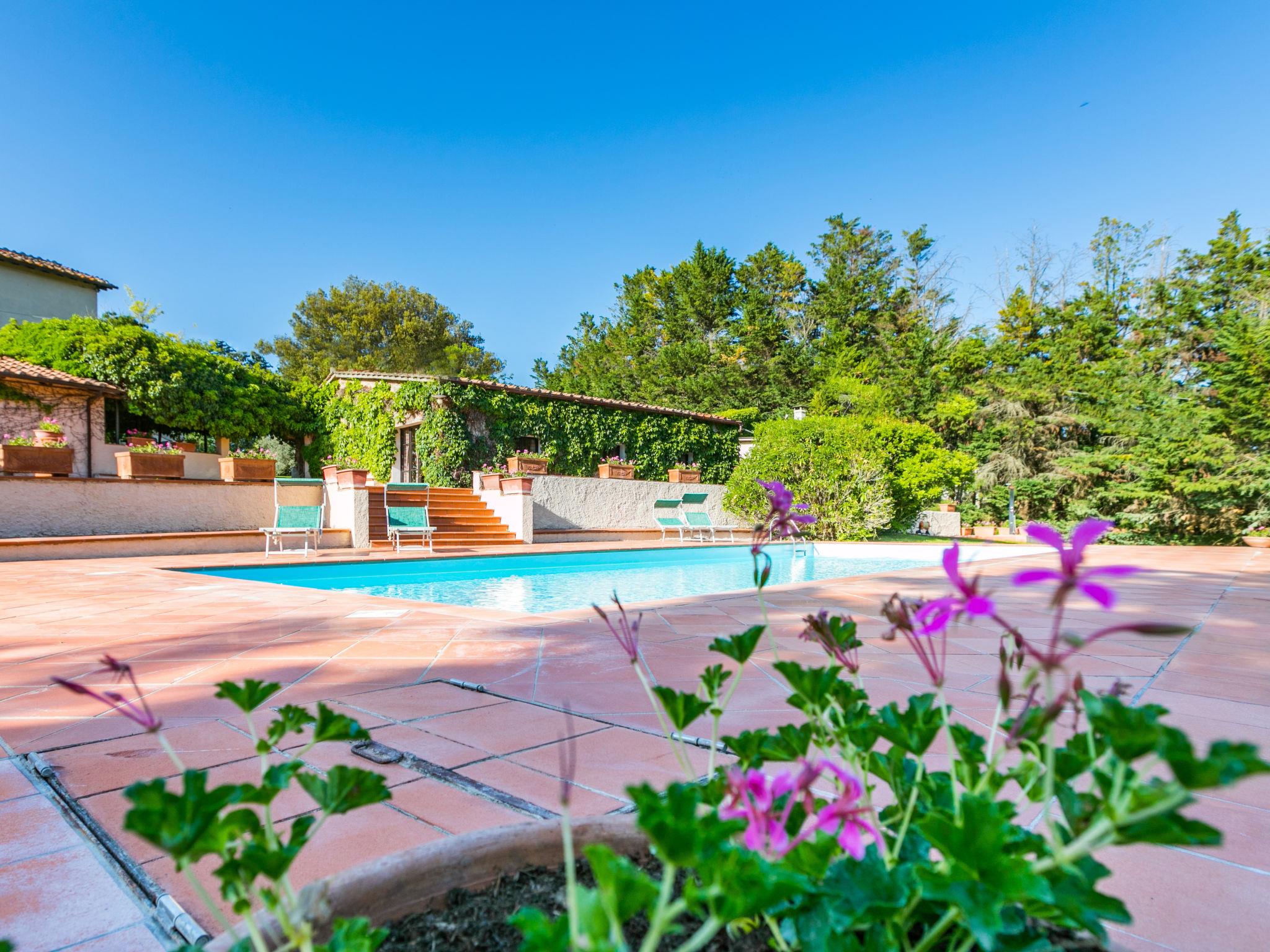 Agriturismo "Bardeggiano", 2 storeys, surrounded by trees and fields. 5 houses in the residence. 9 apartments in the residence. 4 km from the centre of Colle di Val d'Elsa, 8.5 km from the centre of Monteriggioni, 26 km from the centre of Siena, in a central, secluded position, 70 km from the sea, in the countryside. For shared use: well-kept garden 12 ha (fenced) with plants and trees, swimming pool (15 x 6 m, depth 150 cm, seasonal availability: 13.May. - 04.Nov.). Outdoor shower, terrace, barbecue, pool maintenance by the owner/gardener. In the complex: WiFi, washing machine (for shared use, extra). Linen change (suppl. charge extra). Towel change (suppl. charge extra). Roofed, parking on the premises. Grocery 1 km, supermarket 4 km, restaurant 4 km, bakery 1 km, bus stop 2 km, railway station "Colle di Val d'Elsa" 4 km, sandy beach "Follonica" 88 km. Nearby attractions: San Gimignano 20 km, Firenze 52 km, Volterra 55 km. Please note: baby equipment (included). Residence with electric gates. The owner lives on the same property. All houses/apartments are individually designed/furnished.
