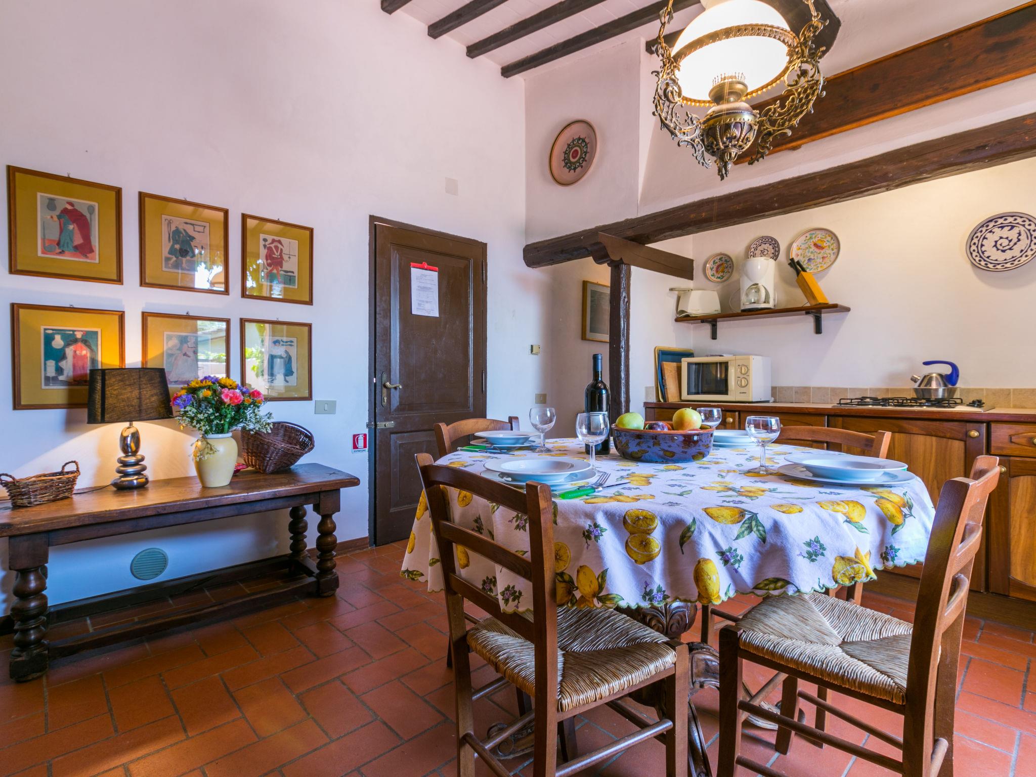 Agriturismo "Bardeggiano", 2 storeys, surrounded by trees and fields. 5 houses in the residence. 9 apartments in the residence. 4 km from the centre of Colle di Val d'Elsa, 8.5 km from the centre of Monteriggioni, 26 km from the centre of Siena, in a central, secluded position, 70 km from the sea, in the countryside. For shared use: well-kept garden 12 ha (fenced) with plants and trees, swimming pool (15 x 6 m, depth 150 cm, seasonal availability: 13.May. - 04.Nov.). Outdoor shower, terrace, barbecue, pool maintenance by the owner/gardener. In the complex: WiFi, washing machine (for shared use, extra). Linen change (suppl. charge extra). Towel change (suppl. charge extra). Roofed, parking on the premises. Grocery 1 km, supermarket 4 km, restaurant 4 km, bakery 1 km, bus stop 2 km, railway station "Colle di Val d'Elsa" 4 km, sandy beach "Follonica" 88 km. Nearby attractions: San Gimignano 20 km, Firenze 52 km, Volterra 55 km. Please note: baby equipment (included). Residence with electric gates. The owner lives on the same property. All houses/apartments are individually designed/furnished.