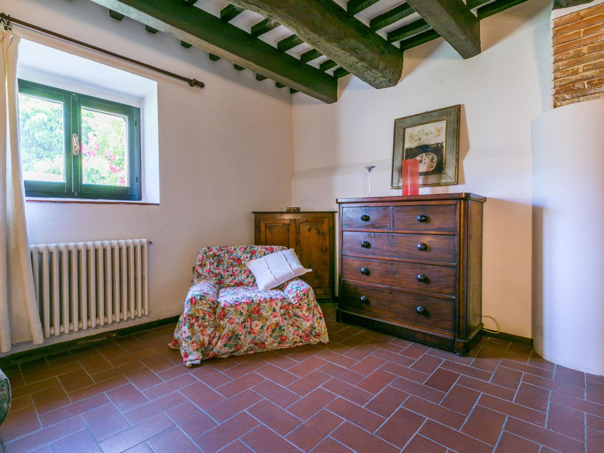 Agriturismo "Bardeggiano", 2 storeys, surrounded by trees and fields. 5 houses in the residence. 9 apartments in the residence. 4 km from the centre of Colle di Val d'Elsa, 8.5 km from the centre of Monteriggioni, 26 km from the centre of Siena, in a central, secluded position, 70 km from the sea, in the countryside. For shared use: well-kept garden 12 ha (fenced) with plants and trees, swimming pool (15 x 6 m, depth 150 cm, seasonal availability: 13.May. - 04.Nov.). Outdoor shower, terrace, barbecue, pool maintenance by the owner/gardener. In the complex: WiFi, washing machine (for shared use, extra). Linen change (suppl. charge extra). Towel change (suppl. charge extra). Roofed, parking on the premises. Grocery 1 km, supermarket 4 km, restaurant 4 km, bakery 1 km, bus stop 2 km, railway station "Colle di Val d'Elsa" 4 km, sandy beach "Follonica" 88 km. Nearby attractions: San Gimignano 20 km, Firenze 52 km, Volterra 55 km. Please note: baby equipment (included). Residence with electric gates. The owner lives on the same property. All houses/apartments are individually designed/furnished.