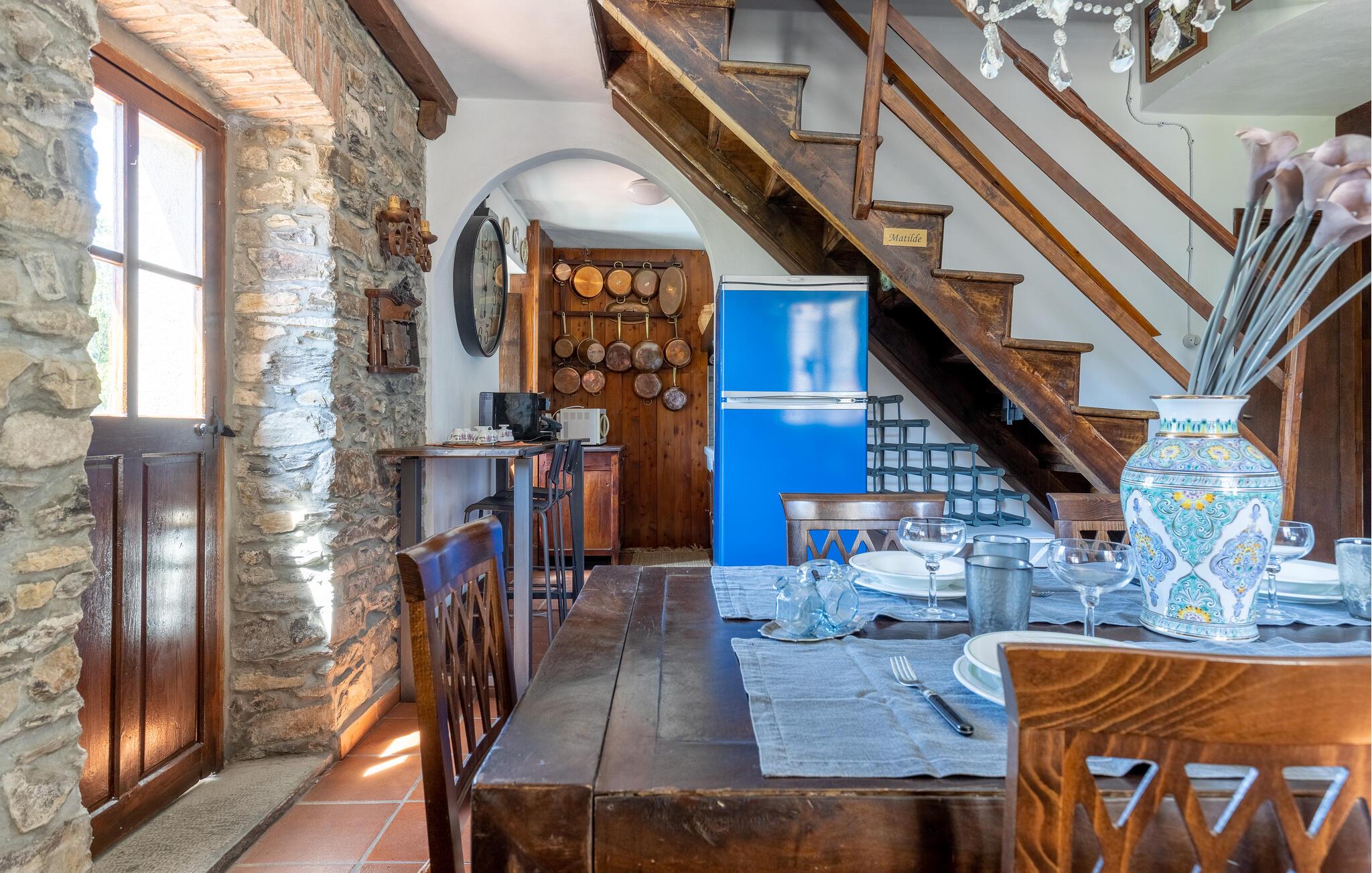 Denne feriebolig er restaureret af fagfolk og charmen og den traditionelle indretning af et typisk italiensk landhus er smukt bevaret. Denne historiske bolig rummer flere ferielejligheder og er omgivet af en over 2000 m² stor have. Her er der også grill og en træfyret ovn, ligesom en dejlig fælles pool. I boligen er der god plads til 17 gæster.