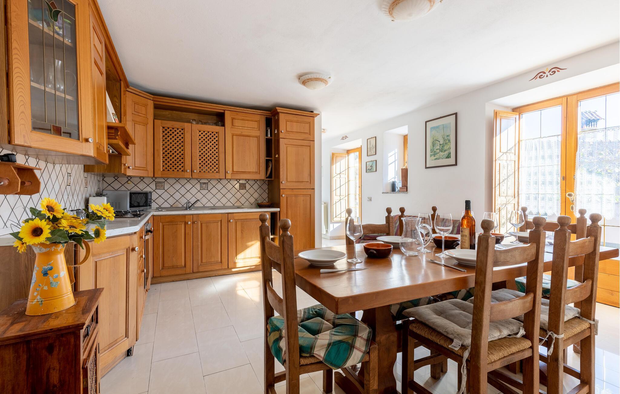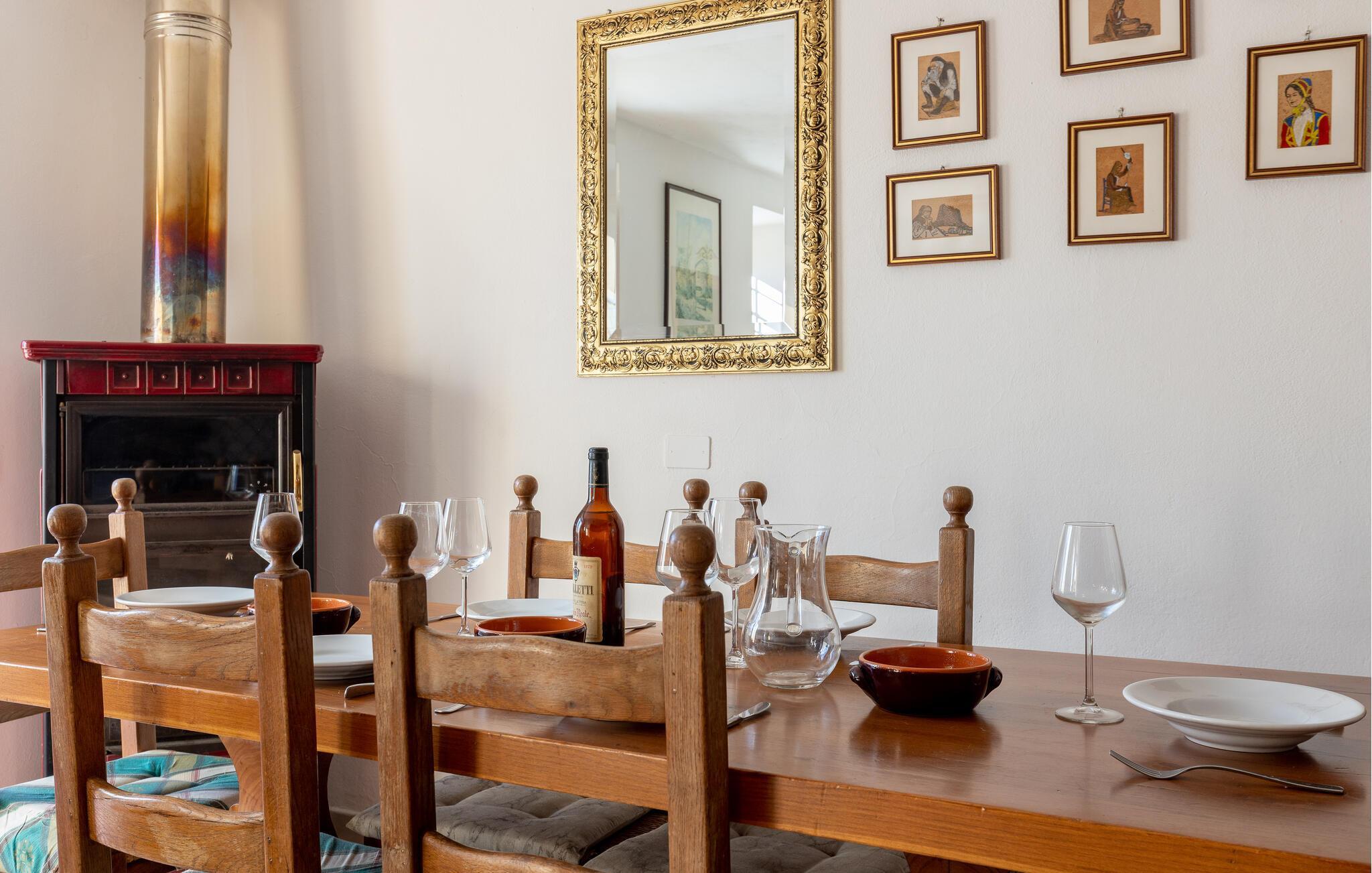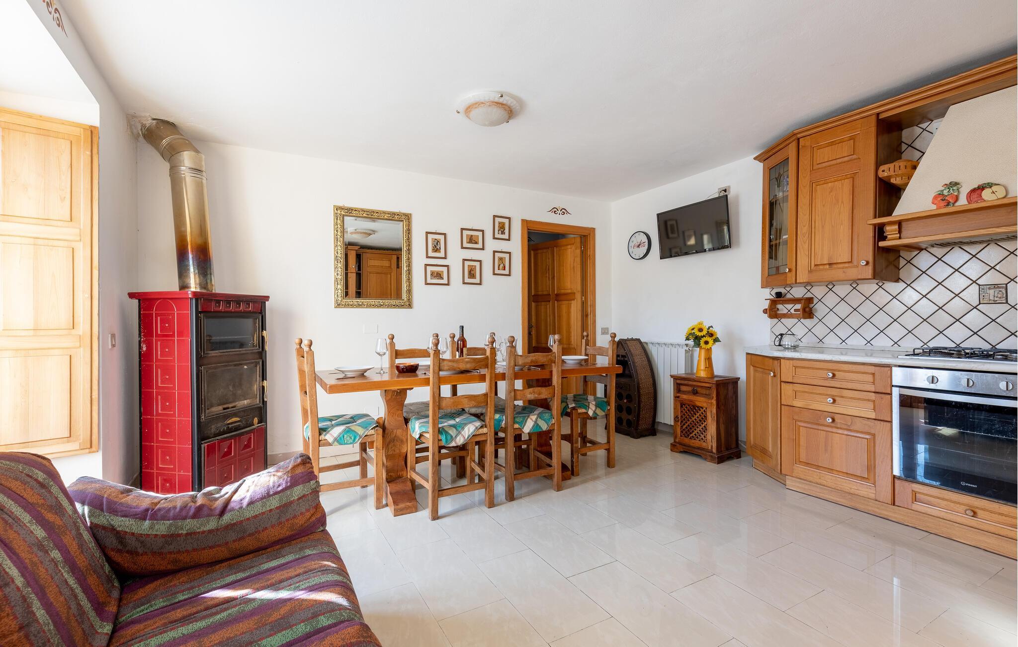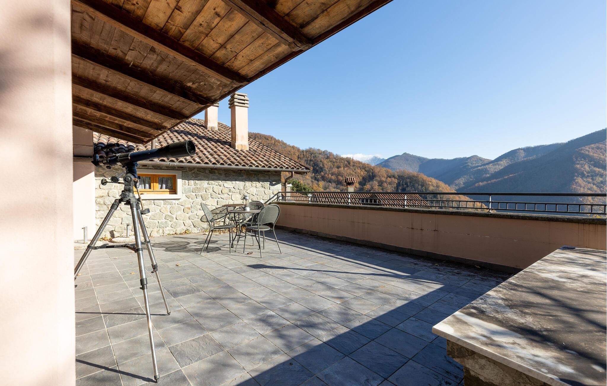 Hvis I er på udkig efter en feriebolig i fredelige, idylliske rammer i Italien, er dette charmerende hus ved Comano det helt rette valg for jer. Indretningen fremtræder ganske nydeligt med et tydeligt, historisk strejf i de mange træelementer og fritlagte murværk, der sammen med de moderne faciliteter skaber de ideelle rammer for en afslappende ferie. Lad amatørkokkene kræse om livretterne i det veludstyrede køkken, inden der dækkes op til den store middag ved det store spisebord af træ.