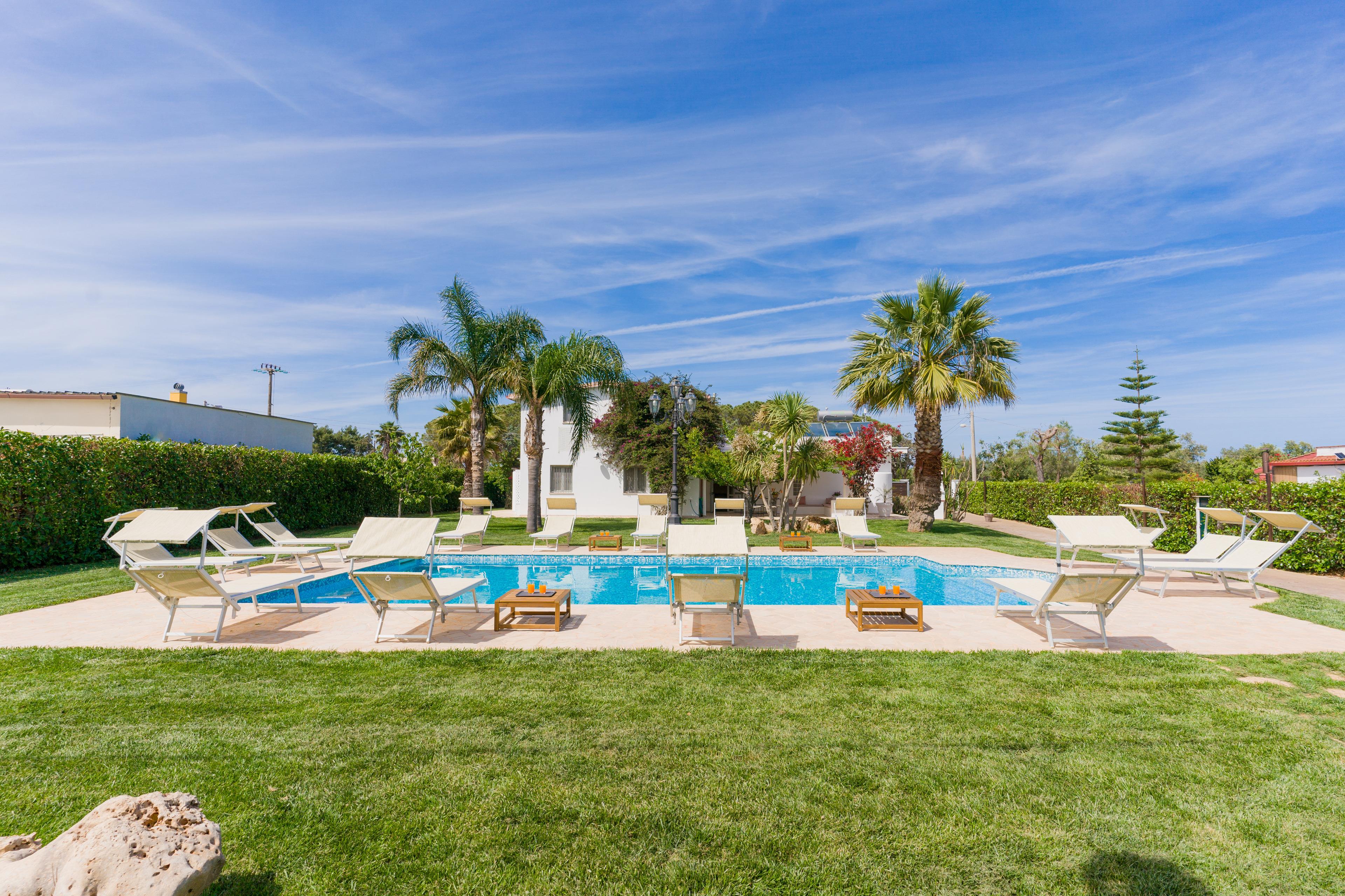 Zum Essen im Freien haben Sie eine schattige Veranda mit Blick auf den Pool;