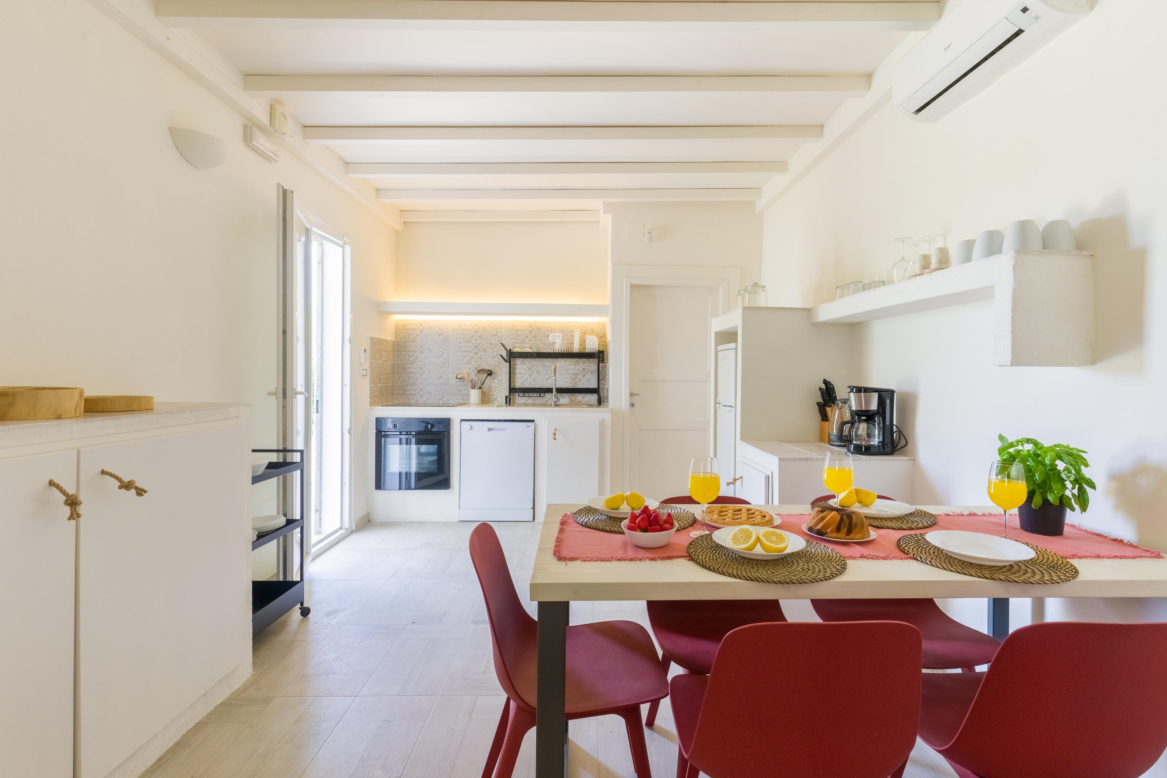 Zwei Einrichtungen: die Hauptwohnung hat ein Wohnzimmer, eine voll ausgestattete Küche, ein Dreibettzimmer, ein Schlafsofa im Wohnzimmer und ein Badezimmer mit Dusche. Nebenan, eine Depandance mit Doppelbett und Bad mit Dusche.