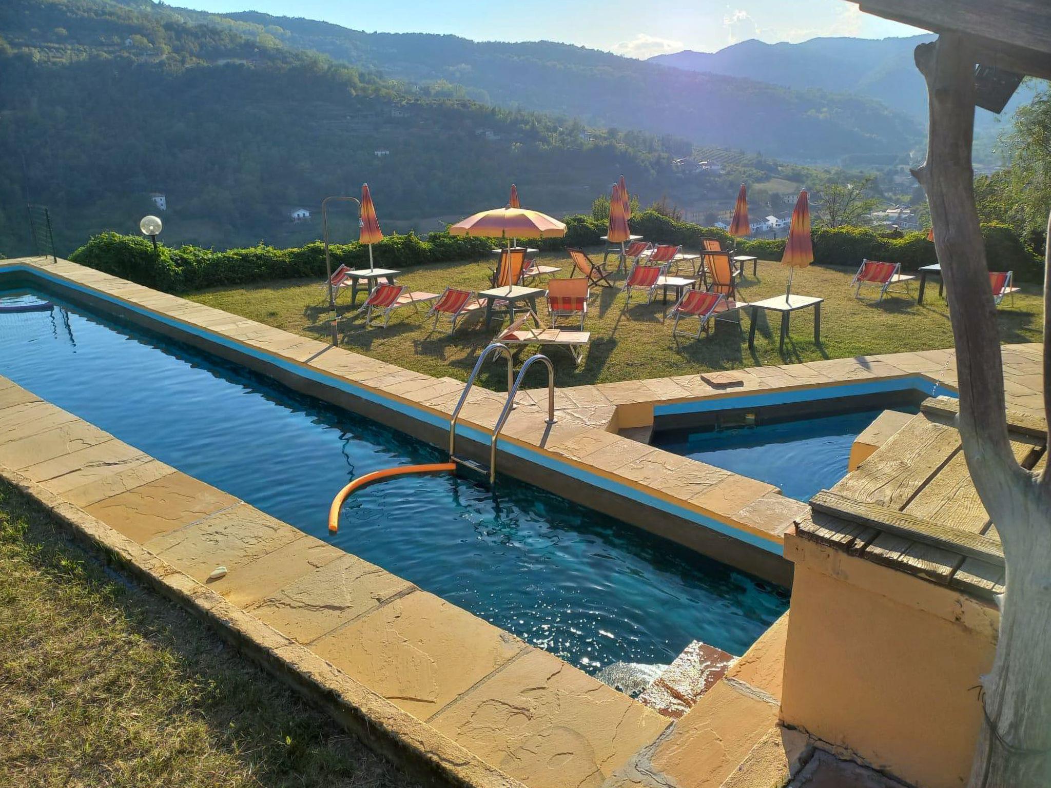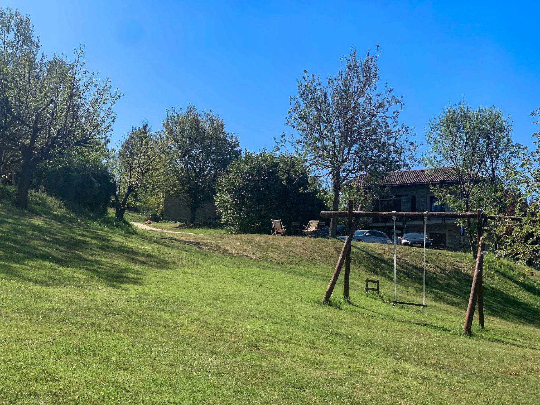 Agriturismo "Il Gallo". Above Cortemilia, 3.5 km from the centre, on top of a hill, in the woods. For shared use: property 20'000 m2, plants and flowers, courtyard, 2 swimming pools (18 x 3 m, depth 80 - 140 cm, seasonal availability: 15.May. - 31.Oct.). Children's playground (slide, swing, sandbox). In the house: restaurant, bar, breakfast room, lounge (all extra), table tennis, washing machine (extra). Breakfast full board half board possible on request (extra). Parking at the house. Supermarket 3.2 km, restaurant, bar, café 5 m, bus stop 3.1 km. Nearby attractions: Alba 35 km, Savona (Liguria) 60 km. Please note: car recommended. Suitable for families. Owner lives in separate semi-detached house. Animals in the neighbourhood.