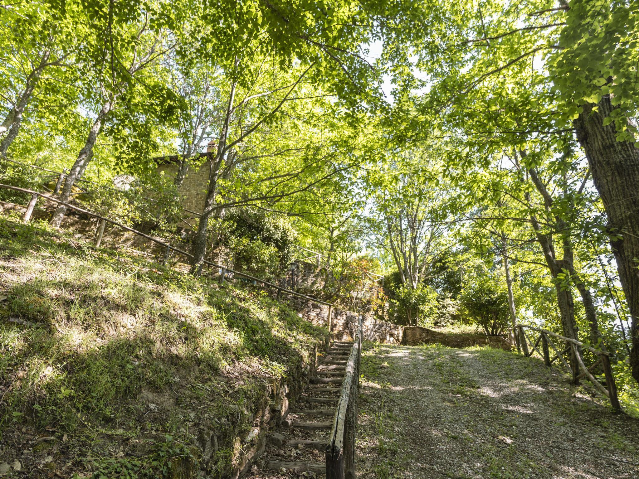 "rustico" cottage "Cottage Contadina", 800 m a.s.l.. 6 km from the centre of Cortona, in a secluded position, 30 km from the lake, in the woods. Private: property 1'000 m2 (fenced), terraced garden trees, natural garden, meadow, swimming pool (above ground) (6 x 3 m, seasonal availability: 01.May. - 30.Sep.). Outdoor shower, terrace (30 m2), garden furniture, pool maintenance by the owner/gardener. 3 km long motor access (500 m via unmade road, mountain road). Stepped path to the house. Parking at the house at 100 m. Shop 4 km, supermarket 5 km, railway station "Castiglion Fiorentino" 15 km, bathing lake "Lago Trasimento" 30 km. Golf course (9 hole) 20 km. Nearby attractions: Arezzo 32 km, Firenze 100 km, Siena 80 km, Perugia 40 km, Valdichiana Outlet Village 32 km. A bubble room is available in the garden to be booked before arrival and paid on site (extra).