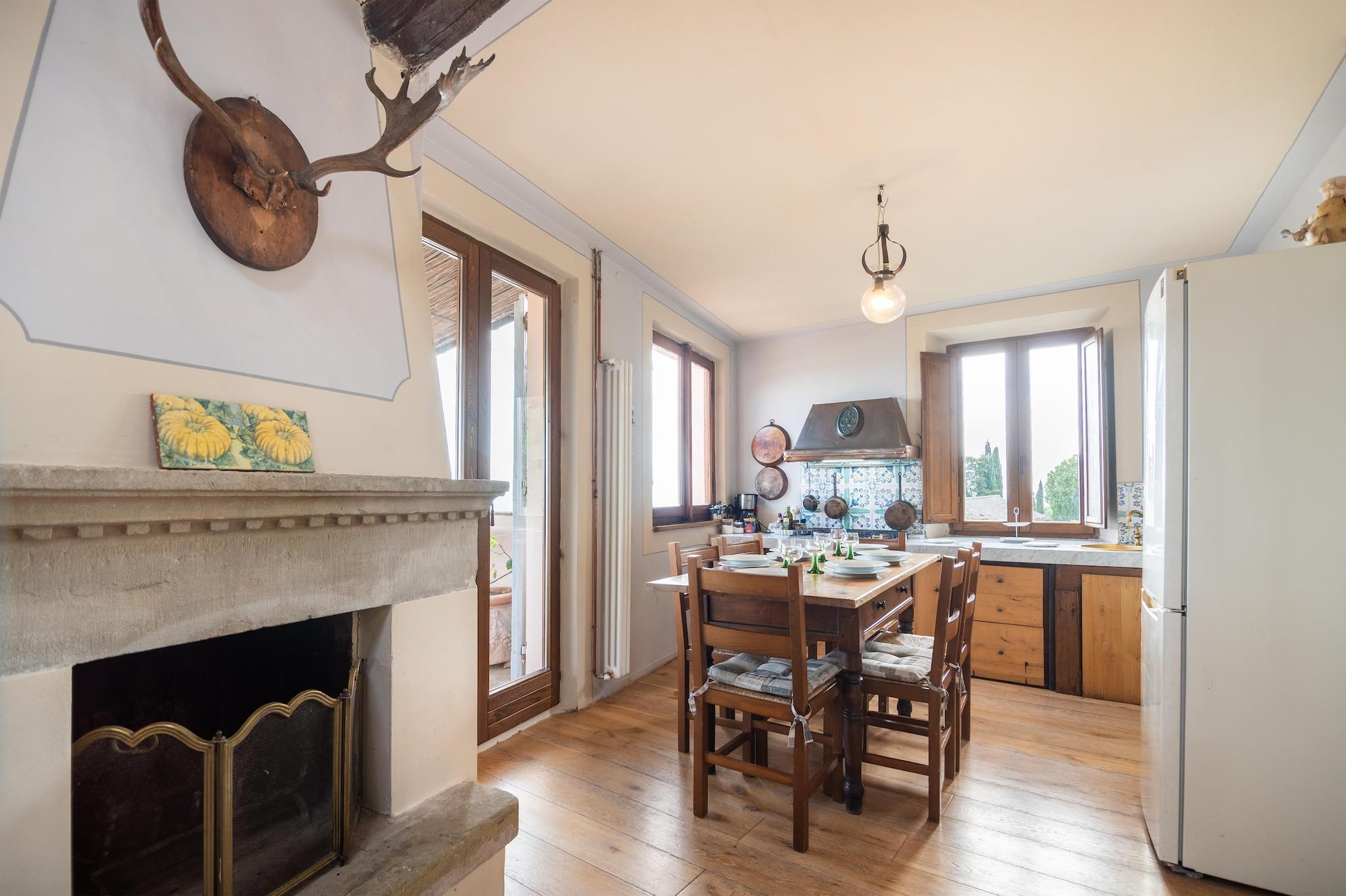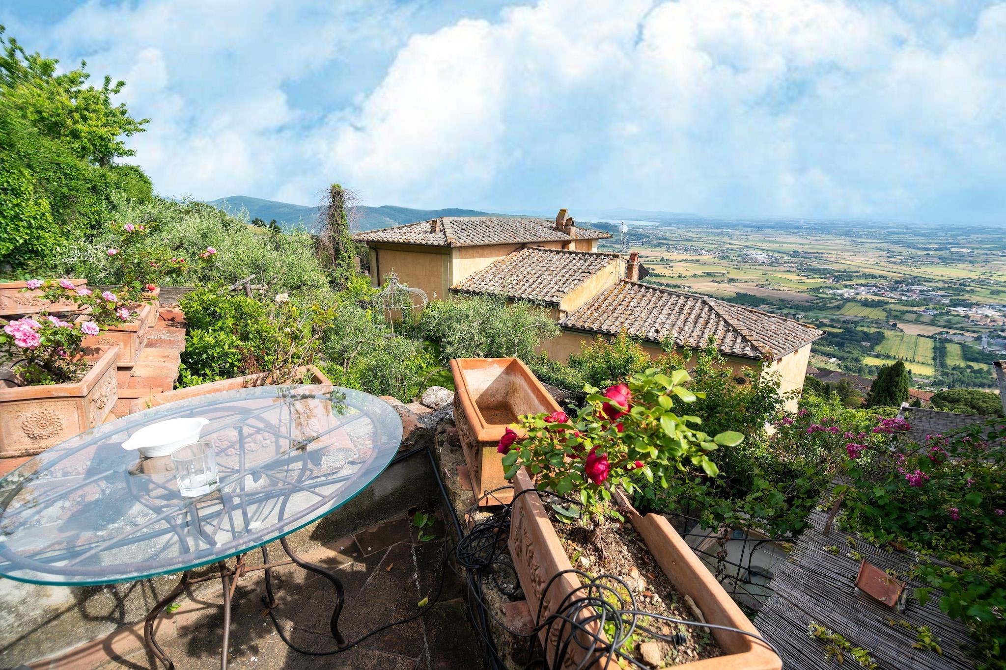 Beliggende i hjertet af Cortonas historiske landskab blander denne elegante villa toscansk charme med moderne komfort og skaber en rolig tilflugtssted for familier og venner. Træd ind i en verden, hvor solrige dage udfolder sig ved din private pool, indrammet af oliventræer og en storslået udsigt over landskabet. Villaens varme stenmure, rolige have og indbydende terrasser gør den til et perfekt sted at slappe af, dele måltider og nyde rytmen af italiensk livsstil. Villaen, der ligger midt i de bølgende bakker i Valdichiana, er en port til nogle af Toscanas smukkeste byer. Tilbring dine dage med at udforske de kunstfyldte gader i Firenze, Siena eller Arezzo, som begge er inden for rækkevidde. Gå en tur gennem de brostensbelagte gyder i Cortona - kun en kort gåtur væk - hvor du finder charmerende caféer, lokale markeder og den tidløse toscanske atmosfære, der gør denne region så uforglemmelig. Når aftenen falder på, kan du samles på terrassen til et glas Chianti, mens solen maler bakkerne i gyldne nuancer. Tænd grillen til en udendørs fest, eller slap blot af under stjernerne, mens du lader det stille landskab omslutte dig. Med panoramaudsigt, privat pool og betænksomme detaljer – plus en venlig vicevært i nærheden – tilbyder denne villa alt, hvad du behøver for et sjælfuldt, solrigt tilflugtssted i hjertet af Toscana.