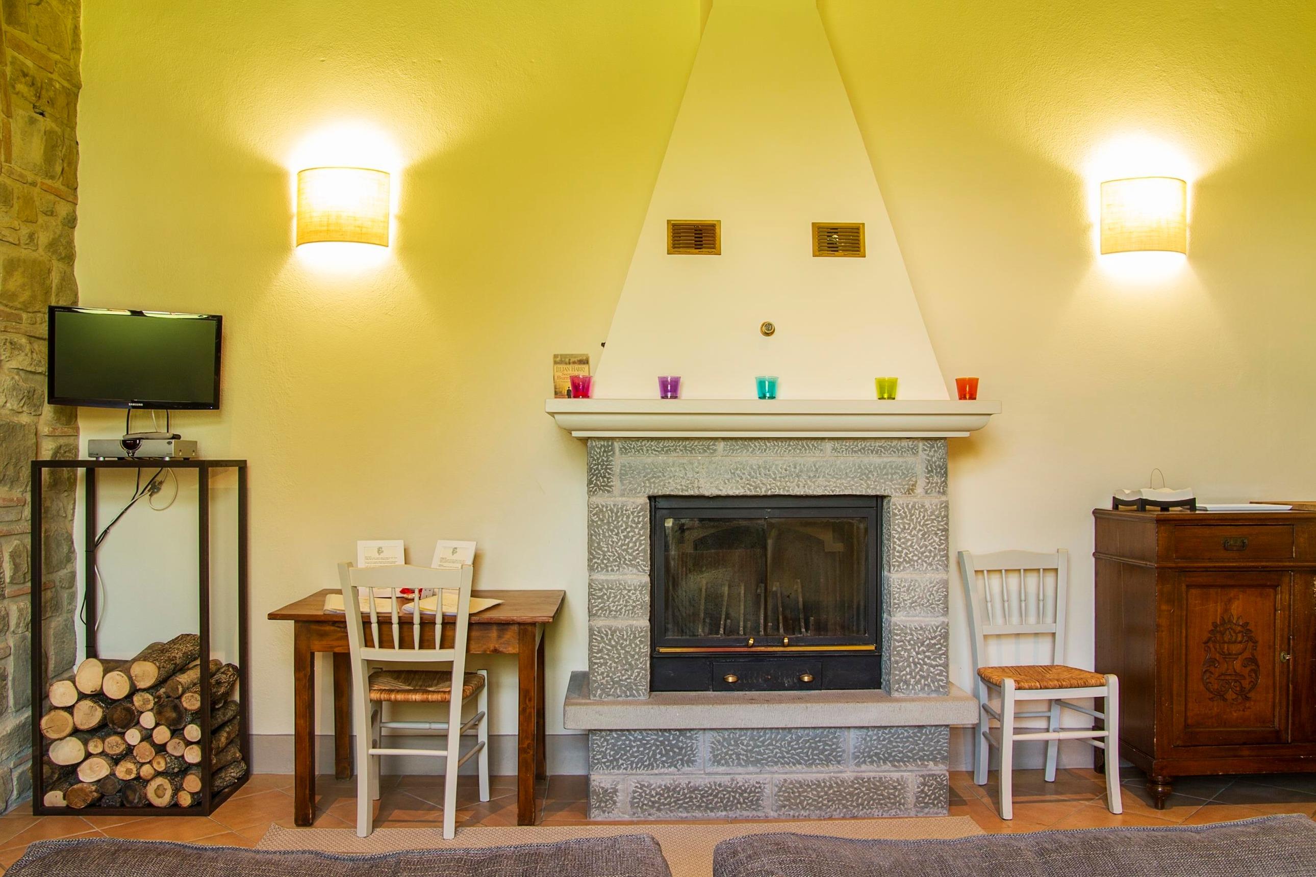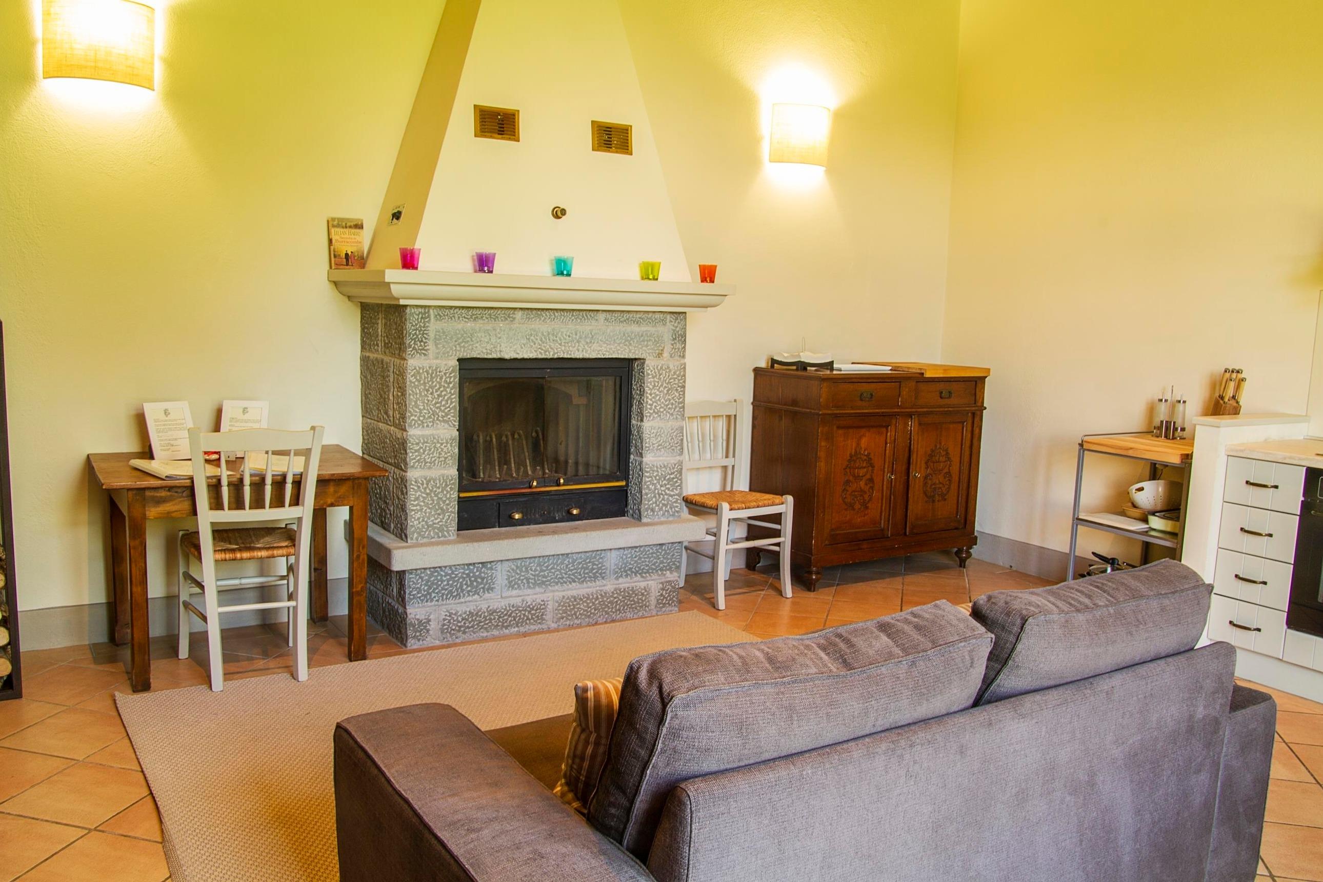 Die Orangerie degli Ulivi besteht aus einem Wohnbereich mit Sofa, Sat-TV und Kamin sowie einer voll ausgestatteten Küchenzeile und einem Esstisch.