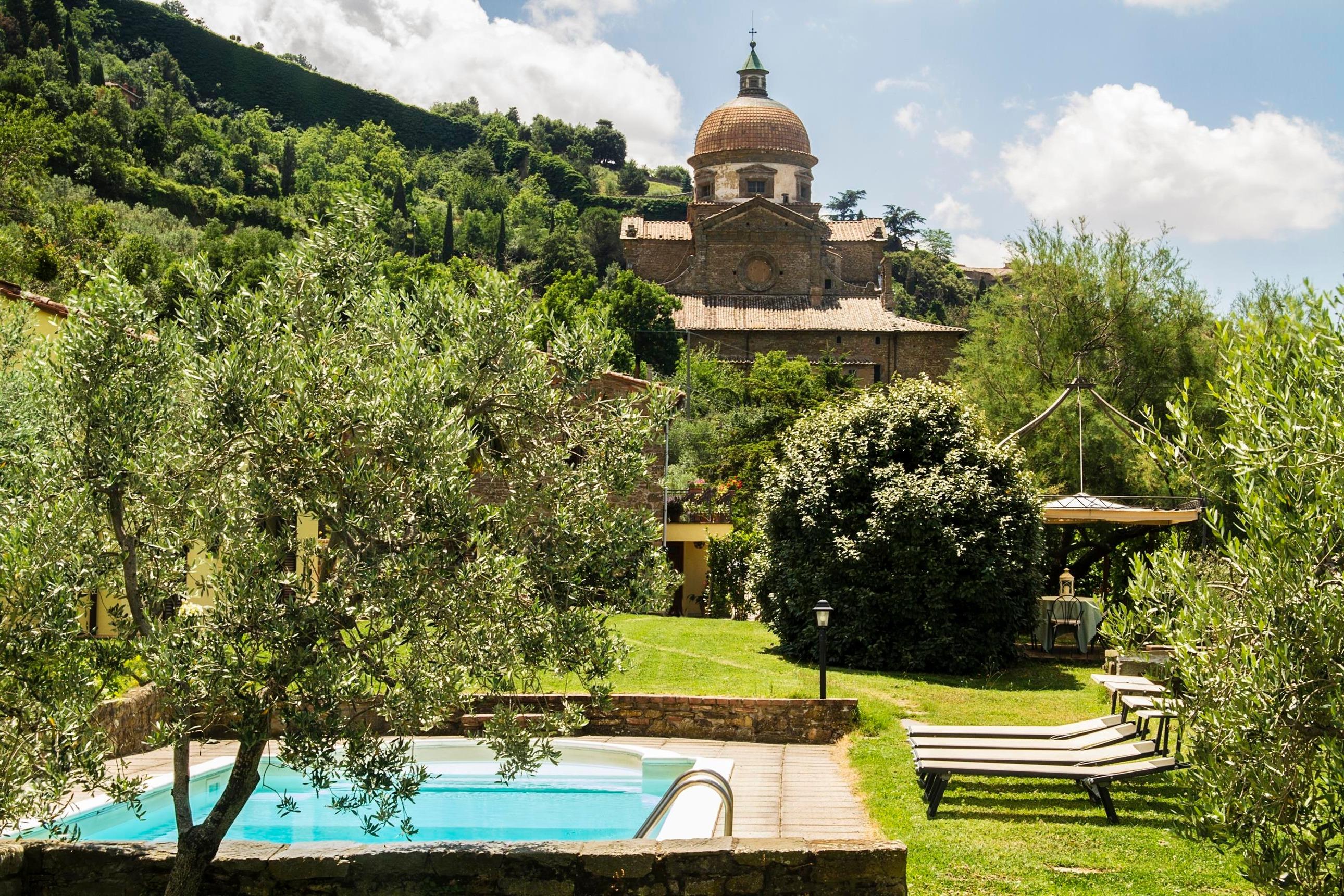 Eingebettet in das Herz der Toskana, nur wenige Schritte von der alten etruskischen Stadt Cortona (500 Meter), Die Orangerie degli Ulivi ist der ideale Ort, wo Sie eine unvergessliche Erfahrung leben können. Das Anwesen genießt einen der schönsten Ausblicke auf die Hügel von Cortona, dank seiner strategischen Lage blickt es über die ValdiChiana, Cortona, Sant'Egidio und die schöne Kirche Santa Maria Nuova, ein Meisterwerk der Architektur und Charme, in einer gyroskopischen Weise. Die Orangerie degli Ulivi liegt fernab vom Verkehrslärm in einem Szenario, in dem das Grün, die Olivenbäume und die typischen Terrassen dieses besonderen Hügelkegels einen Ort von seltener Schönheit und starker visueller Wirkung schaffen.