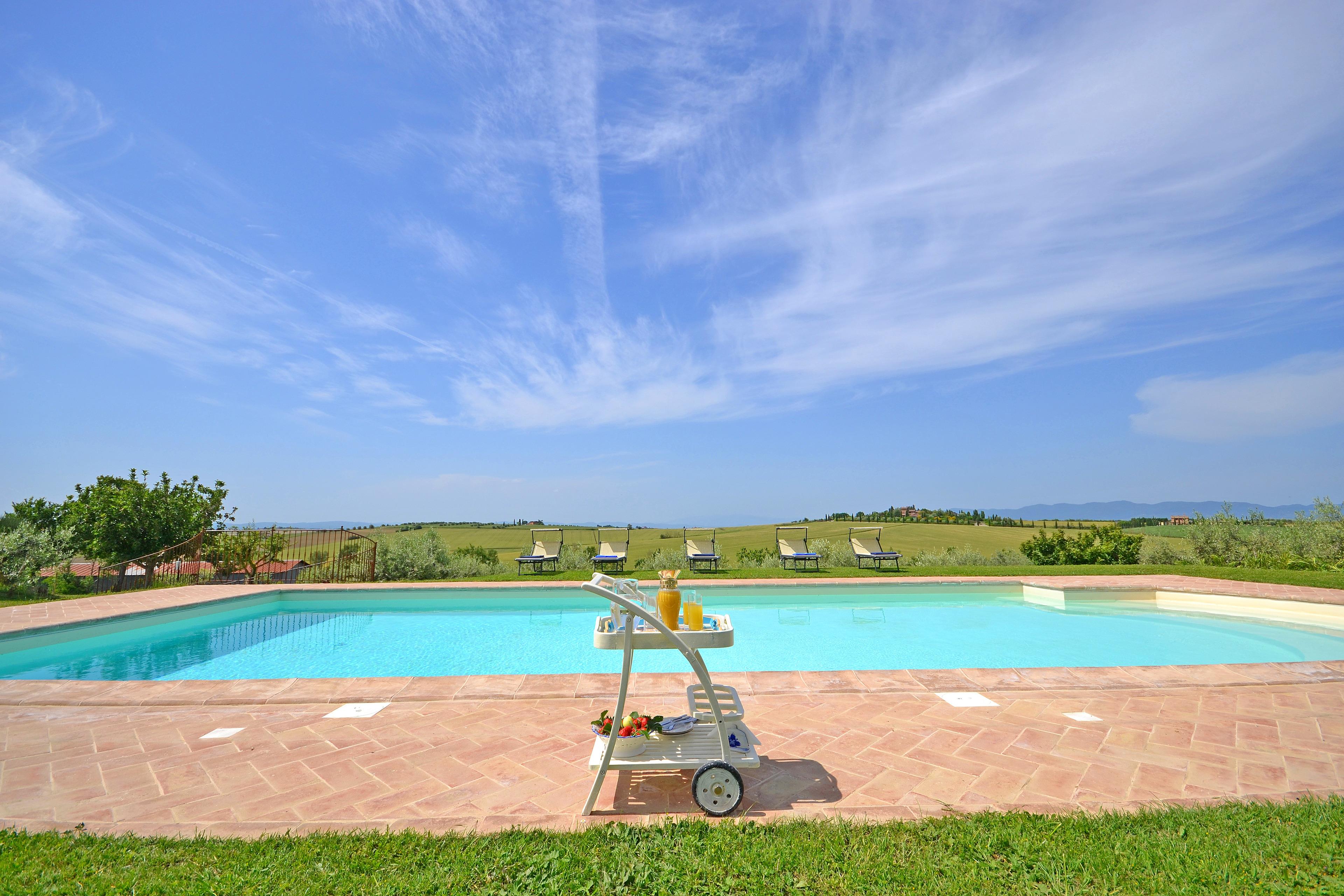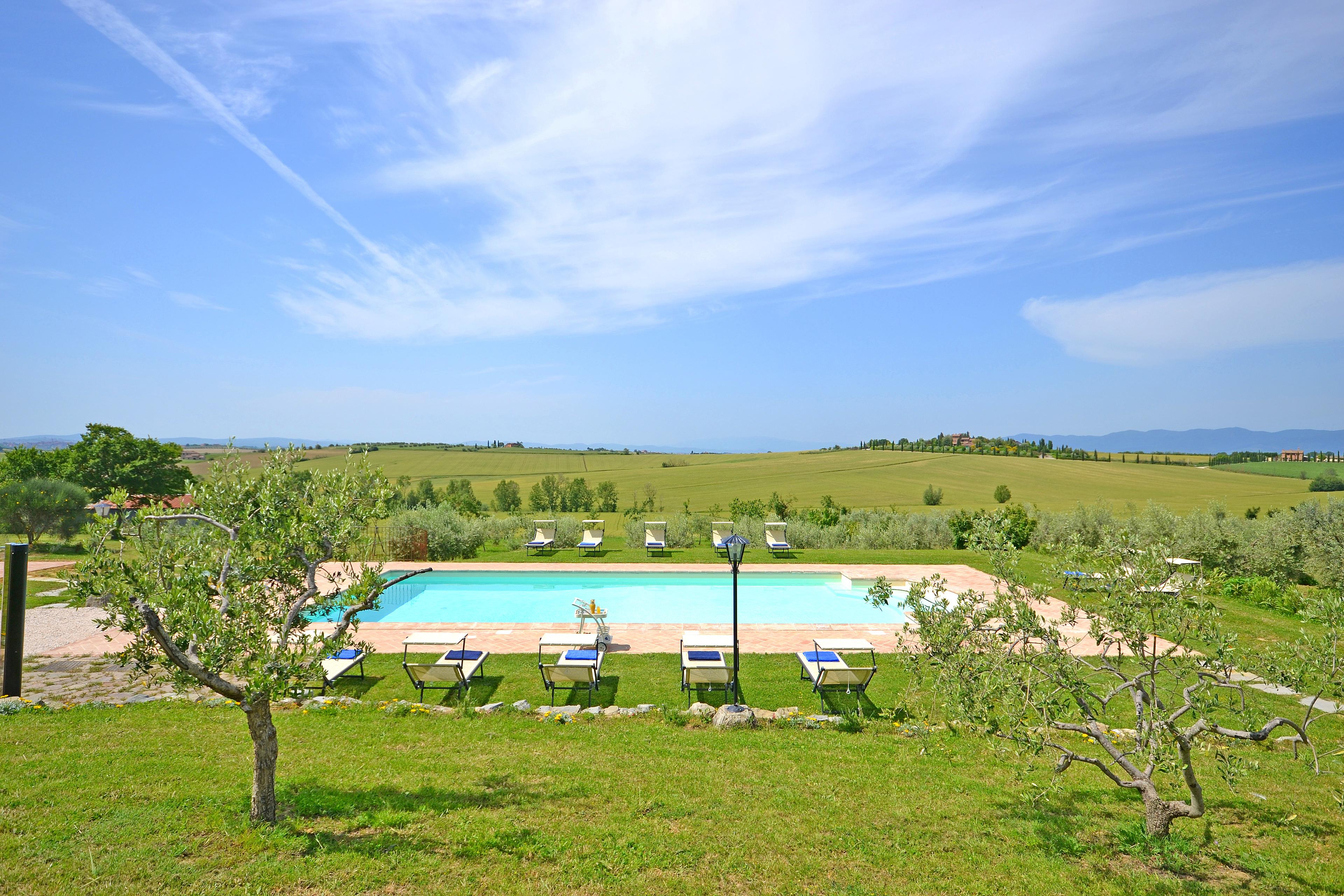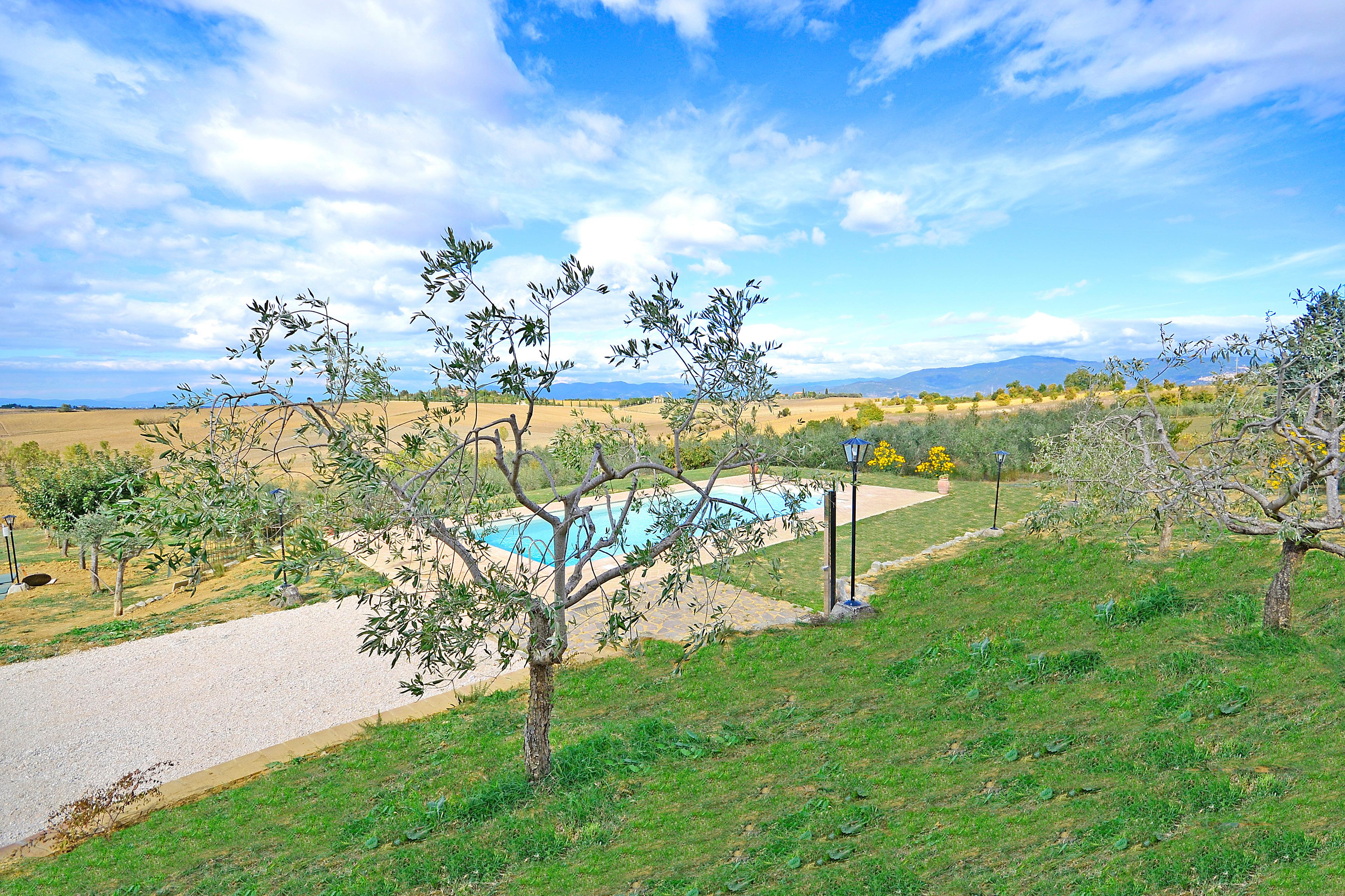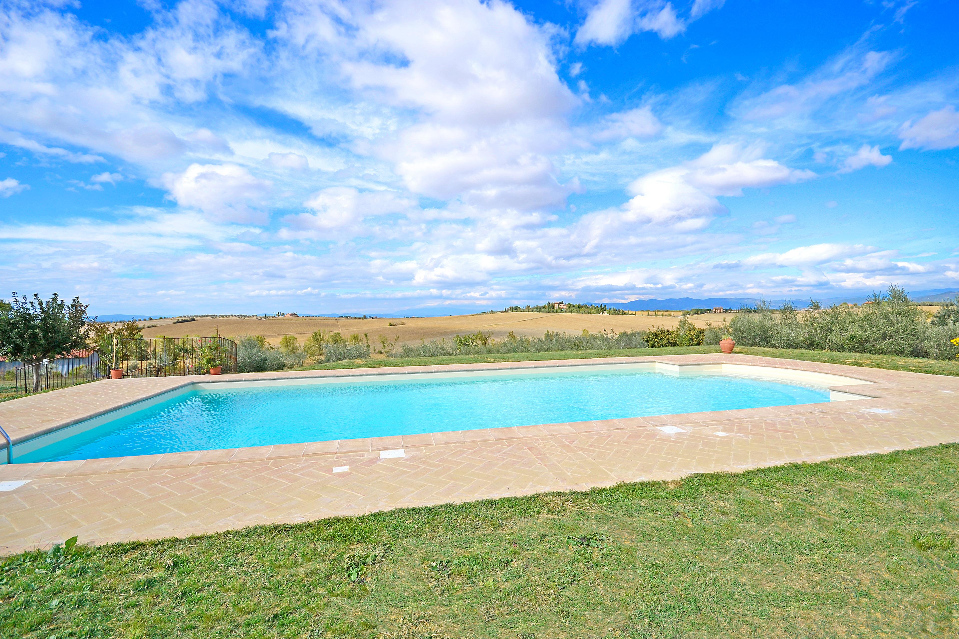 Die kürzlich renovierte Villa ist vollständig aus Stein gebaut und liegt in einem großen Garten voller Blumen und Pflanzen. Ihre Lage macht es zum idealen Ort, um die schönsten Städte der Toskana und Umbriens wie Cortona, Montepulciano, Montalcino, Perugia, Assisi, Pienza und viele weitere zu entdecken, alle in weniger als einer Autostunde. Der Garten ist privat und verfügt über ausreichend Parkplätze. Das schöne Schwimmbad (6 x 12 m, Mindesthöhe 1 m - Maximalhöhe 1,70 m, geöffnet von Mai bis September) befindet sich in Panoramalage und ist der Sonne gut ausgesetzt. Der Pool ist mit Massagedüsen ausgestattet und verfügt über Sonnenliegen, Stühle, Sonnenschirme und eine Solardusche. Vom Pool aus verliert sich der Blick auf die umliegende Landschaft, die Sie mit ihren Farben und Düften berauschen wird und unvergessliche Sonnenuntergänge verspricht.