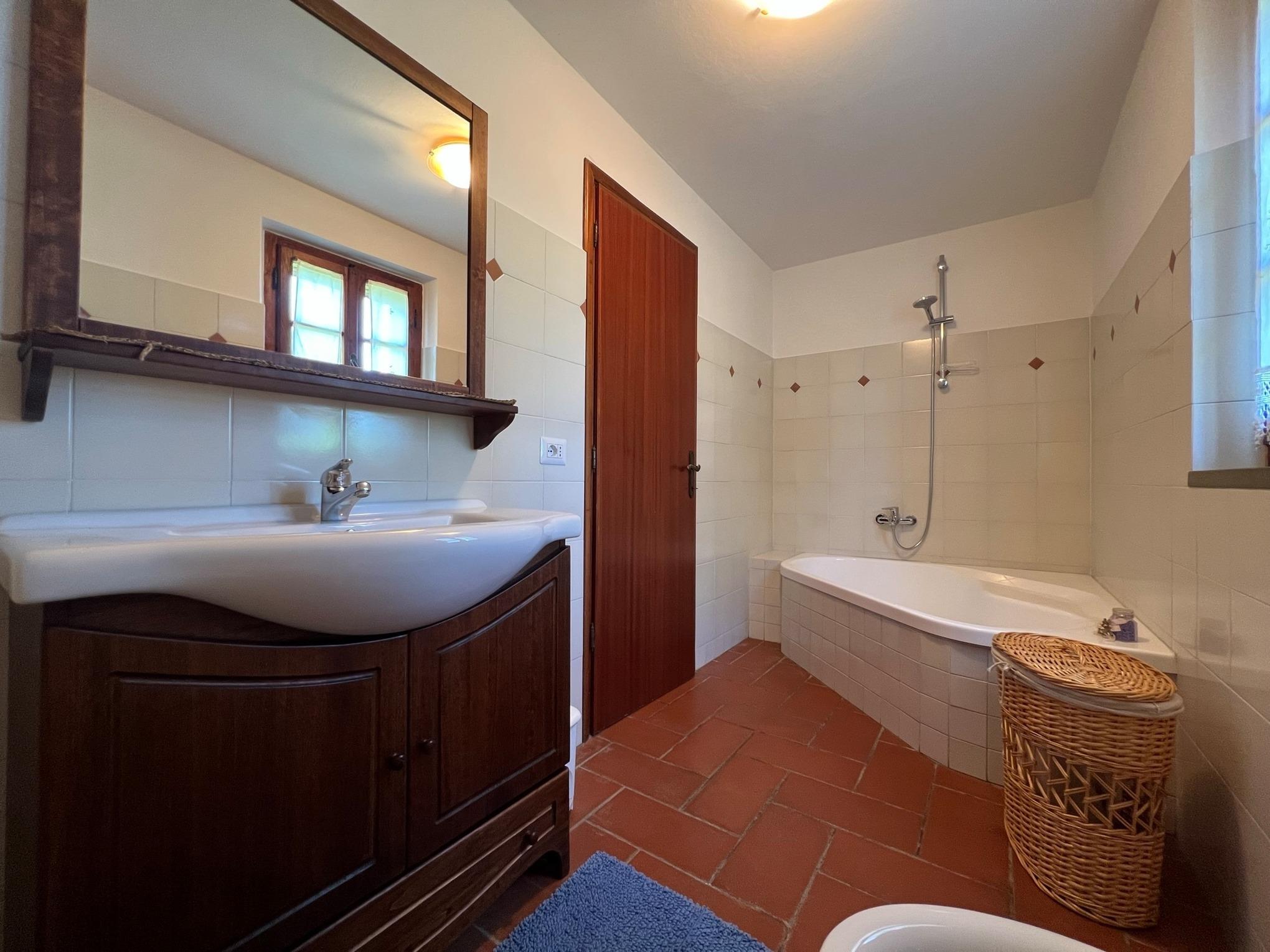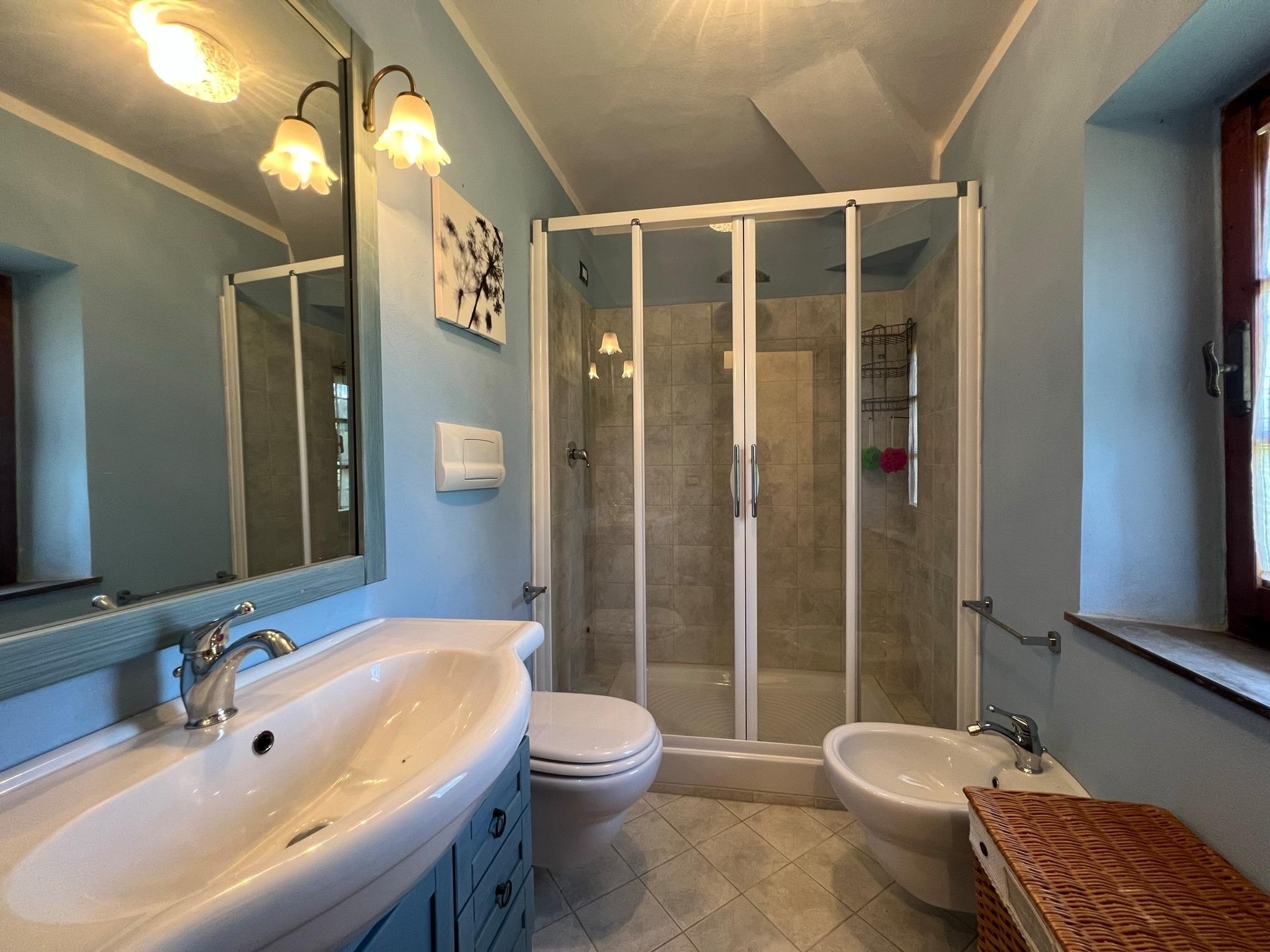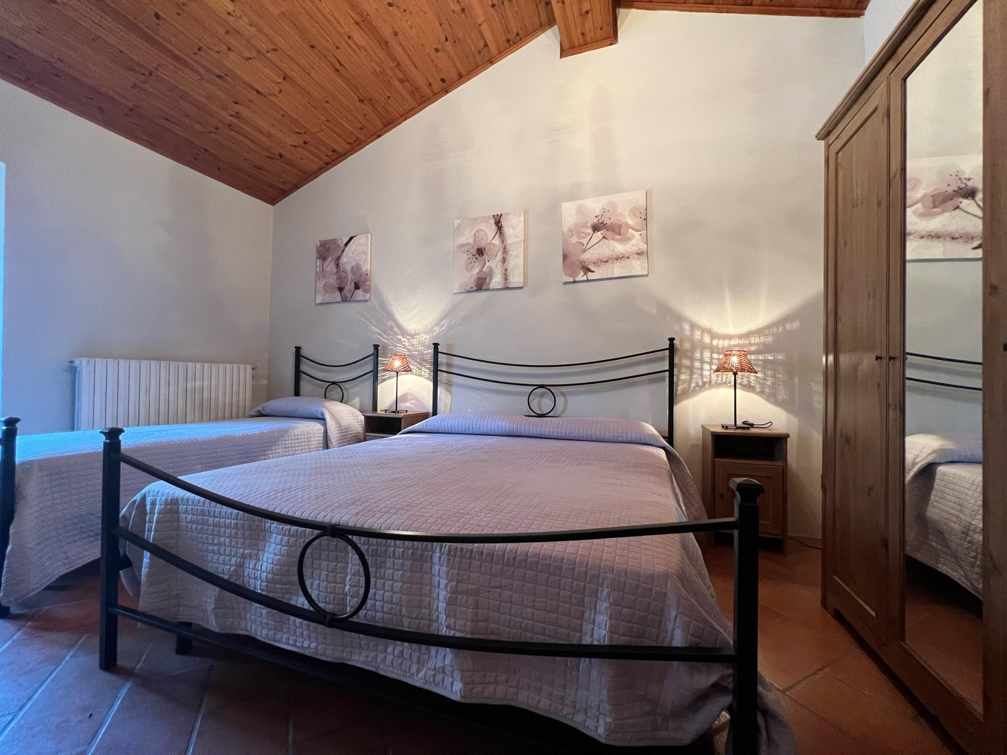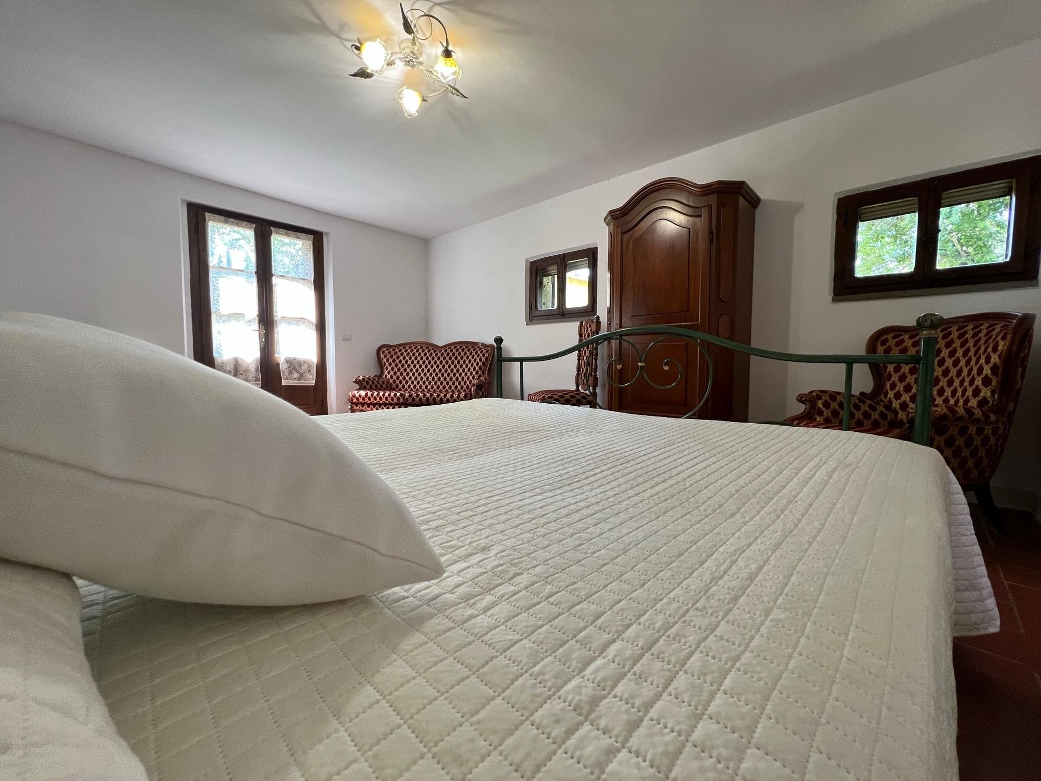 Die Villa Marconi kann bis zu 8 Personen beherbergen (3 Schlafzimmer + ein Schlafsofa). Es ist auf zwei Ebenen verbunden sowohl intern mit einer Wendeltreppe und auch durch eine externe Steintreppe.
