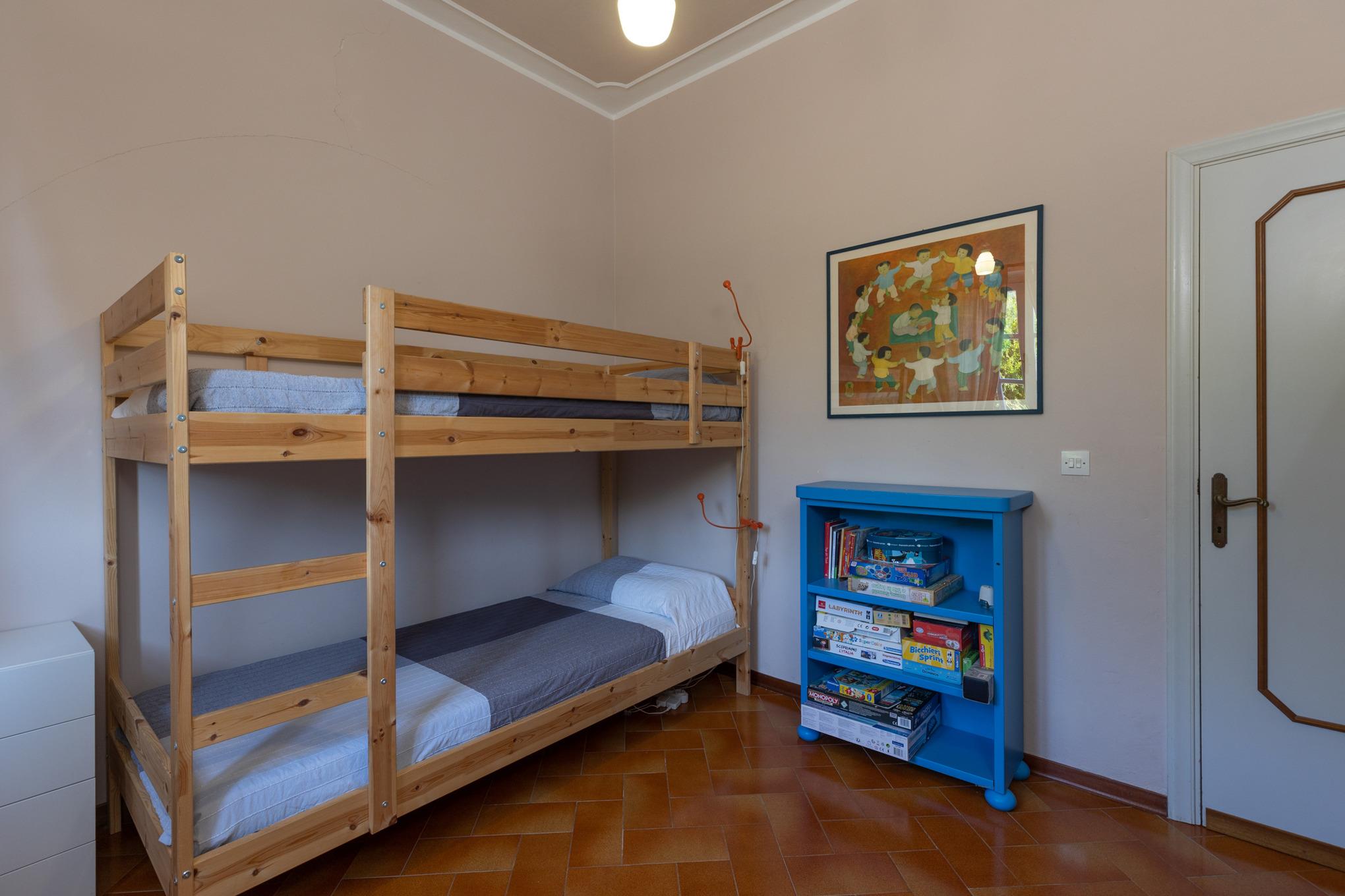 Im ersten Stock befinden sich die anderen drei Schlafzimmer: ein Doppelzimmer, ein Zweibettzimmer (das bei Bedarf in ein Doppelbett umgewandelt werden kann) und ein weiteres Doppelzimmer, das mit einem schönen Balkon ausgestattet ist.