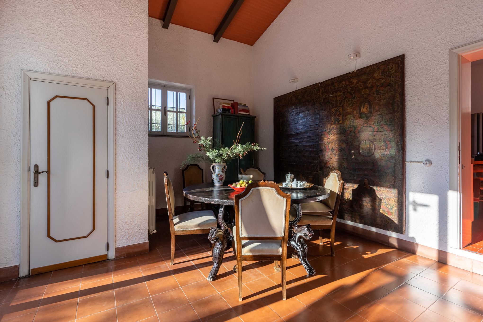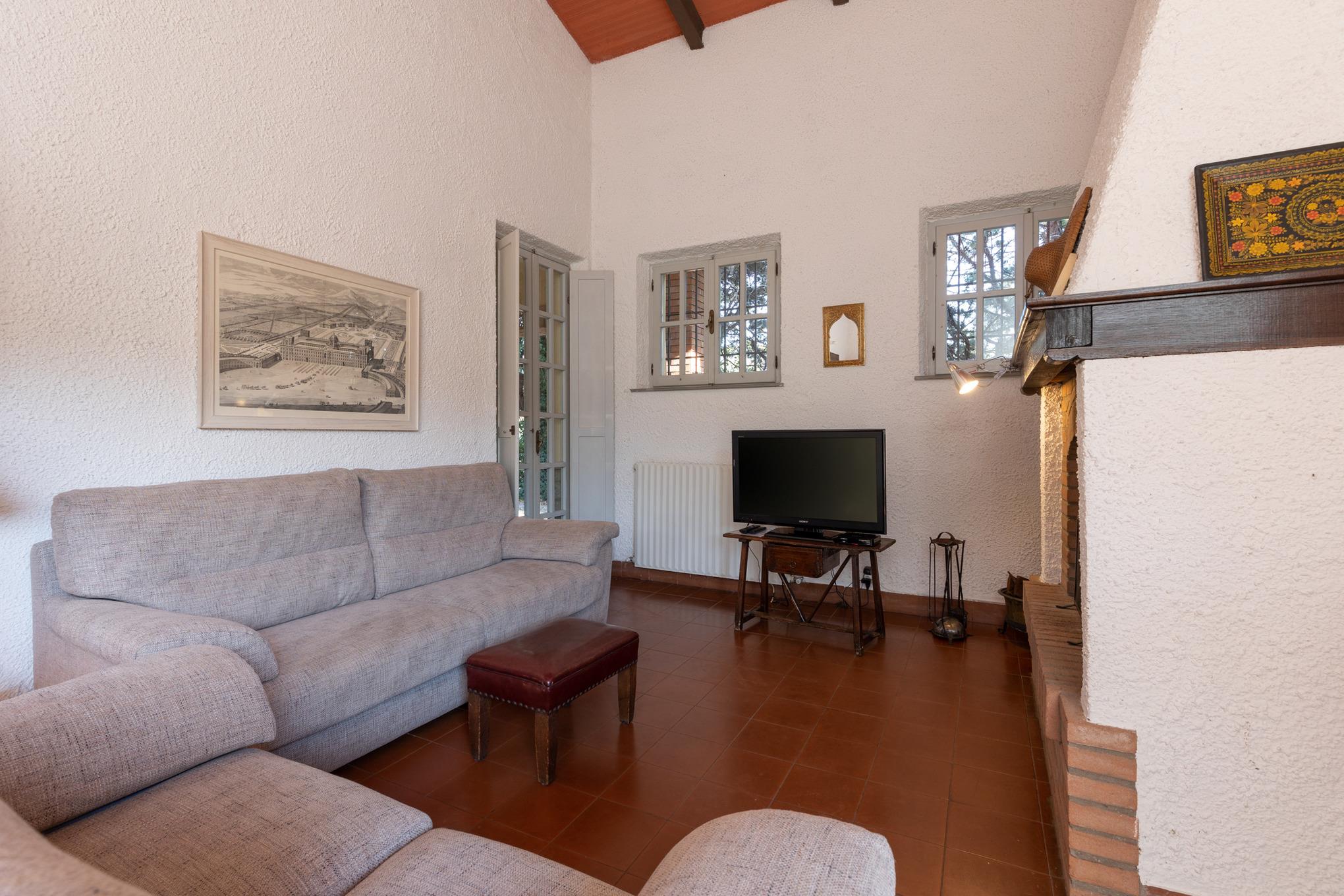 Die Villa entwickelt sich auf zwei Etagen durch eine schöne Holztreppe verbunden. Im Erdgeschoss haben wir den Wohnbereich, bestehend aus einem geräumigen Wohnzimmer mit Kamin und Sat-TV, komplett mit Esstisch und schöne Französisch Türen mit direktem Zugang zum Garten der Villa. Das Wohnzimmer kommuniziert mit der voll ausgestatteten Küche und komplett mit Esstisch sowie eine praktische Speisekammer. Die Küche hat auch einen direkten Zugang zum Garten und Pool.