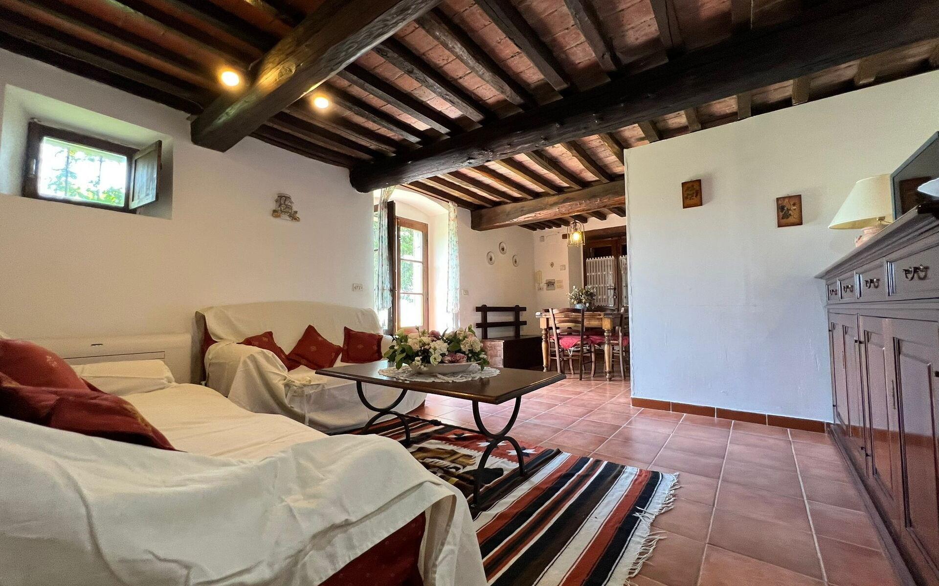 Das Anwesen wurde vor kurzem restauriert und zeichnet sich durch den typisch toskanischen Stil mit Holzbalken Decken und Fliesenböden, ist es der ideale Ort, um einen schönen Urlaub in der Ruhe der toskanischen Landschaft zu verbringen.