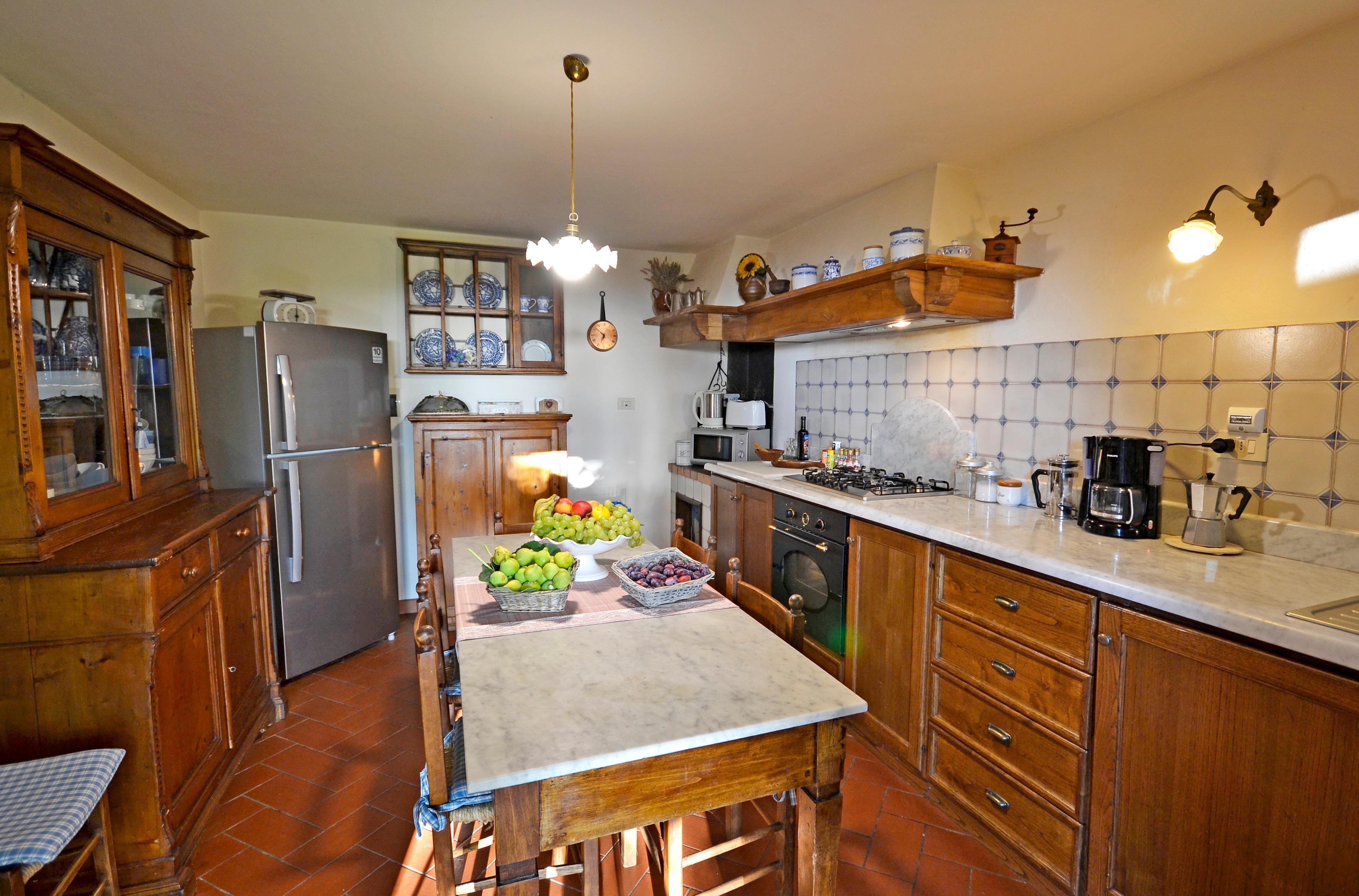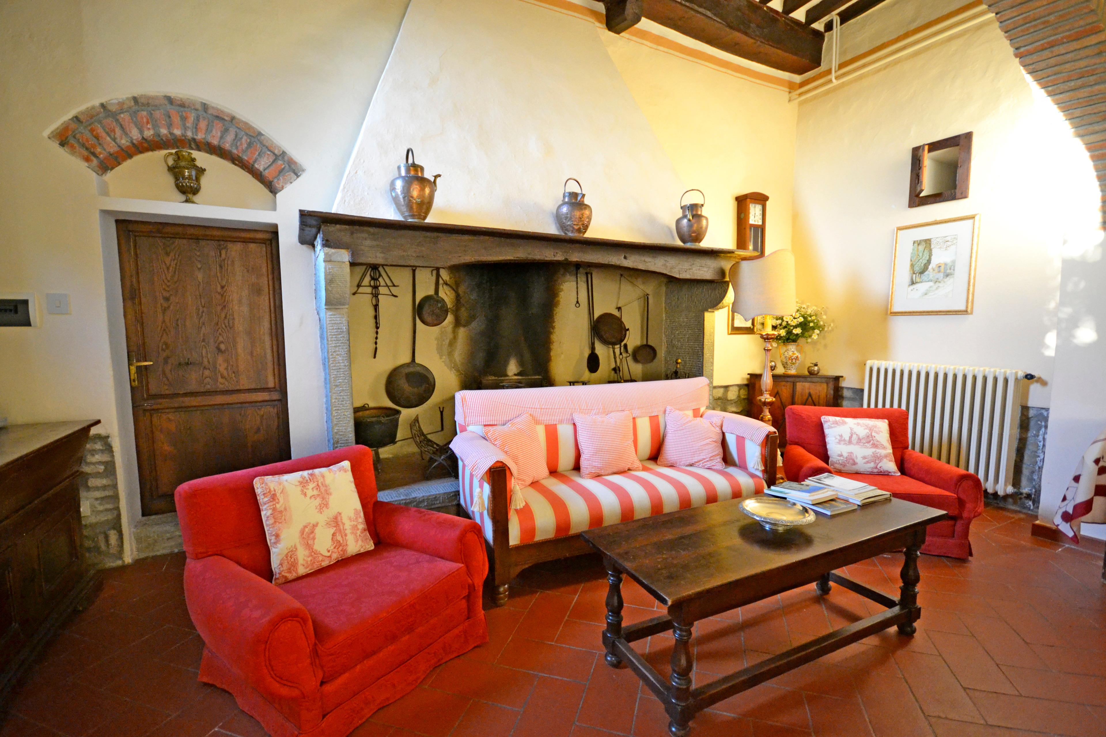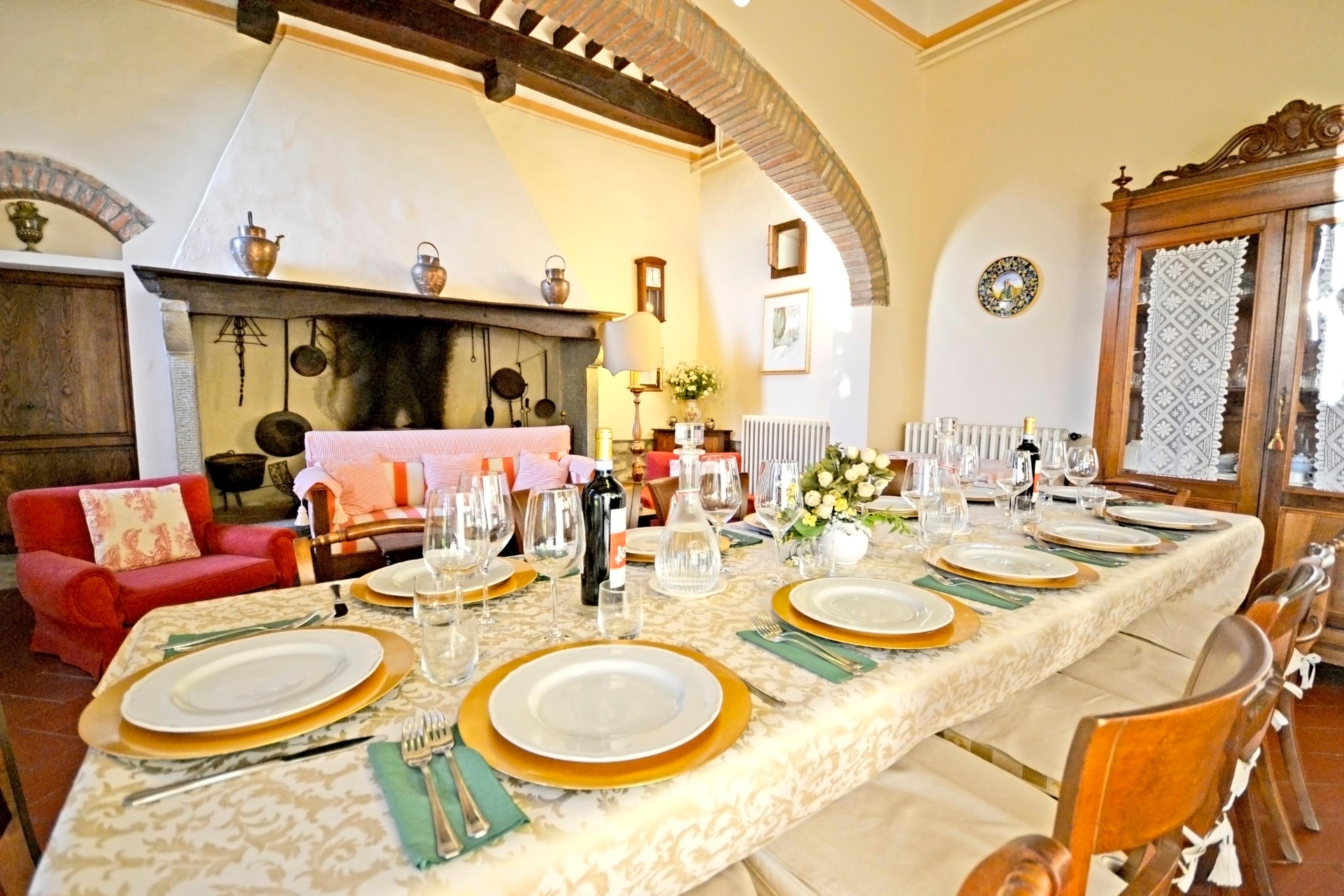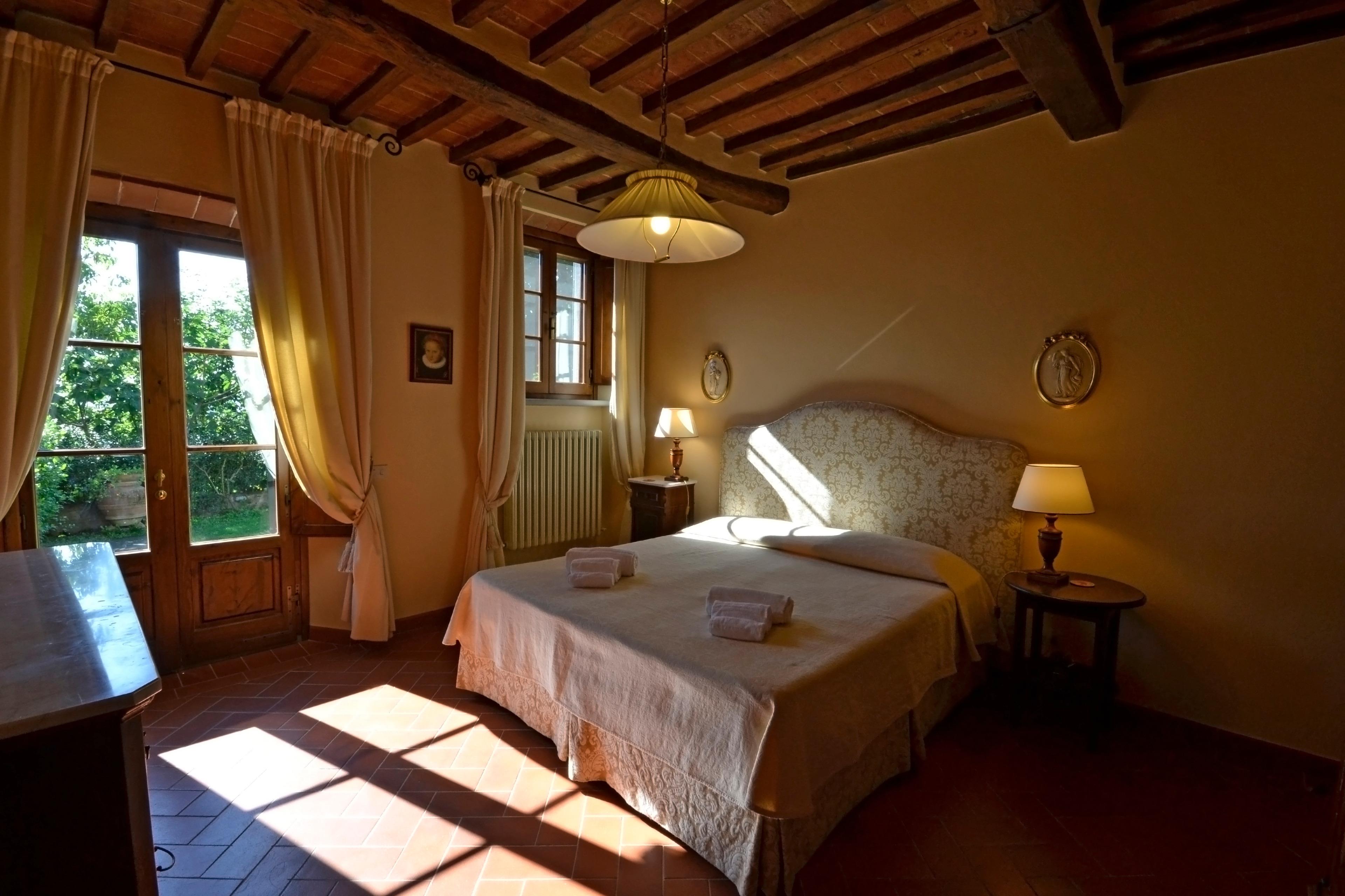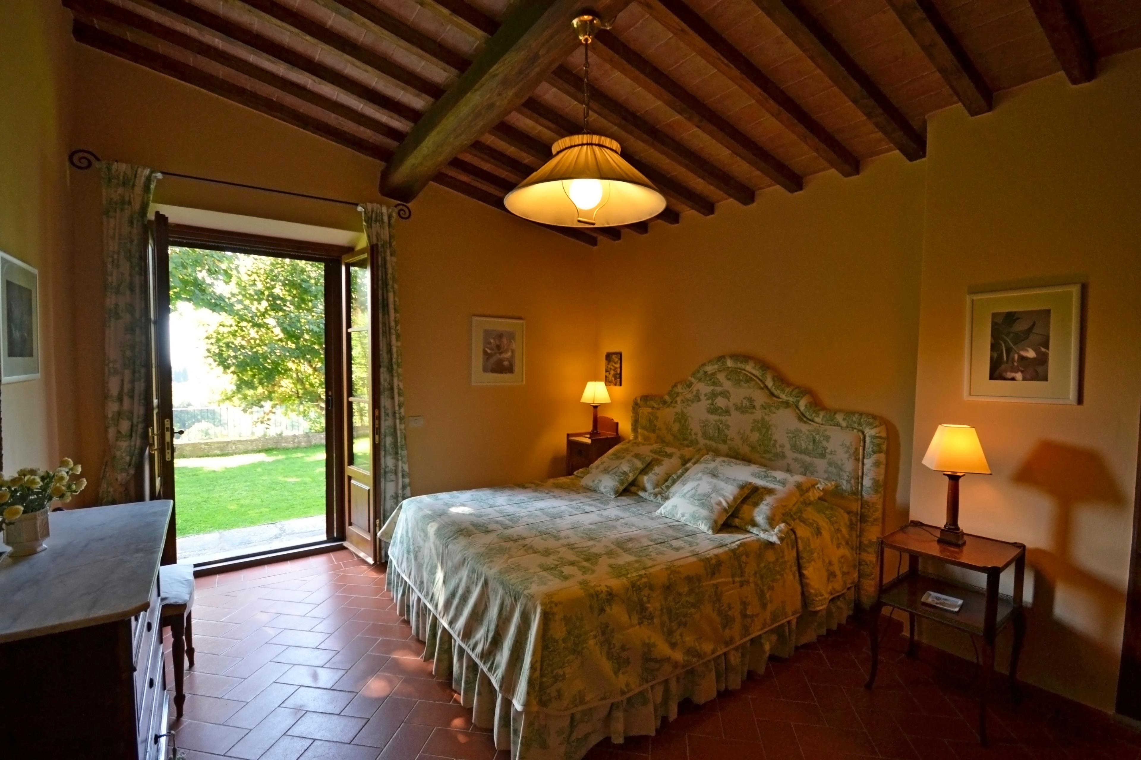 Die Innenräume der Villa Santa Maria sind mit antiken Möbeln ausgestattet, die reich an Geschichte und Schönheit sind. Terrakotta-Böden und Decken mit freiliegenden Holzbalken sind der Rahmen für eine traditionelle und elegante toskanische Stil.