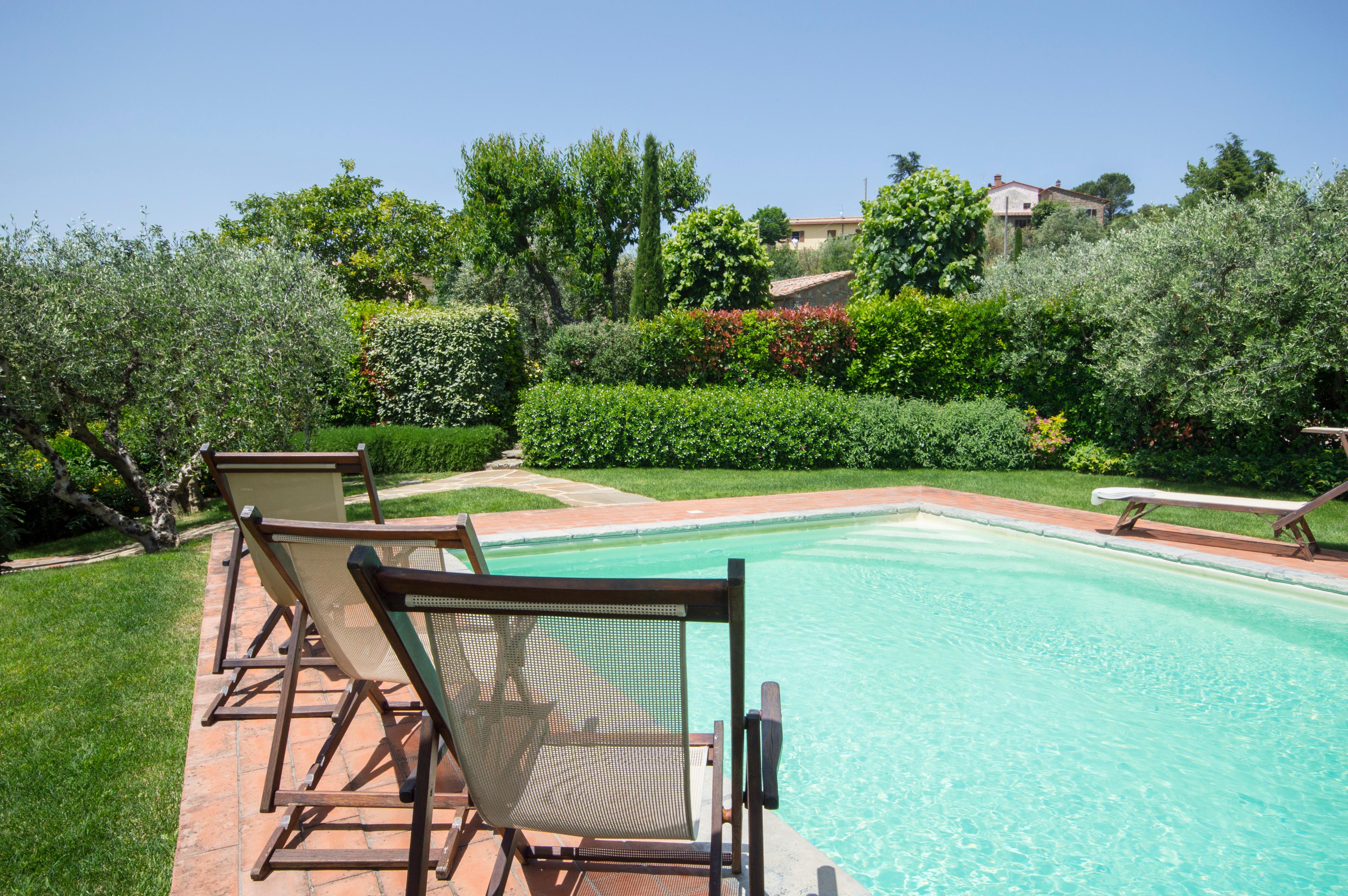 Das Schwimmbad (10 x 5 Meter, Mindesthöhe 1,20 Meter - Höchsthöhe 1,80 Meter, eingezäunt und durch ein Eingangstor geschützt, geöffnet vom 30. April bis 30. September) ist den ganzen Tag über der Sonne ausgesetzt und verfügt über Liegestühle, Sonnenschirme und eine Außendusche. Vom Schwimmbad aus hat man einen herrlichen Blick auf die Stadt Cortona und die umliegende Landschaft.