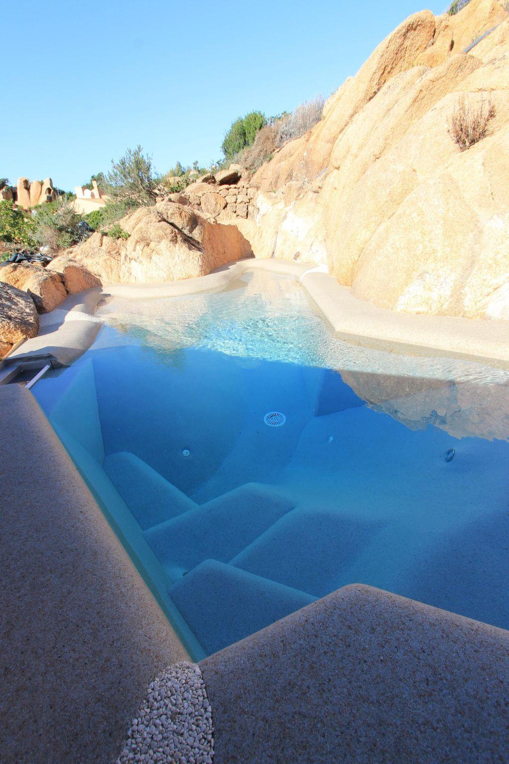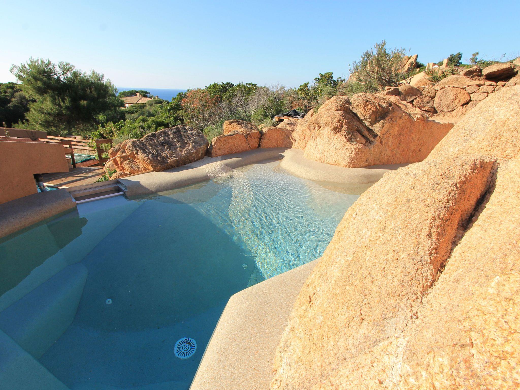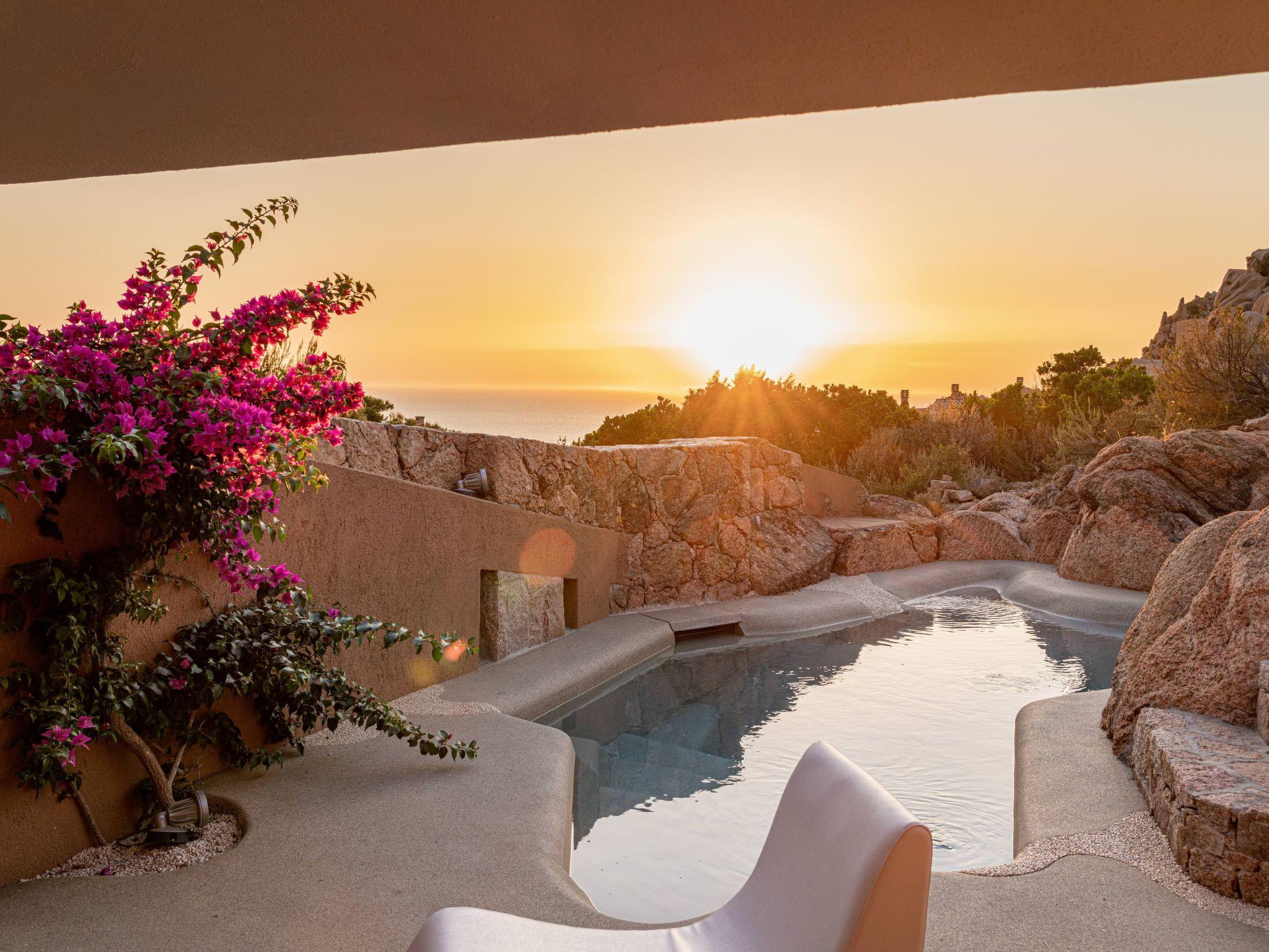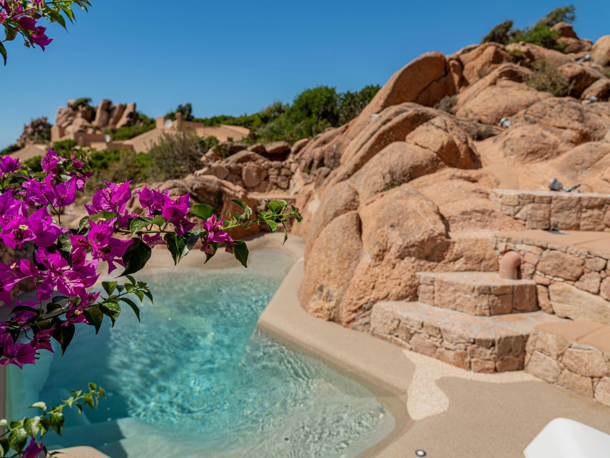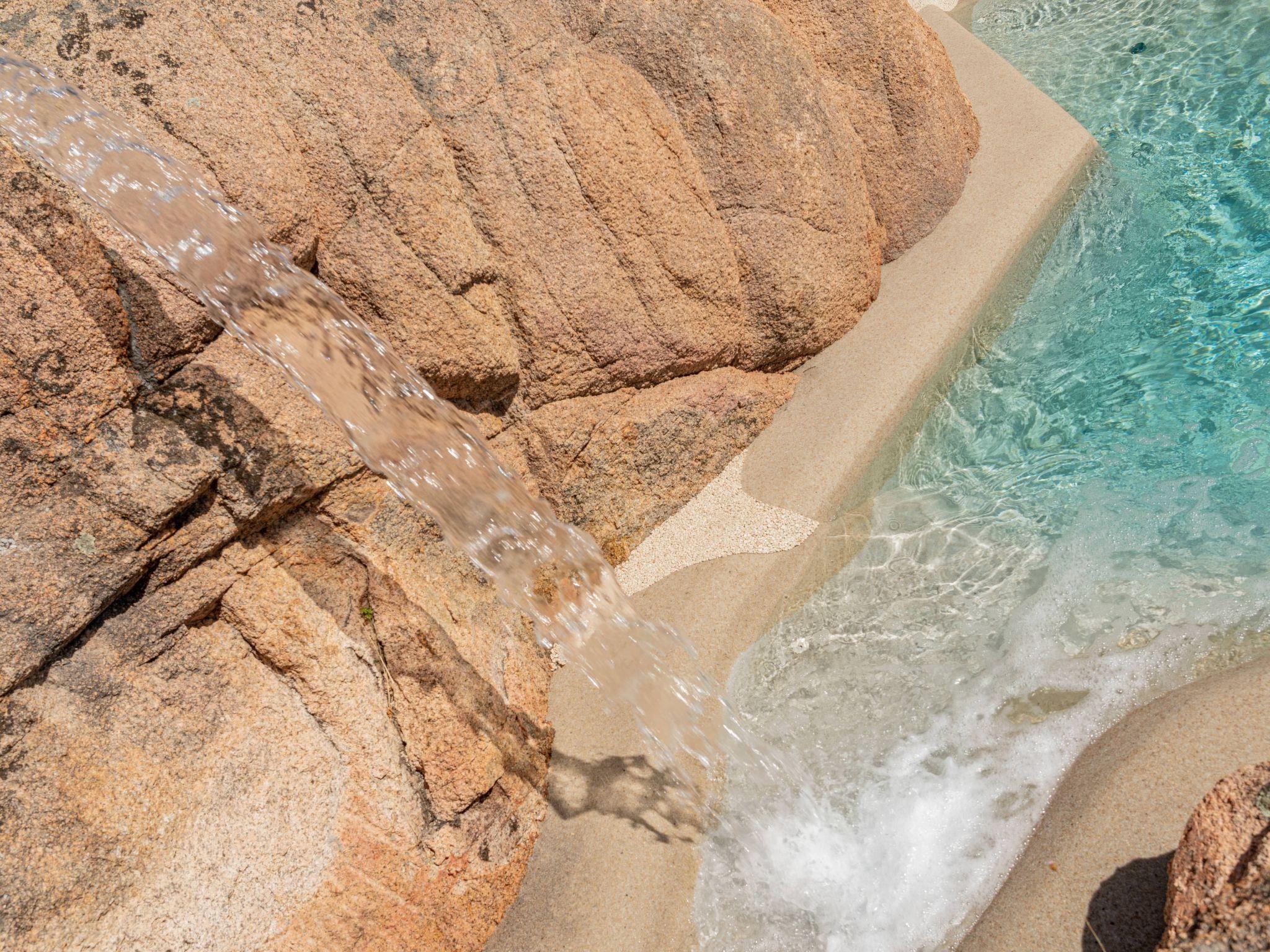 The Rosa 9 suite with sea view is a real treat for lovers of relaxation. It is part of a group of suites, all with a private swimming pool 400 metres from the sea within walking distance. It has a unique outdoor area with a heated hydro-massage pool (27 degrees) made of natural sand set among the rocks and a hydro-massage waterfall. The feeling is that of a private natural cove where everything is studied down to the smallest detail. Inside, the suite has a living area with a 50-inch TV set and an equipped open kitchen, a double bedroom and a bathroom with a shower area made of natural stone. Finished to a high standard and equipped with all the comforts including air conditioning, wi fi internet connection, outdoor relaxation bed barbecue and outdoor shower with hot water, it is designed to give guests an unforgettable experience. The perfect choice for a romantic getaway immersed in nature.
