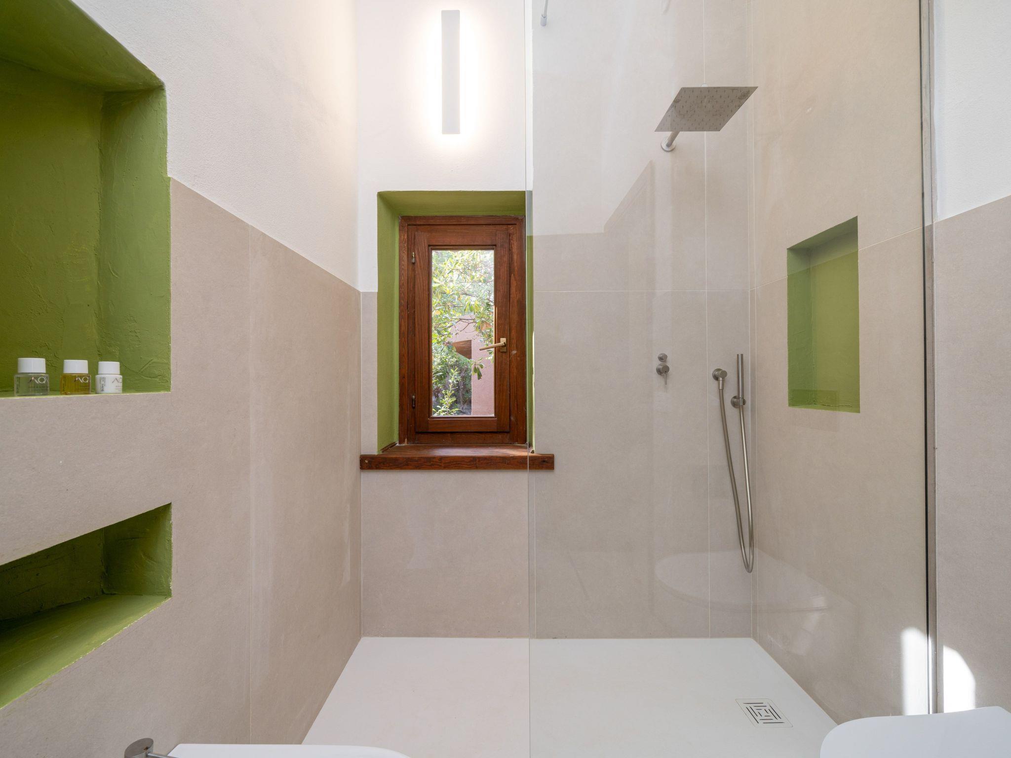 The holiday house is just 900 metres from the sea, nestled into the lush green landscape of the Costa Paradiso.