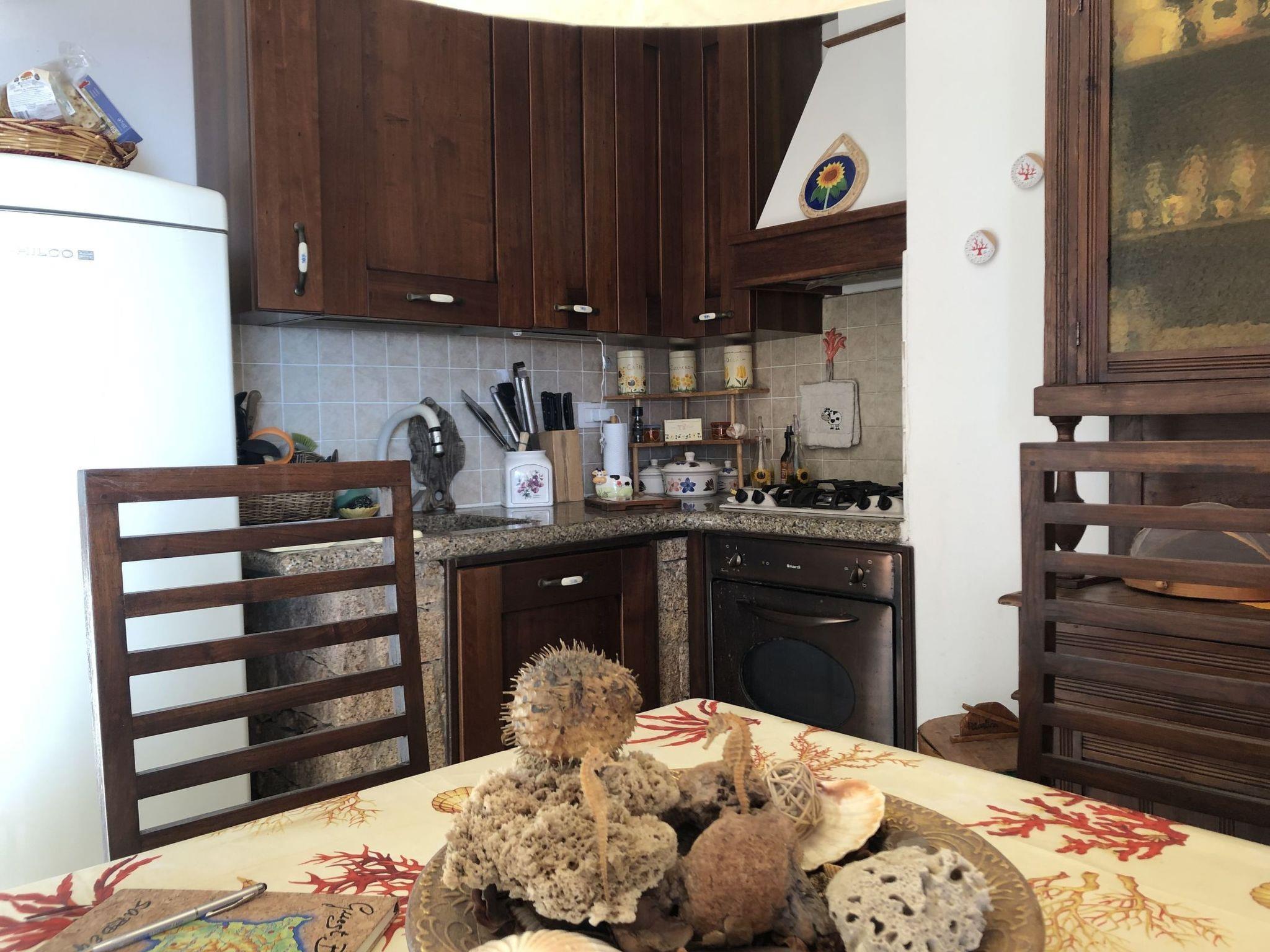 The living room, which is nice and cosy, opens onto a small but functional masonry kitchenette complete with accessories, dishes, electrical appliances (fridge and oven). A beautiful wooden dining table and a comfortable sofa complete the furnishings.