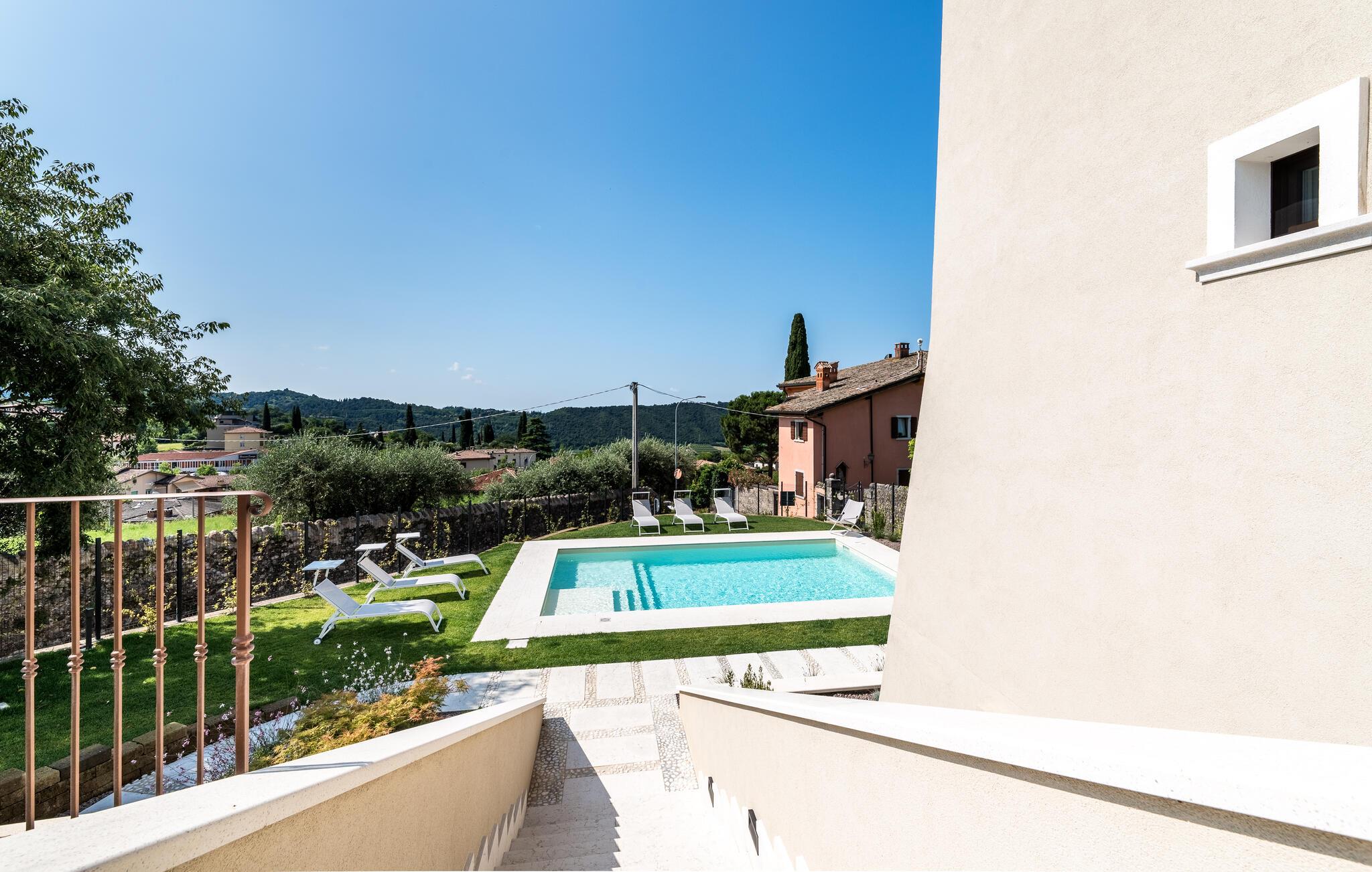 Mellem søer og bjerge ligger Costermano sul Garda, hvor I finder dette velindrettede feriehus. På husets tre etager får I masser af kvadratmeter og godt med udstyr til en ferie med den udvidede familie eller en større venneflok. Efter dagens aktiviteter kan I vende herhjem og hvile benene eller dyppe jer i poolen, lige så ofte, I vil.