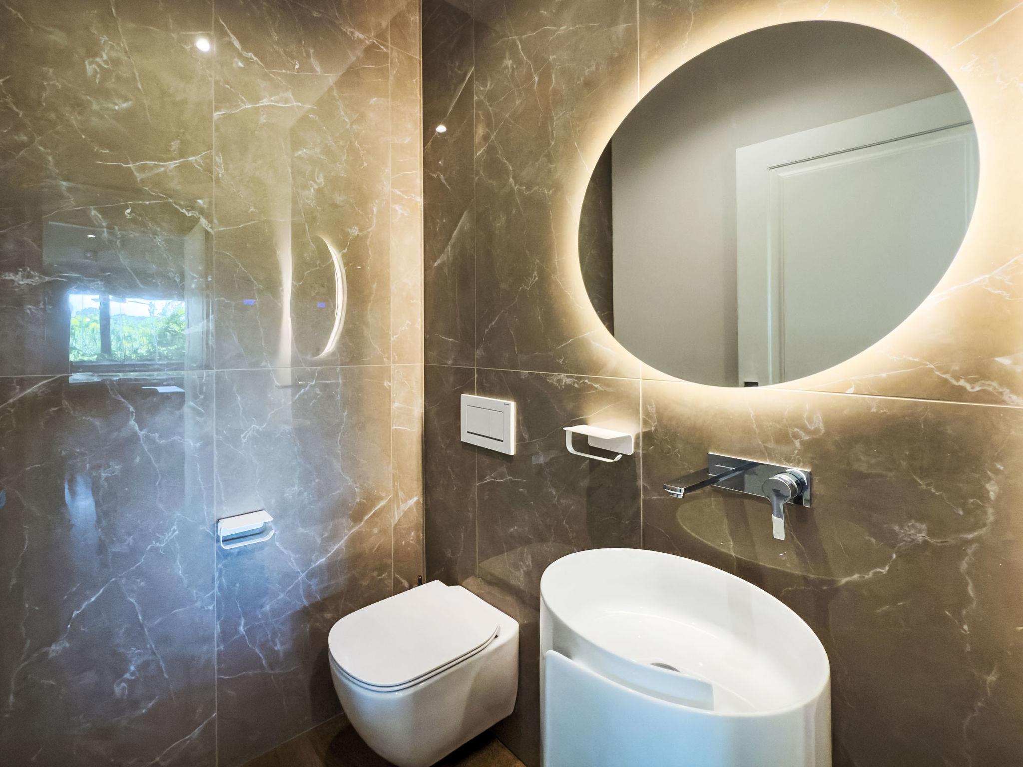 "Villa MaLia Private Pool", 4-room villa 161 m2 on 2 levels, on the ground floor. Spacious and bright, very modern and luxurious furnishings: living/dining room with dining table and TV (flat screen), electric heater. Exit to the garden, to the veranda, to the swimming pool. Luggage room with hand-basin. Kitchen (oven, dishwasher, 4 induction hot plates, toaster, kettle, freezer, electric coffee machine, Capsules for coffee machine (Nespresso + Filtri)). Bathroom. Electric heating, air-conditioning, floor heating. Upper floor: 1 double bedroom with shower/bidet/WC. Exit to the balcony. 1 double bedroom. Exit to the balcony. 1 room with 1 bed, 1 pull-out bed and TV. Shower/bidet/WC. Air-conditioning, floor heating. Wooden floors. Large balcony, large terrace, large patio, garden. Terrace furniture, barbecue, deck chairs, conservatory, sitting area. Panoramic view of the garden, the countryside and golf course. Facilities: washing machine, iron, mosquito net, baby cot for up to 2 year olds, hair dryer. Internet (WiFi, free). Garage on the property (2 cars). Please note: non-smokers only. Private entrance, smoke alarm, fire extinguisher. IT023030B467EAQSED