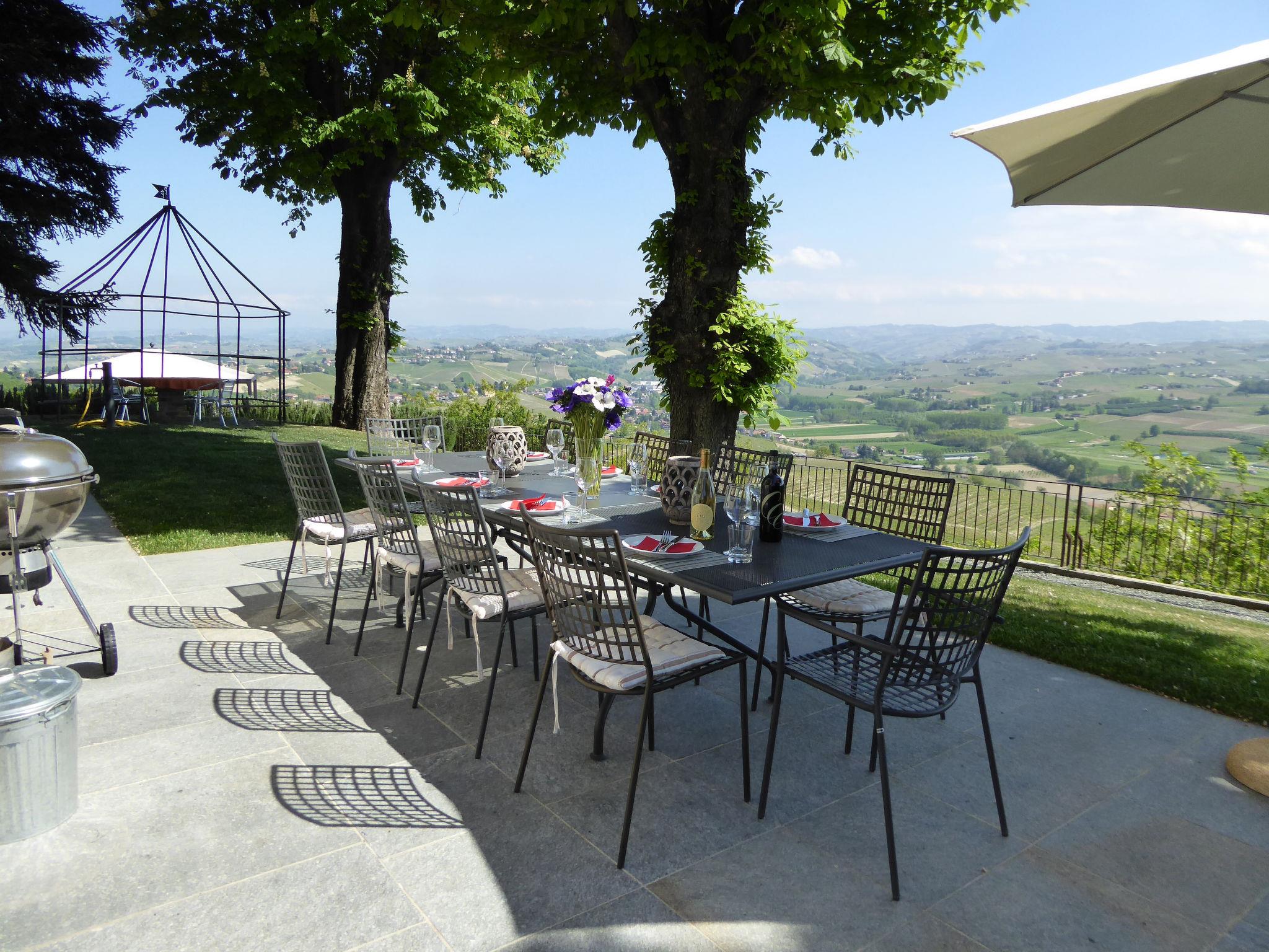 Very comfortable manor house "Villa Loreto", detached from the 19th century, surrounded by fields and vineyards. 2 km from the centre of Costigliole d'Asti, on the outskirts, 15 km from the centre of Asti, 15 km from the centre of Alba, in a sunny, elevated position on top of a hill, 100 km from the sea. Private: property 5'000 m2 (fenced), garden with lawn and trees, meadow, orchard, swimming pool (10 x 4 m, depth 140 cm, seasonal availability: 28.Mar. - 31.Oct.) with salt-electrolysis pool-cleaning system. Outdoor shower, pergola, terrace, garden furniture, pool maintenance by the owner/gardener. Parking at the house on the premises. Supermarket 2 km, bus stop 6.5 km, railway station "Asti" 15 km. Golf course (9 hole) 11 km. Please note: car recommended. The owner does not accept any youth groups.