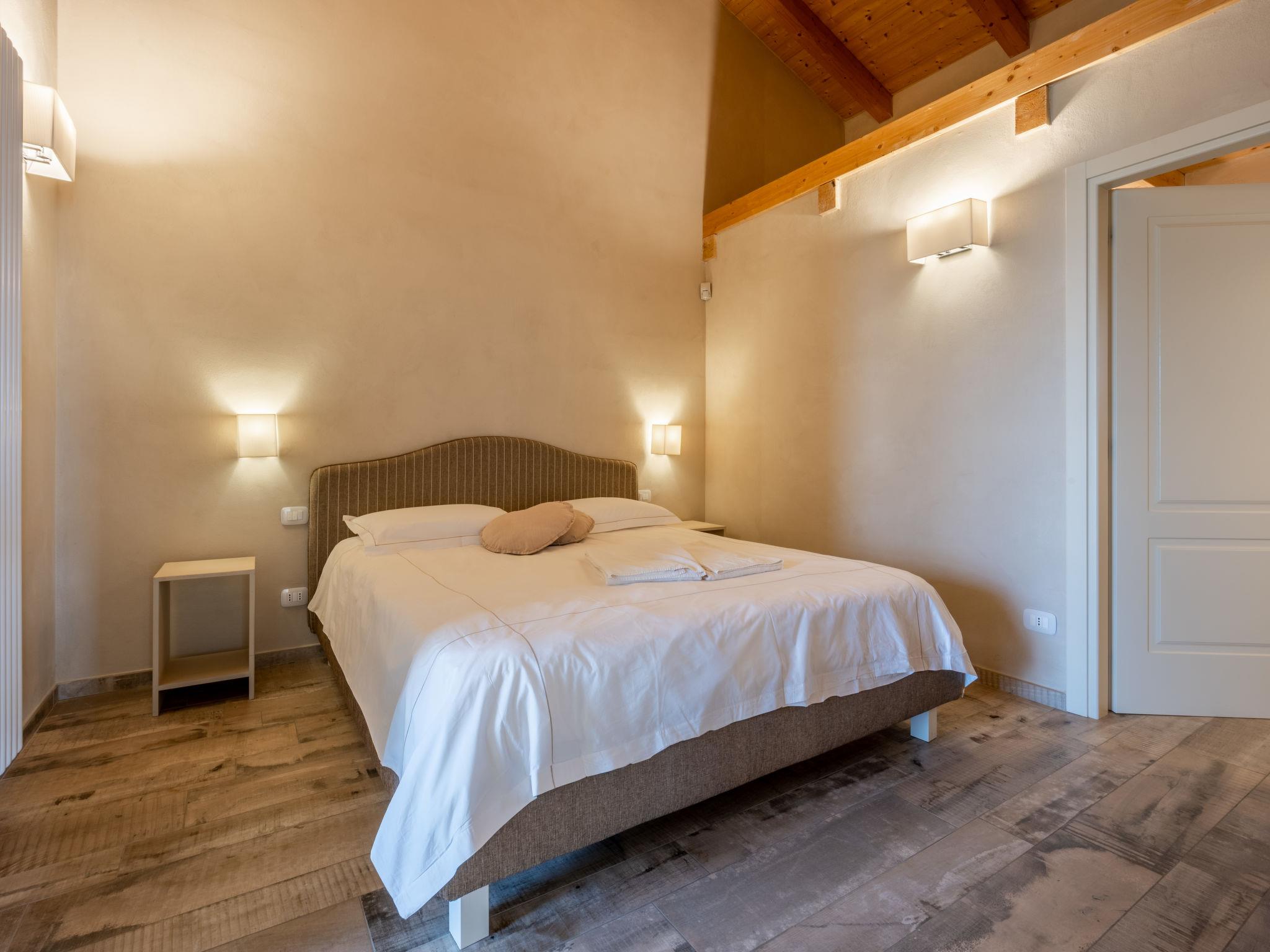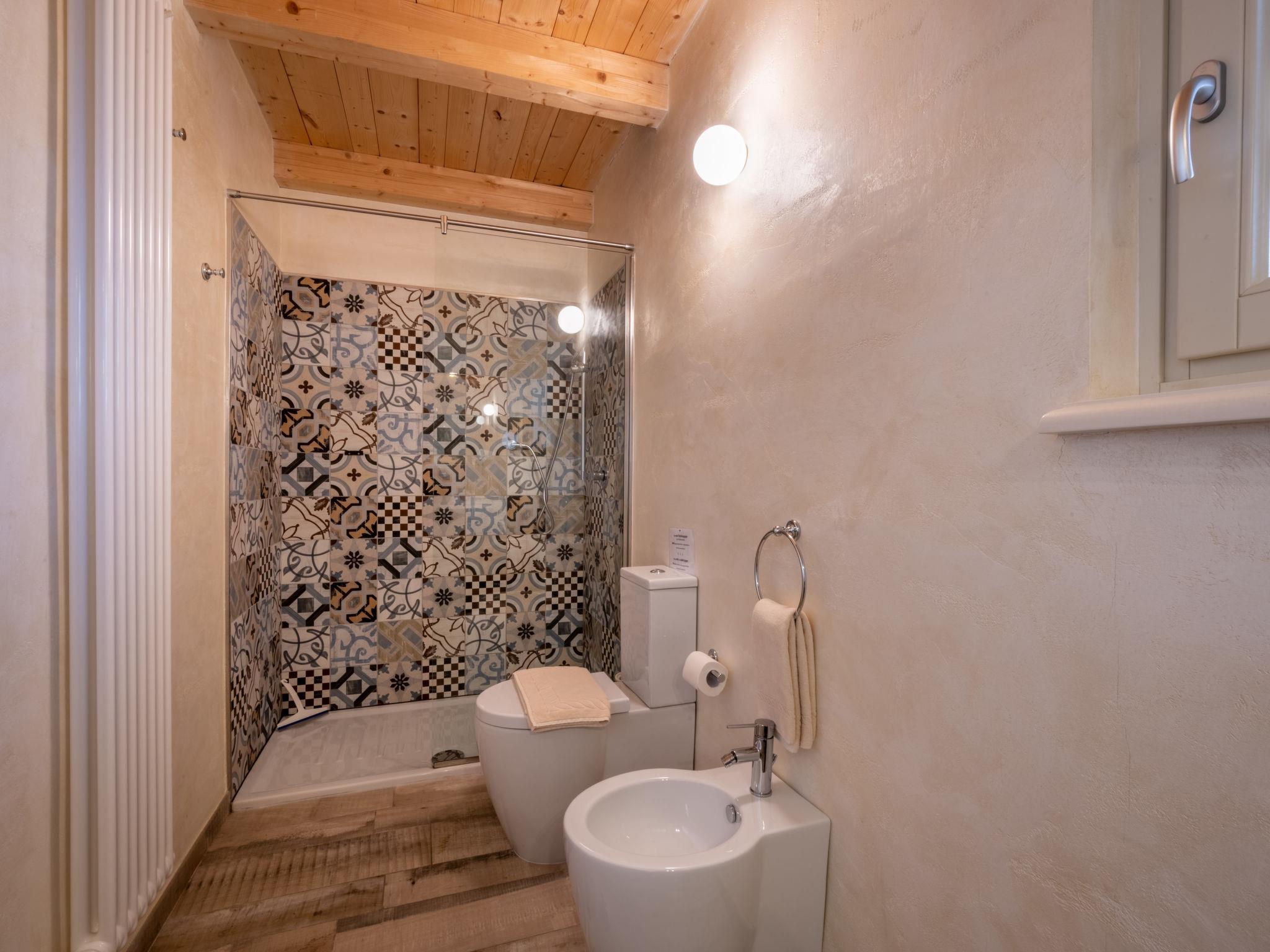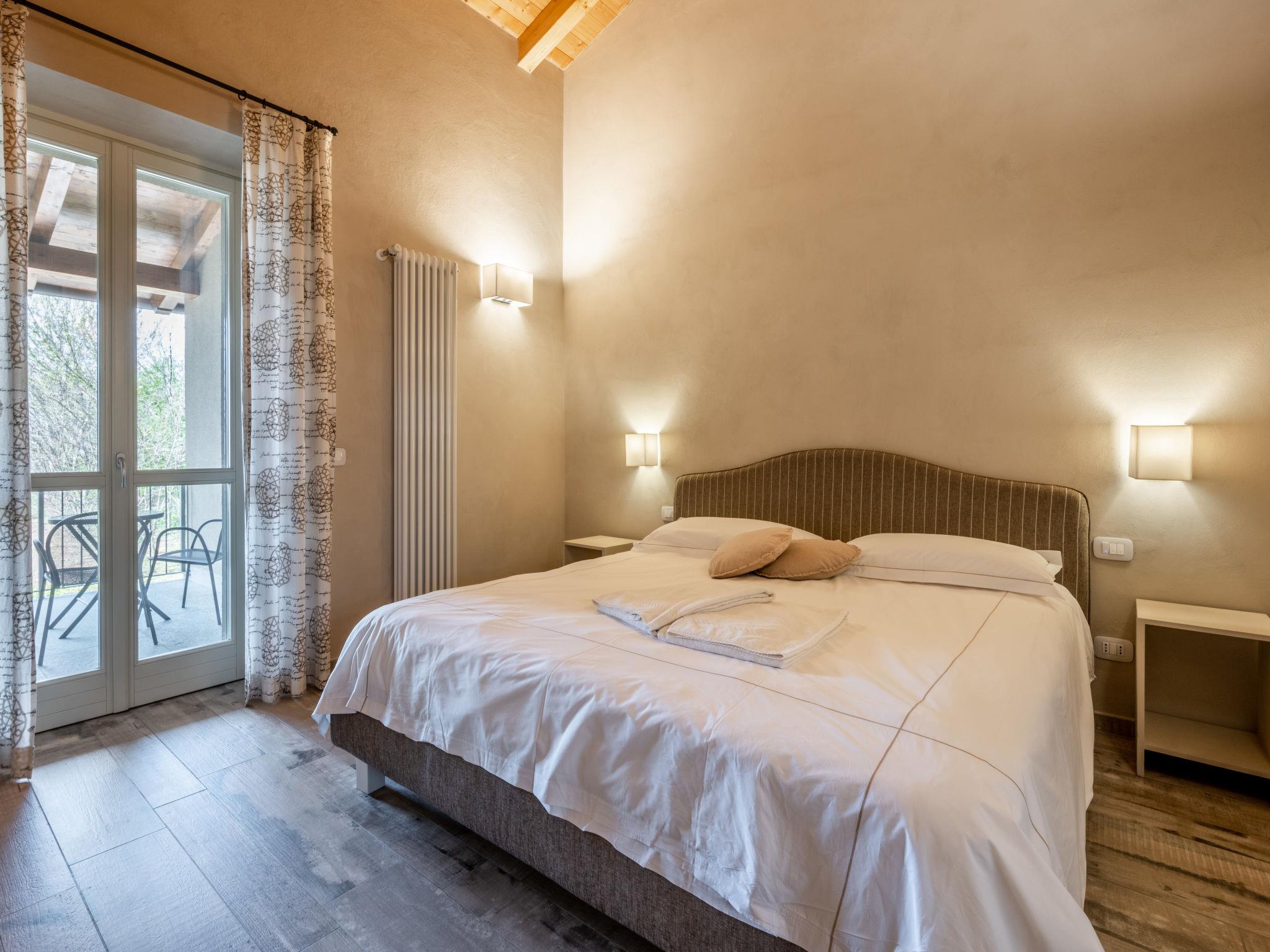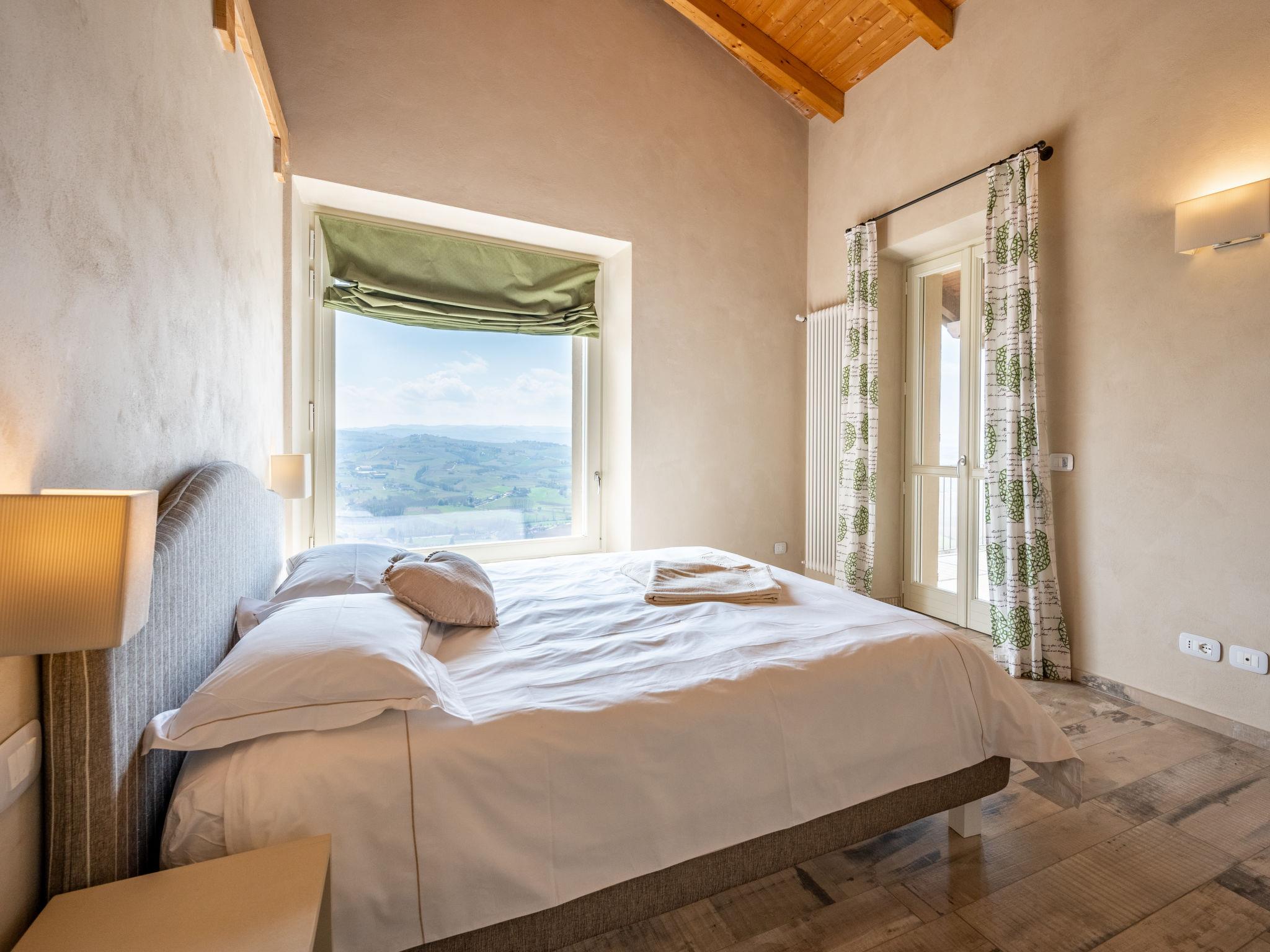 "Cascina Vigne", 3-room semi-detached house 95 m2 on 2 levels. Comfortable and modern furnishings: living/sleeping room with 1 sofabed, Scandinavian wood stove, dining table, satellite TV and hi-fi system. Exit to the terrace. Open kitchen (dishwasher, 4 induction hot plates, toaster, kettle, freezer, electric coffee machine). Sep. WC. Upper floor: 2 rooms, each room with 1 double bed (180 cm, length 200 cm), shower/WC. Exit to the balcony. Heating, air-conditioning. Natural stone floors. Balcony, 2 terraces partly roofed, garden, lawn. Terrace furniture, balcony furniture, barbecue (portable). Very beautiful panoramic view of the countryside and the town. Facilities: iron, mosquito net, children's high chair, baby cot. Internet (WiFi, free). Please note: non-smokers only. Private entrance. The sofa bed is suitable for one person up to 14 years of age. Bedlinen, towels, final cleaning and all energy costs are included. IT005050B4F3ON9SBR